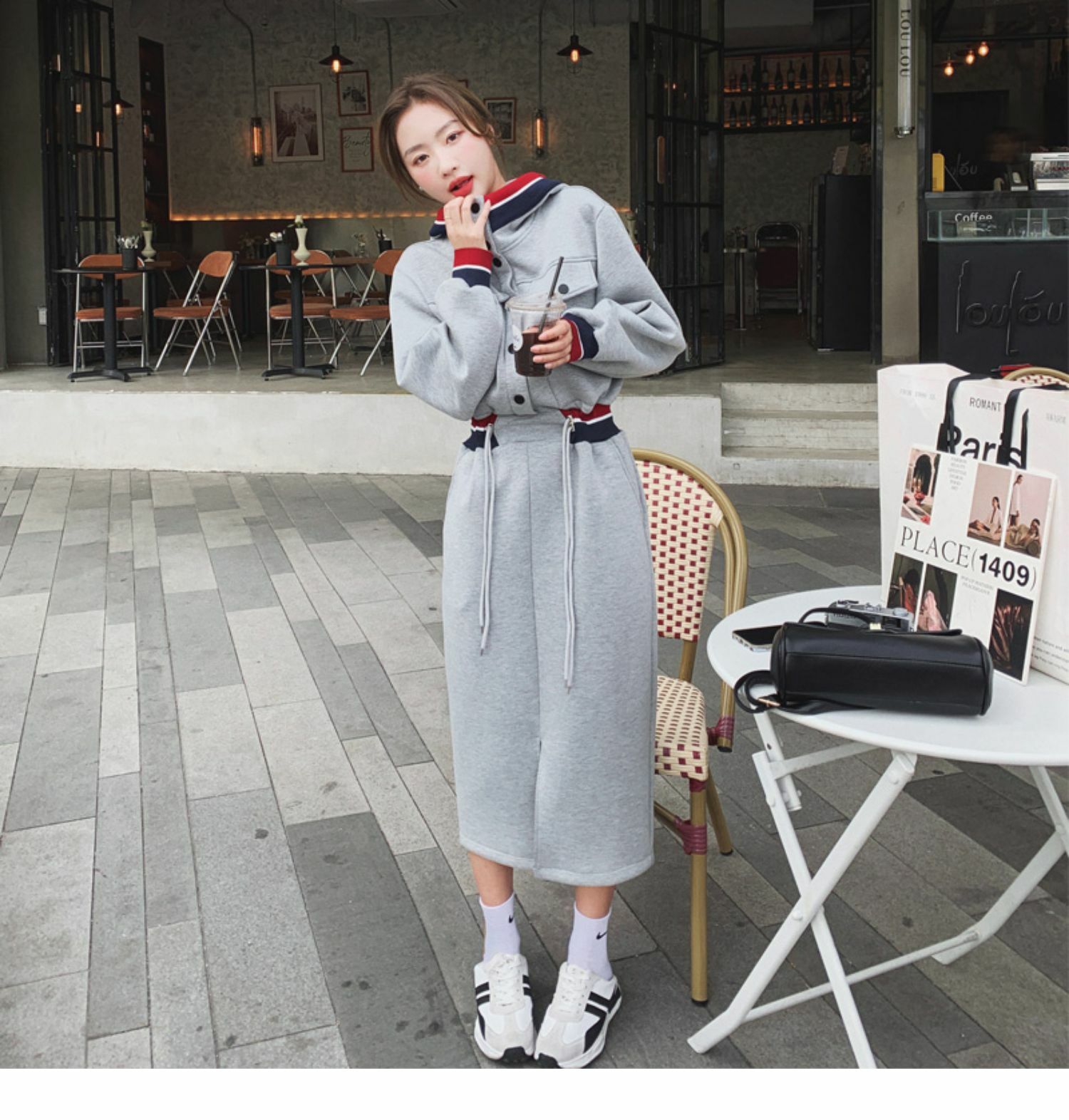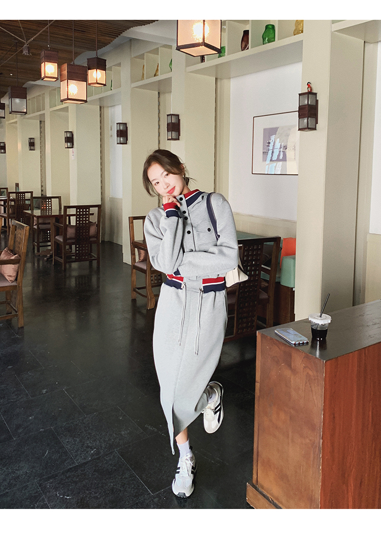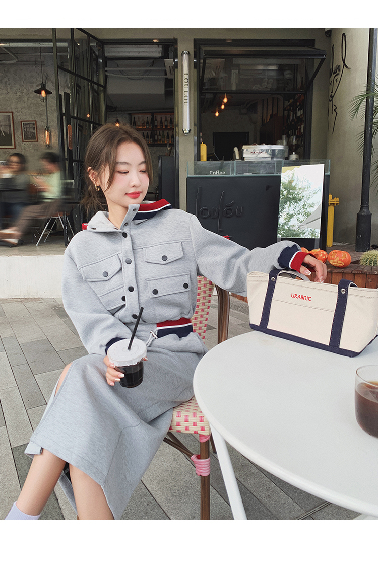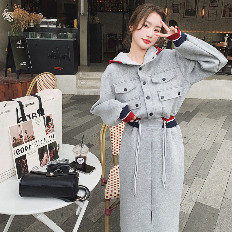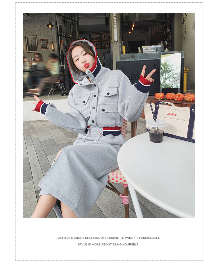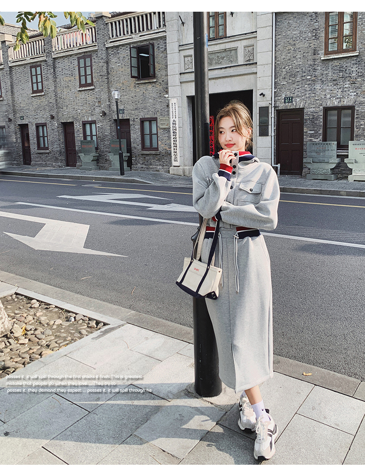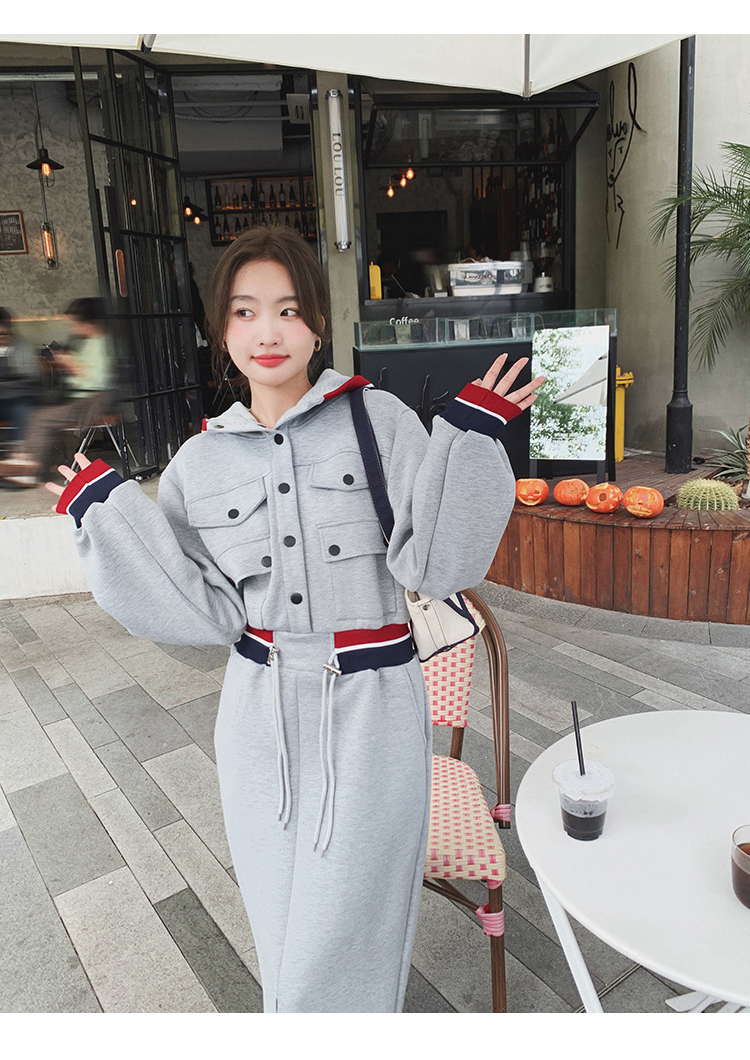 獨家訂製│率性舒適連帽抽繩收腰開叉連衣裙(03TA3086)