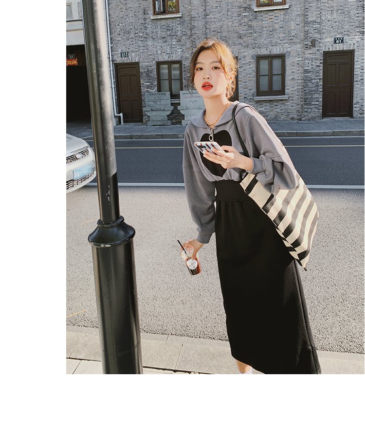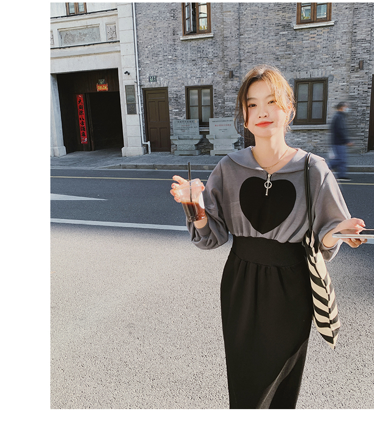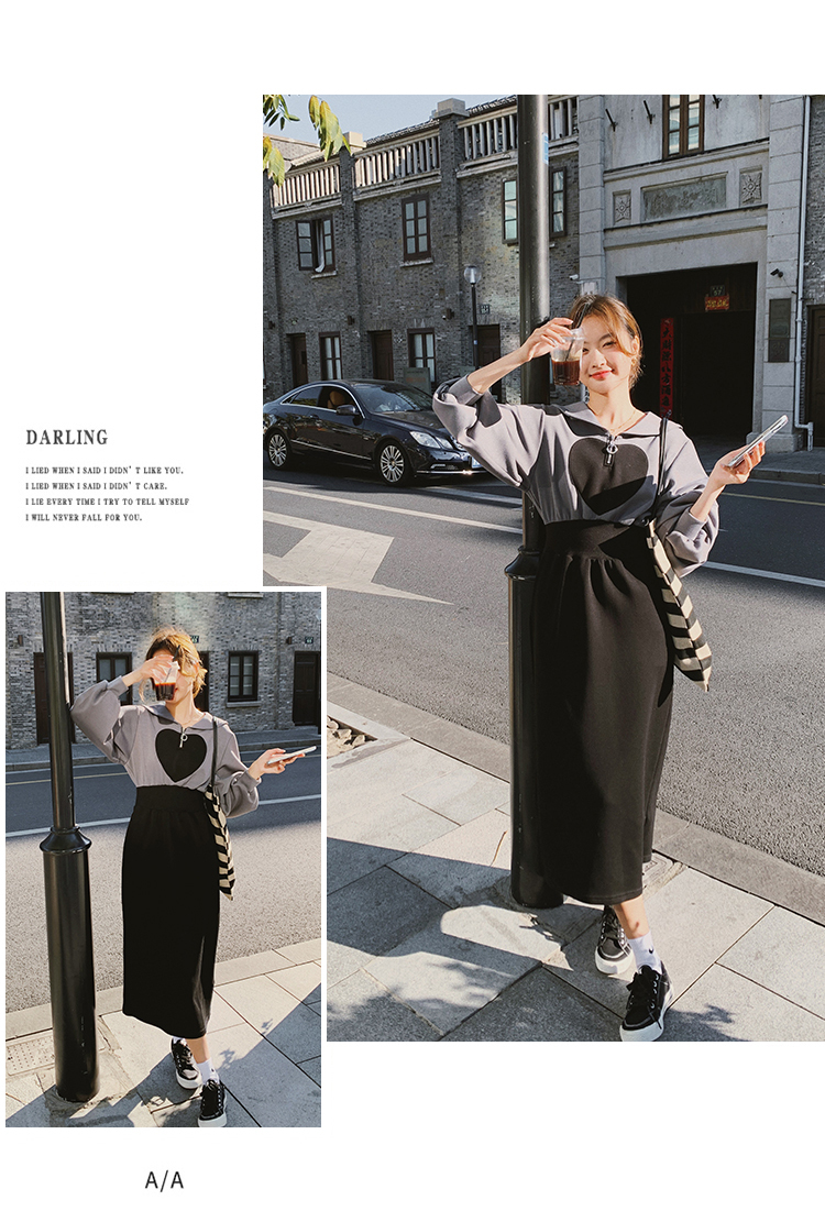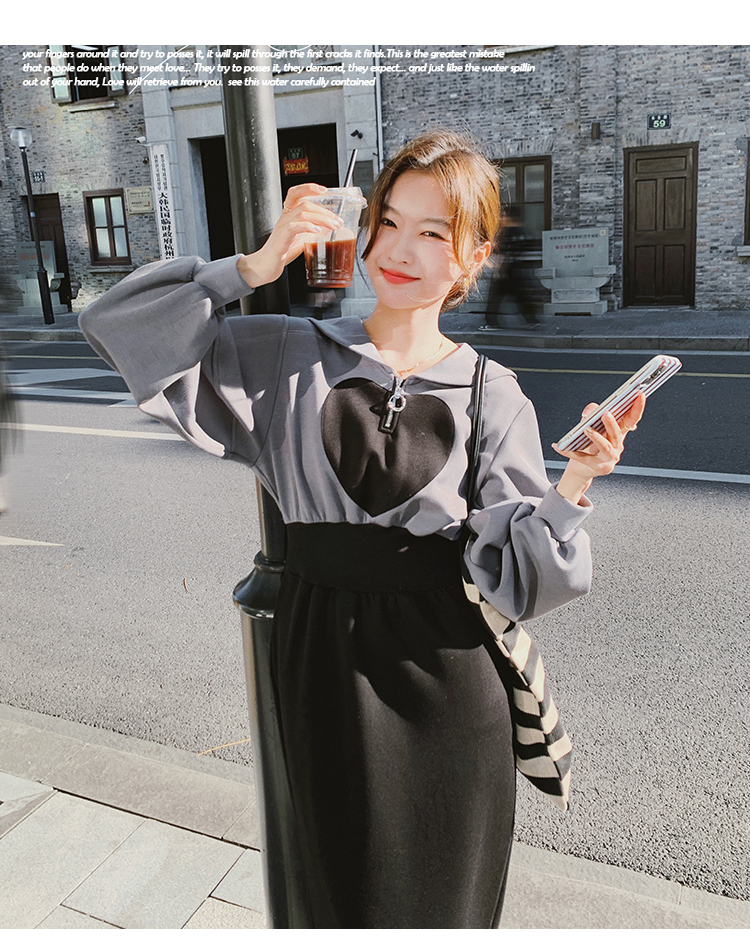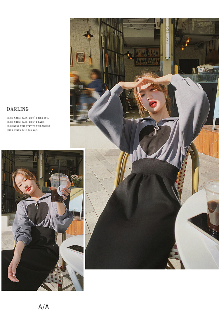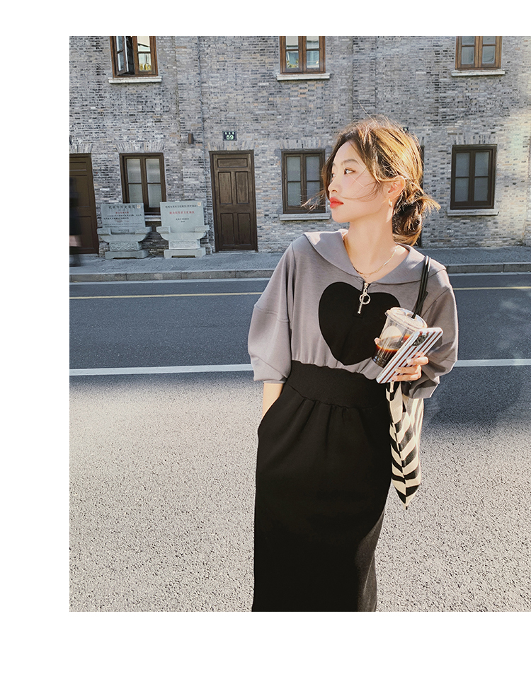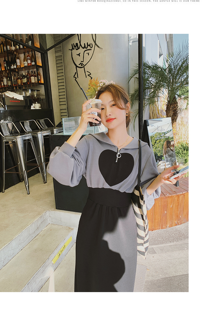 獨家訂製│甜美舒適愛心印花翻領收腰開叉連衣裙(03TA3087)
