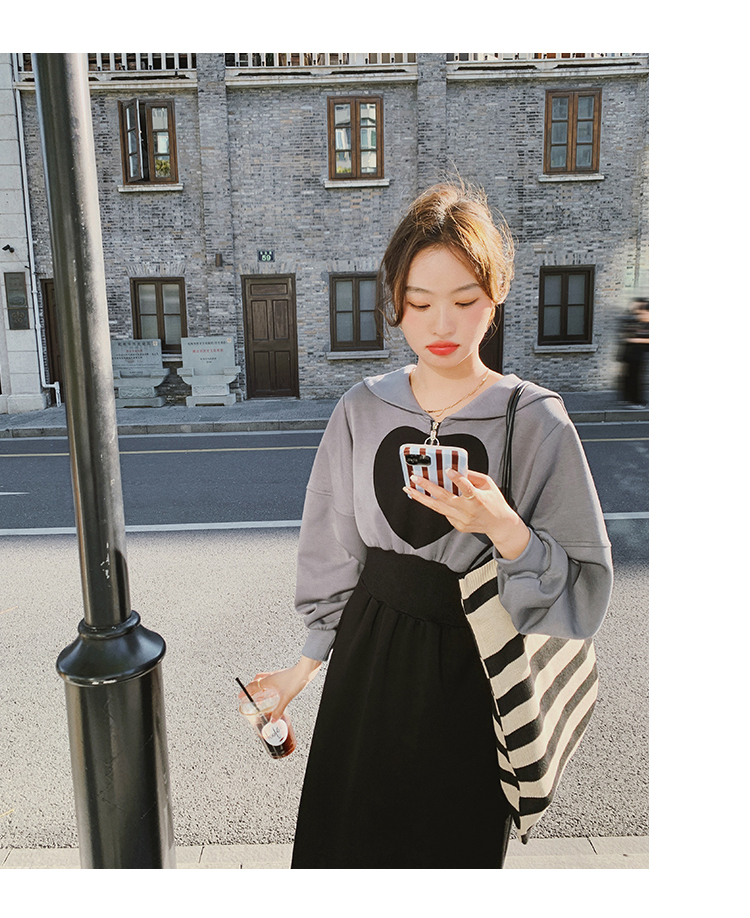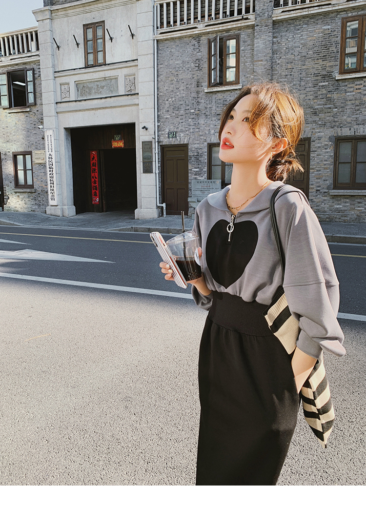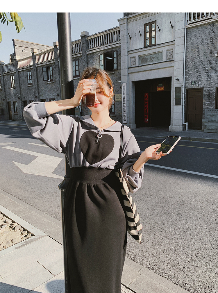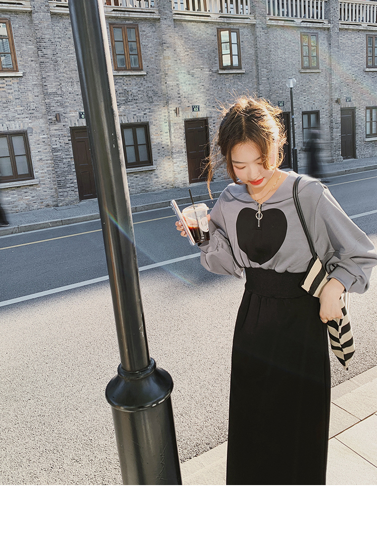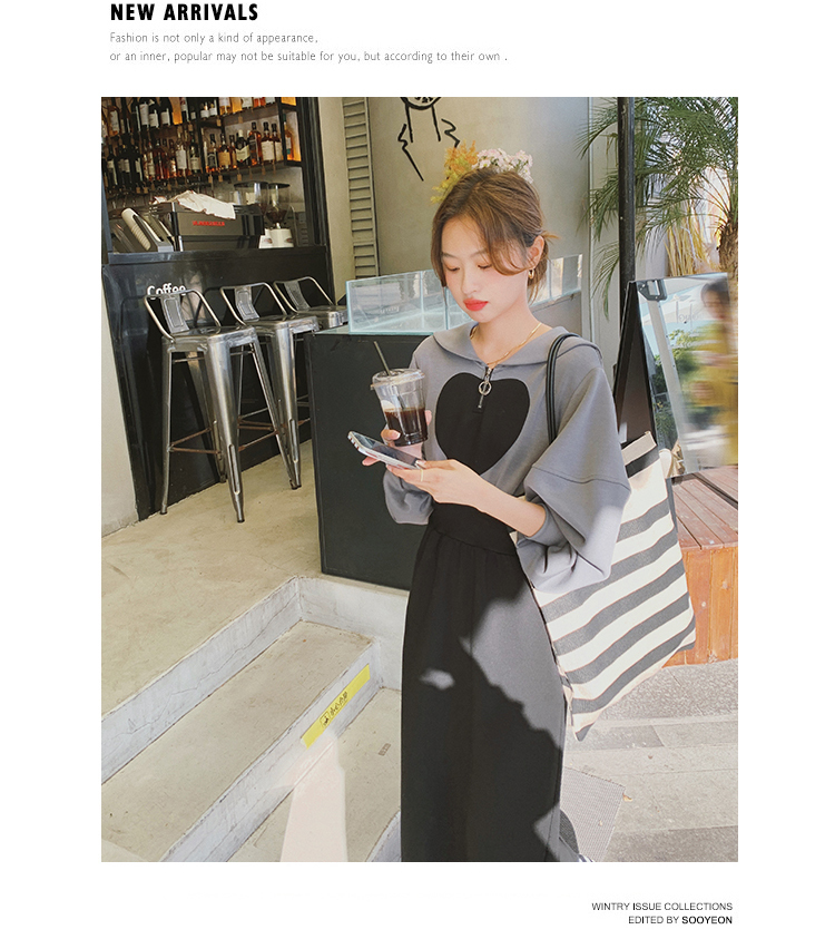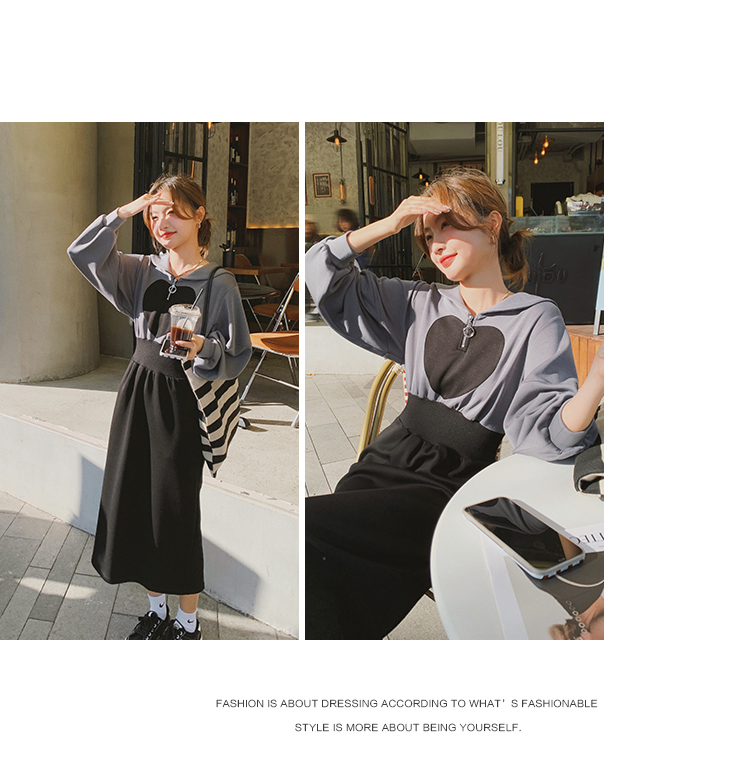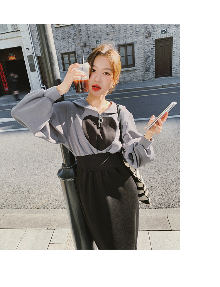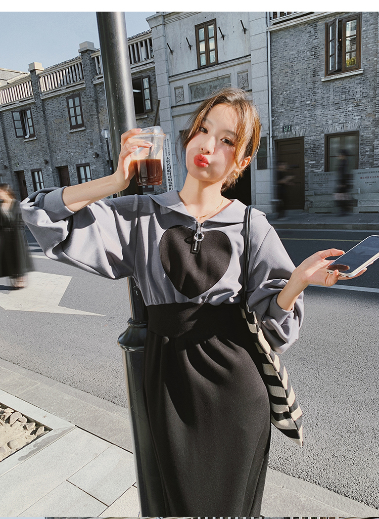 獨家訂製│甜美舒適愛心印花翻領收腰開叉連衣裙(03TA3087)