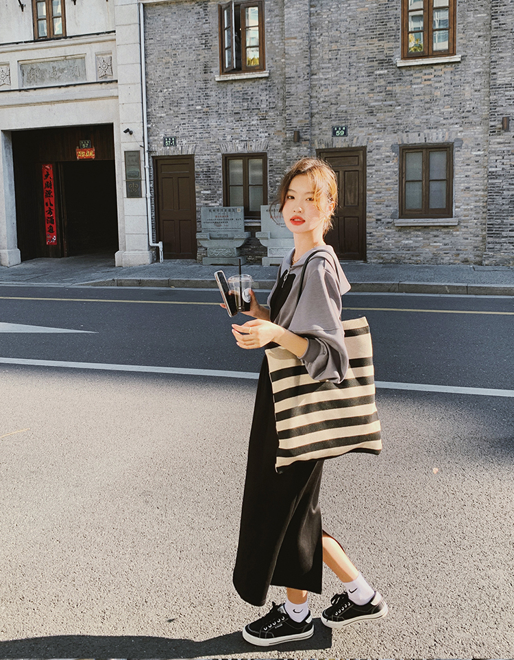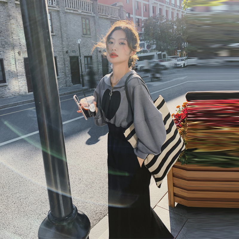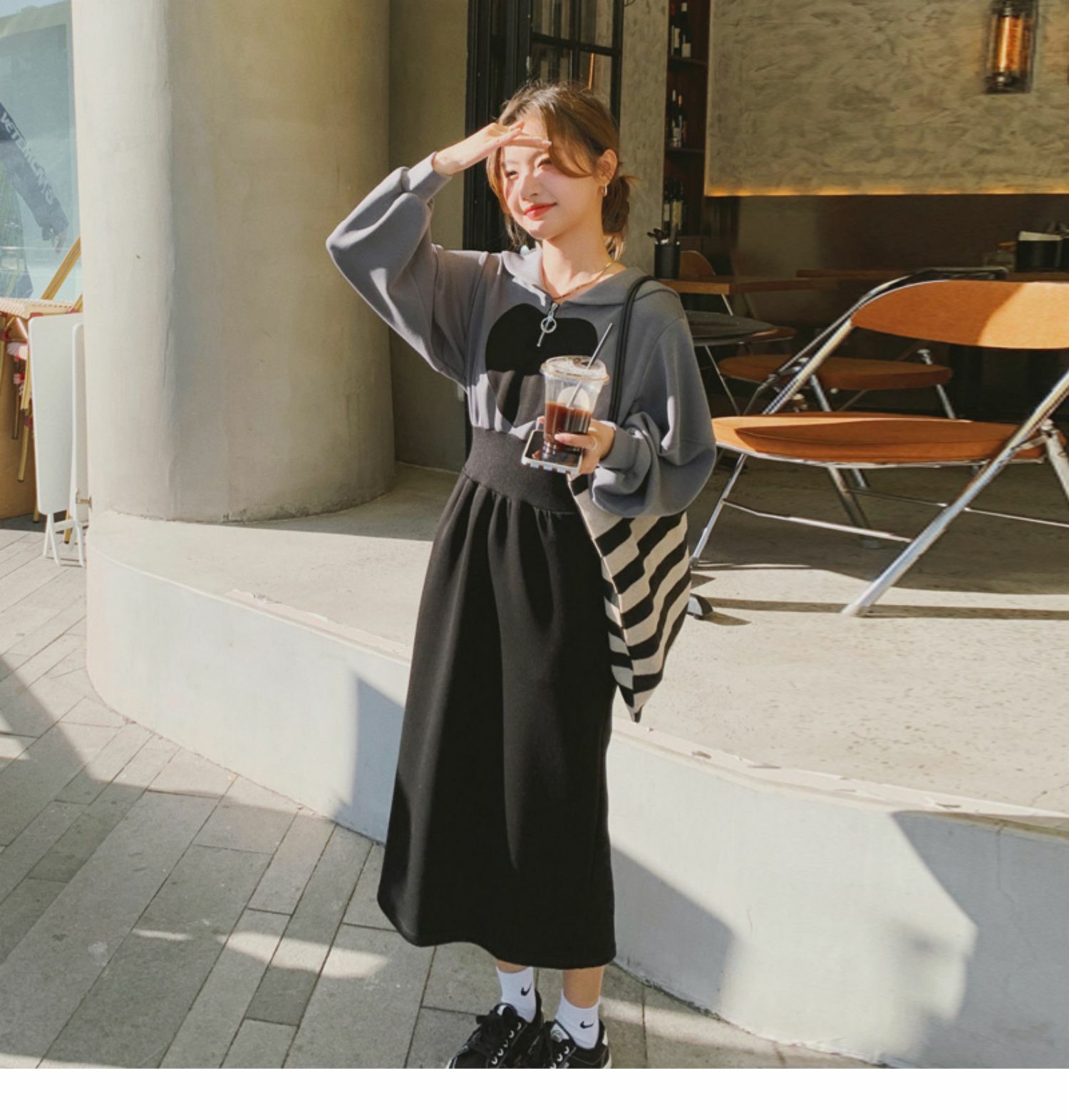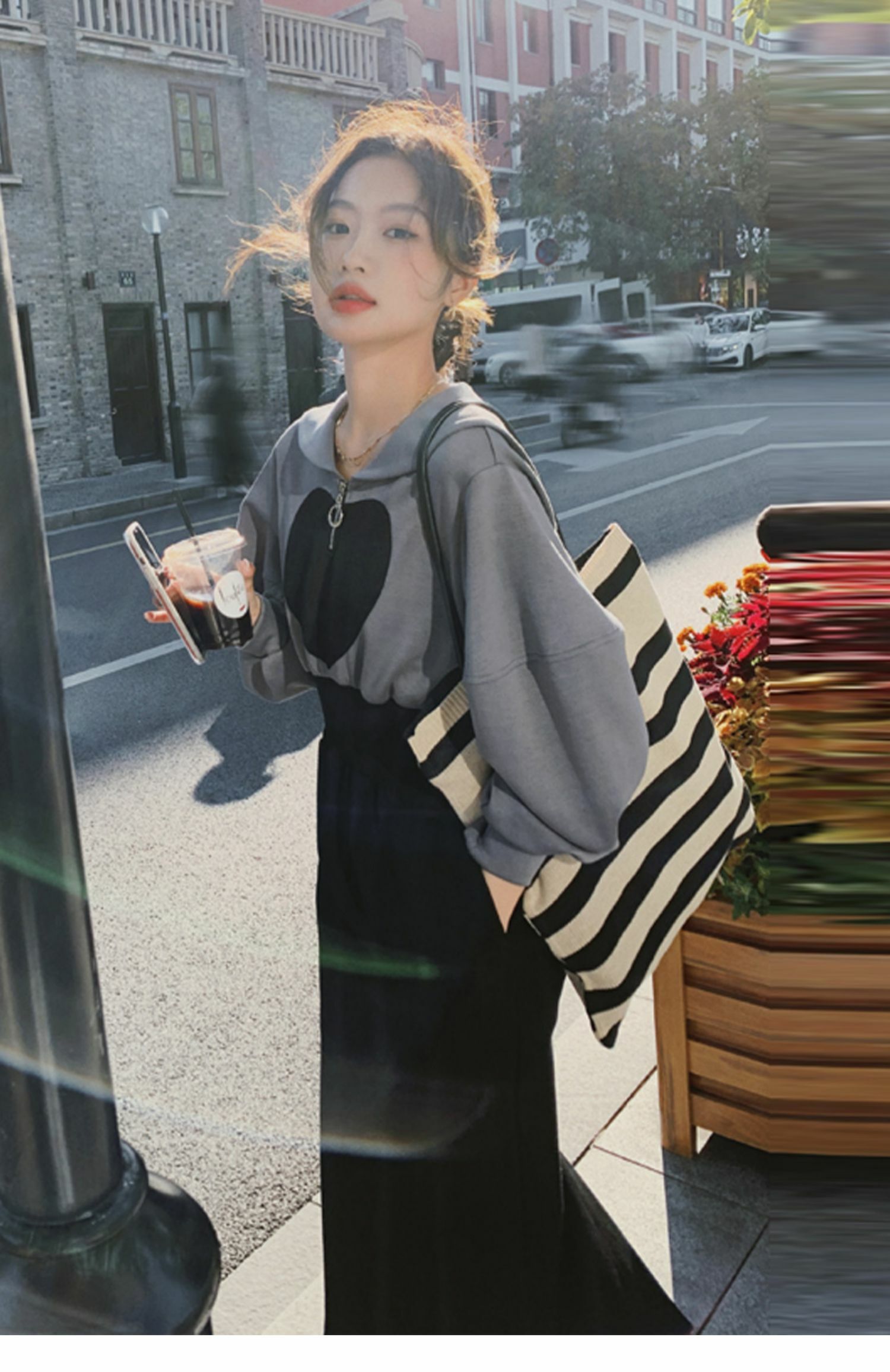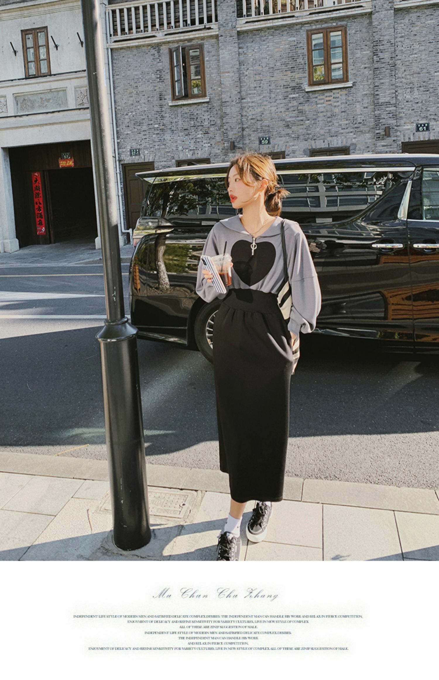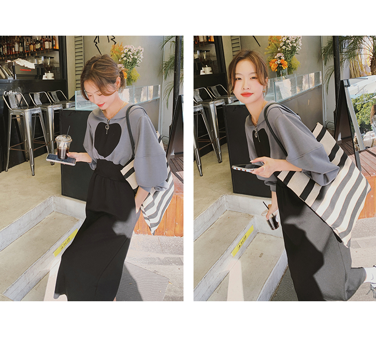 獨家訂製│甜美舒適愛心印花翻領收腰開叉連衣裙(03TA3087)