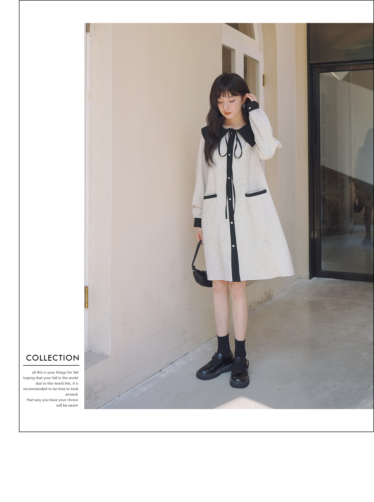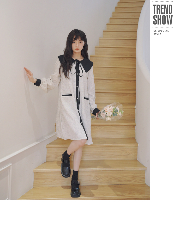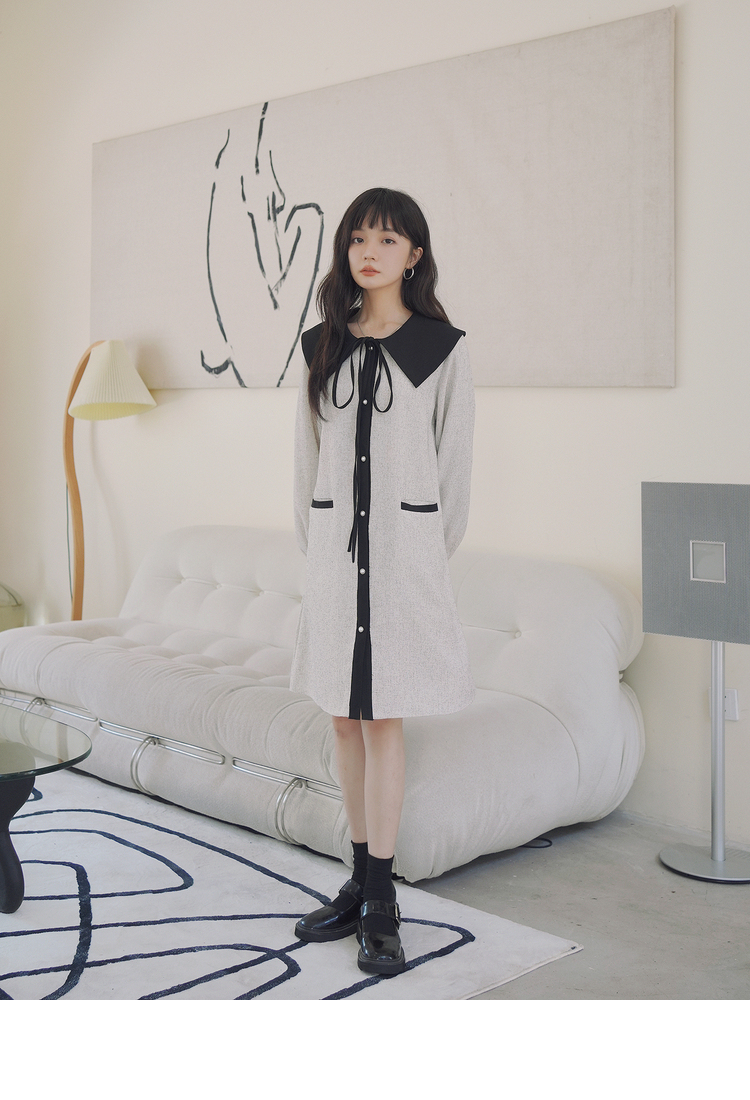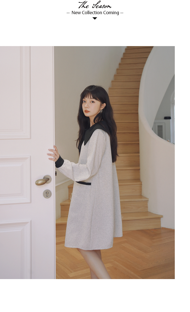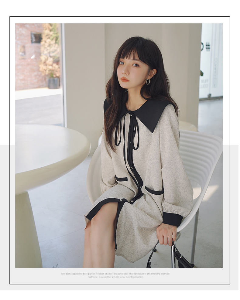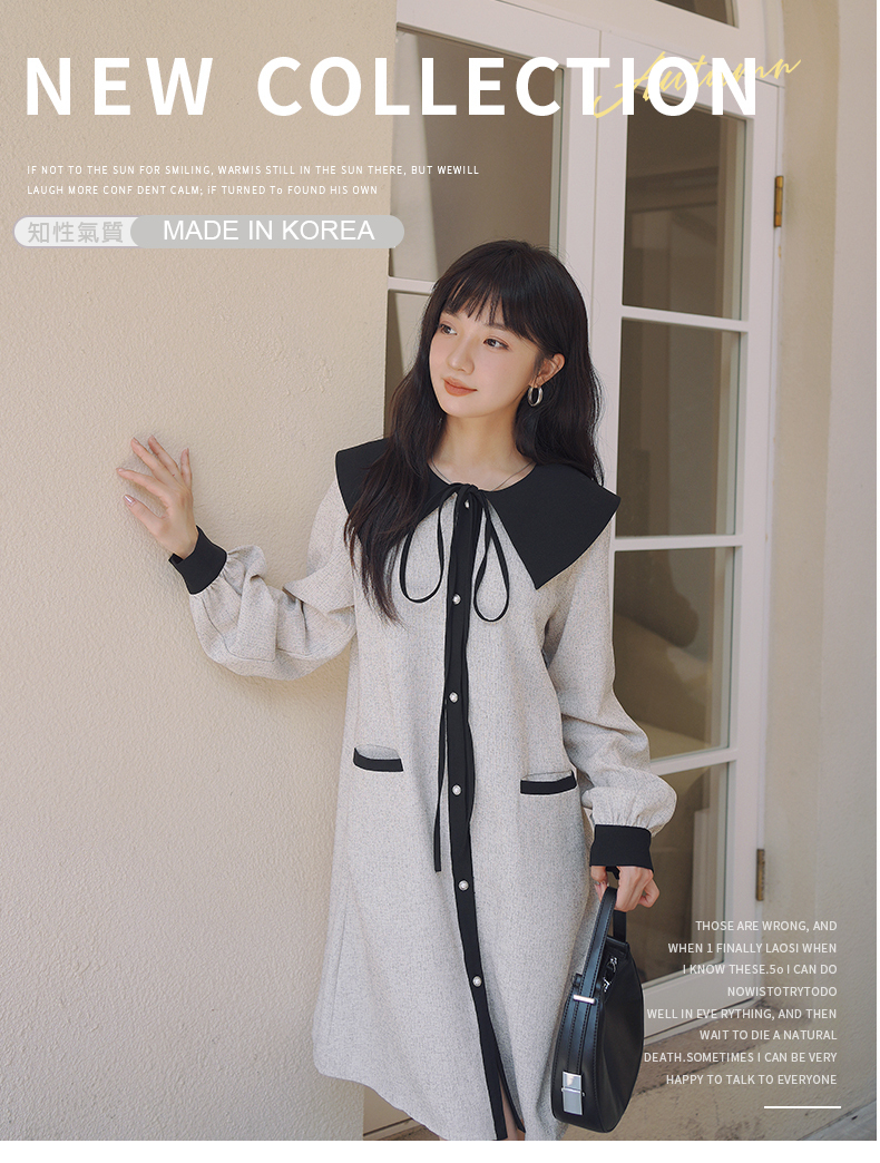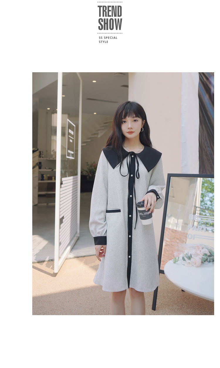 獨家訂製│韓系學院風撞色翻領連衣裙(03TA3123)