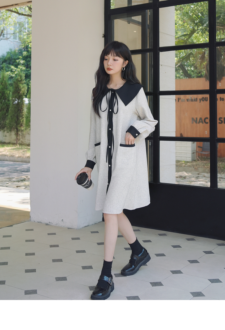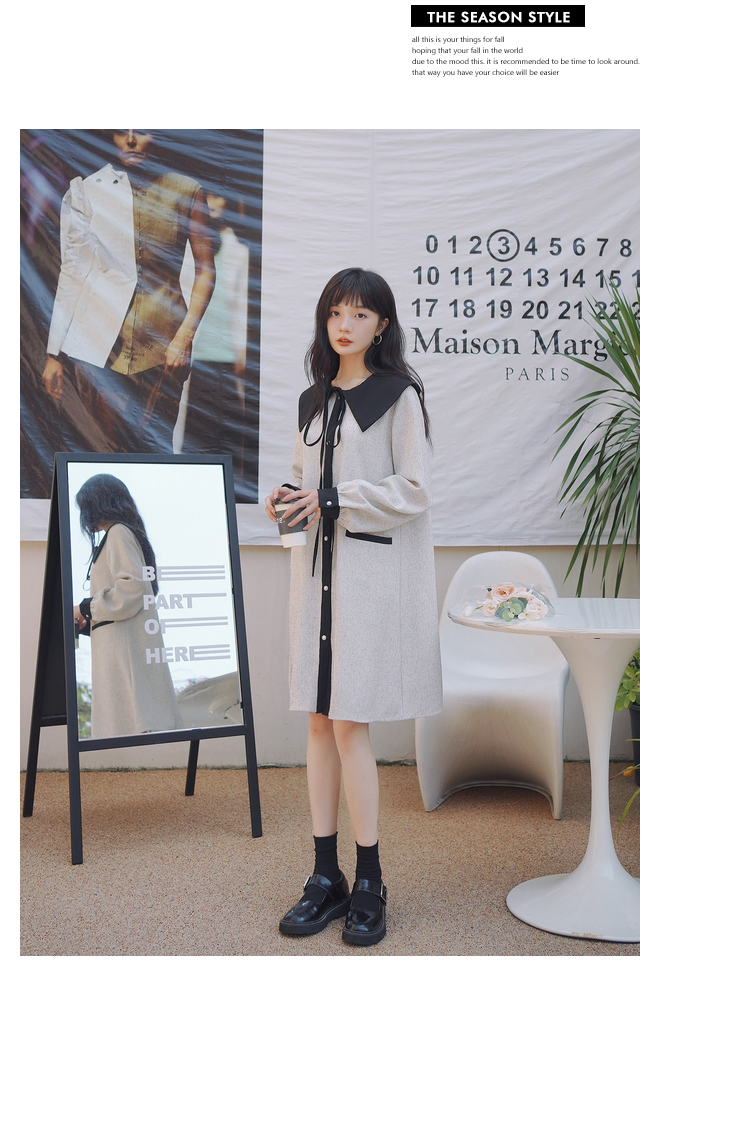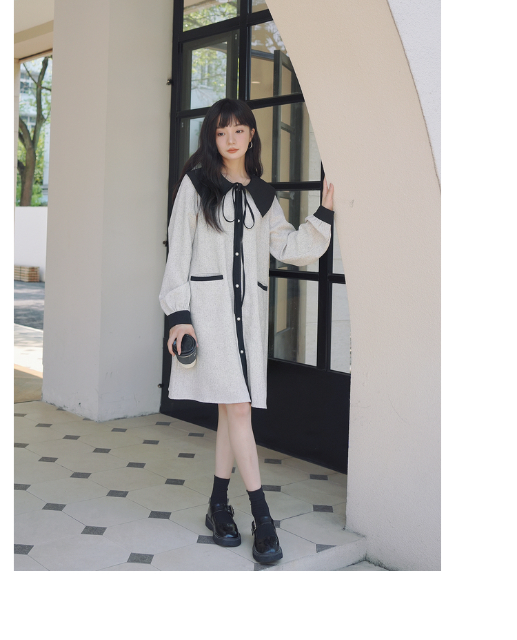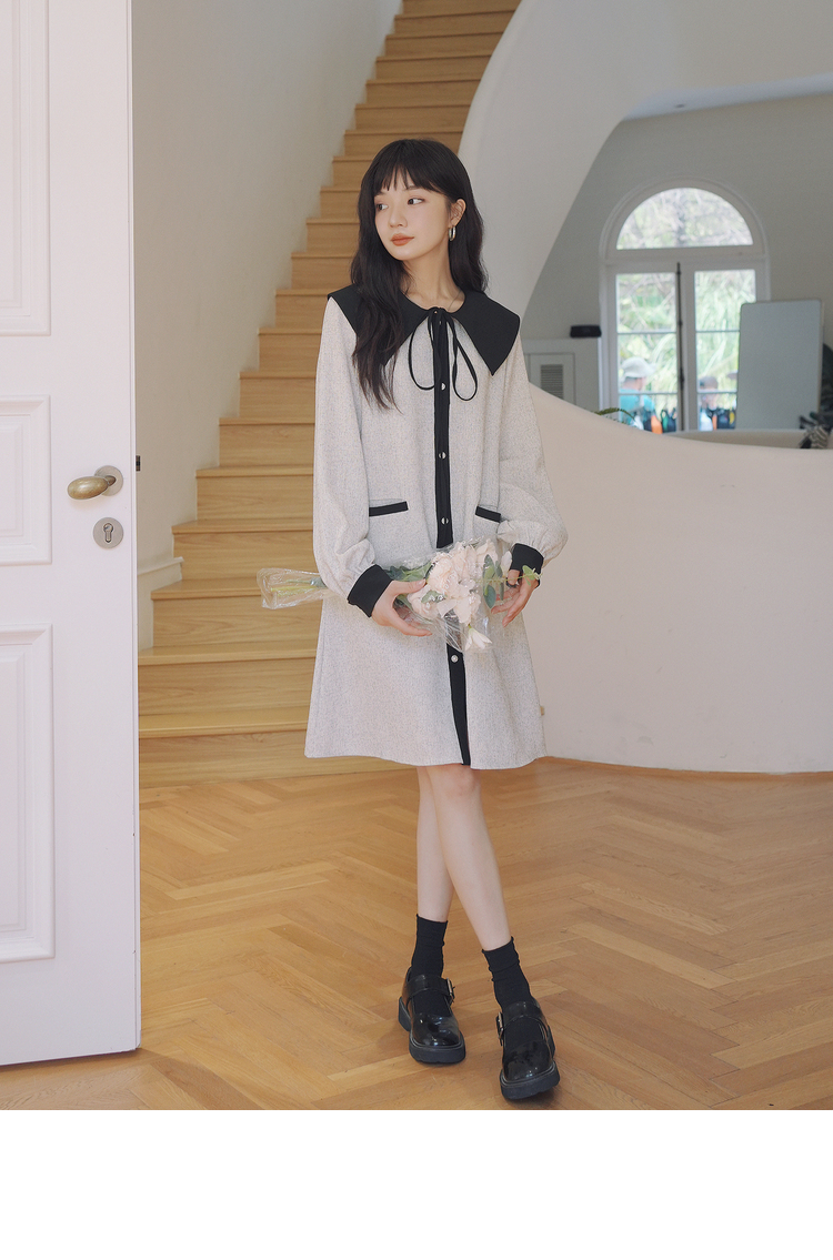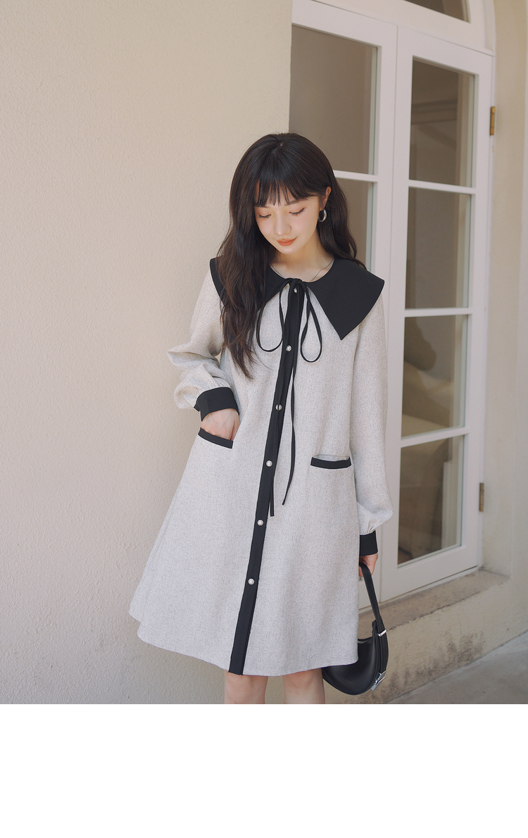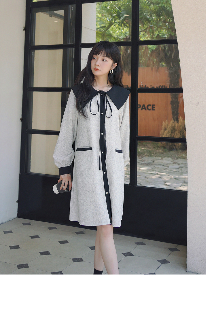 獨家訂製│韓系學院風撞色翻領連衣裙(03TA3123)