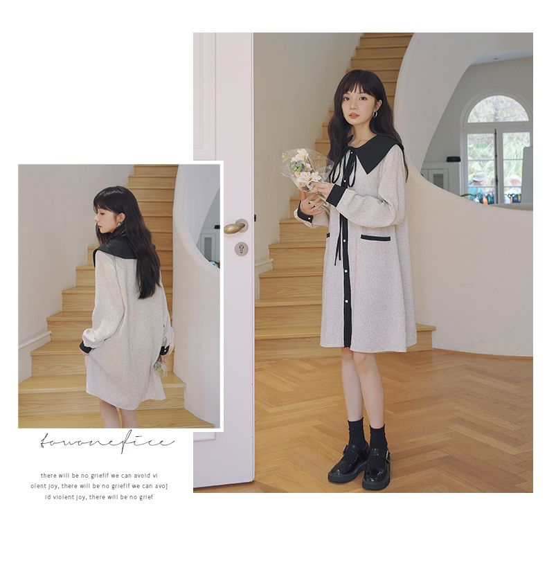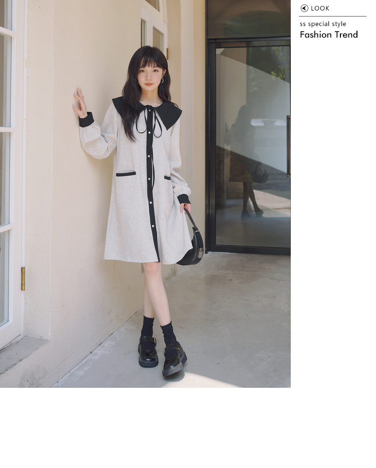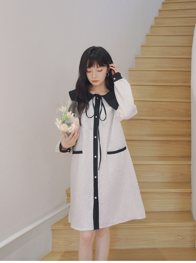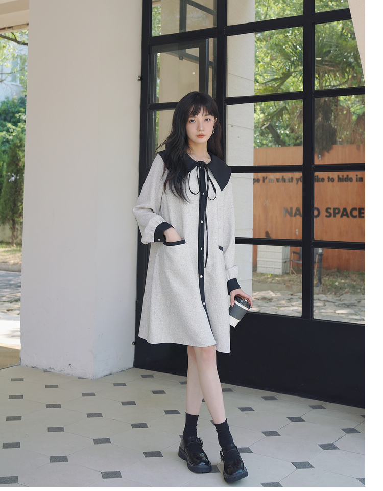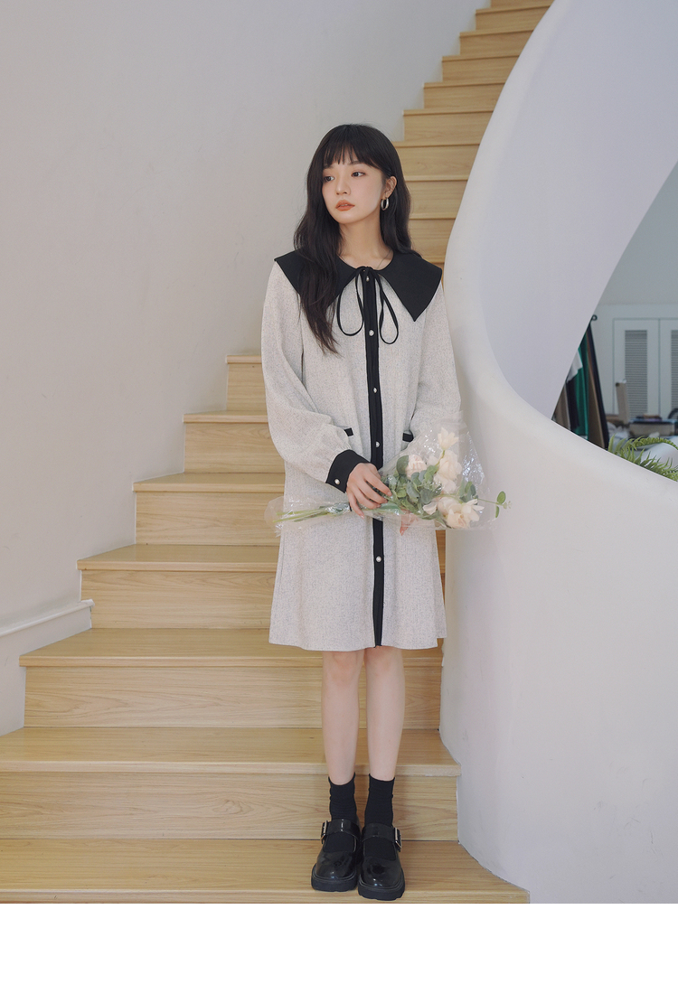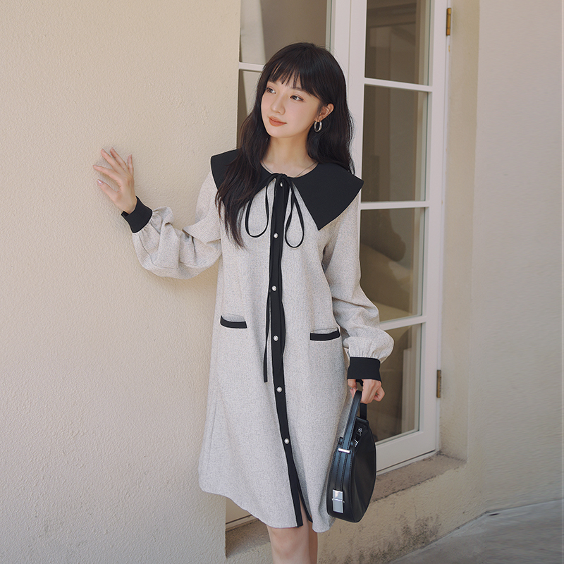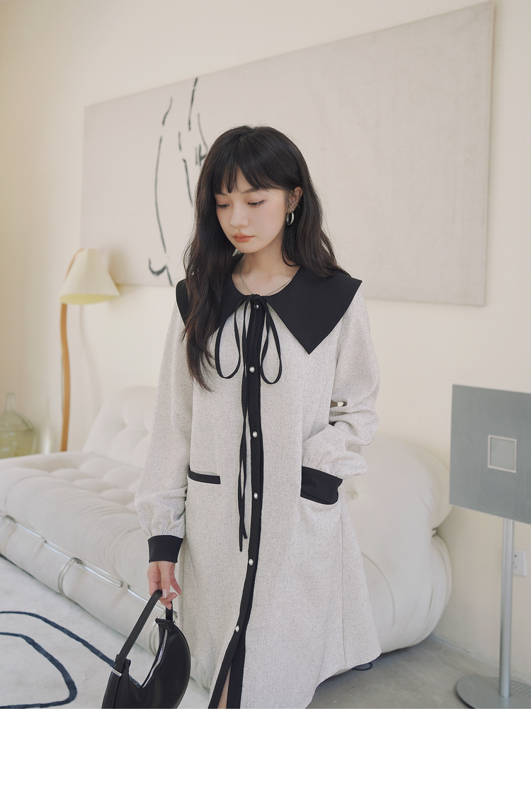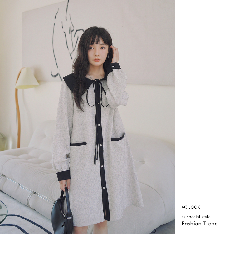 獨家訂製│韓系學院風撞色翻領連衣裙(03TA3123)