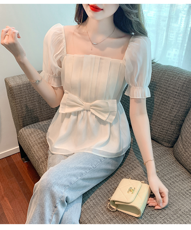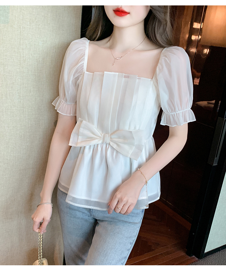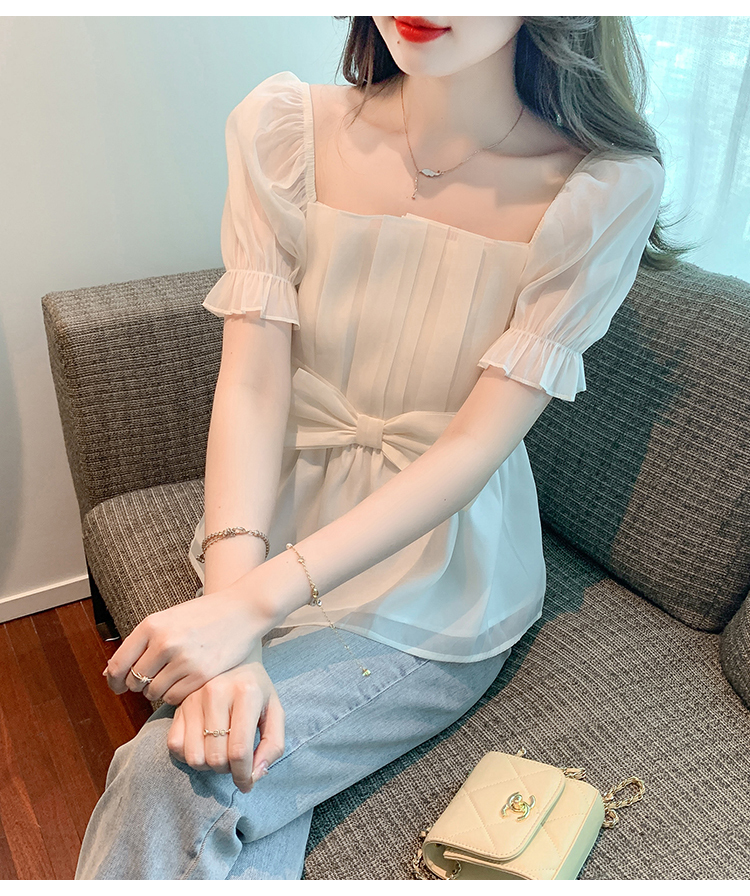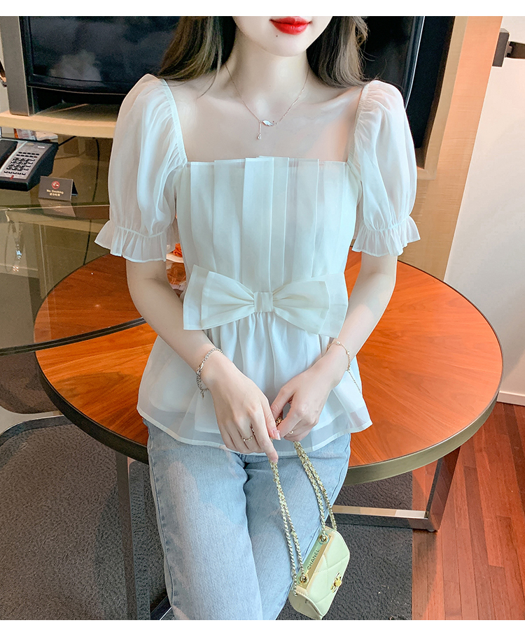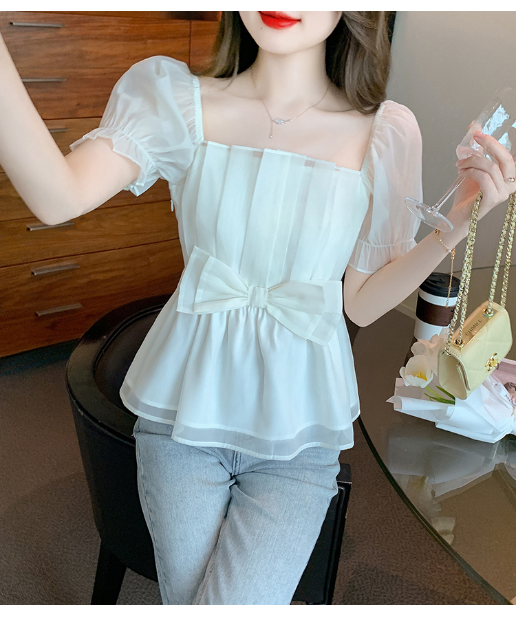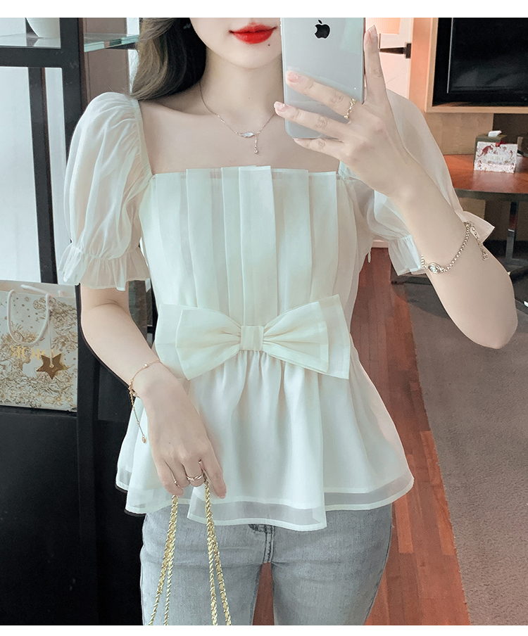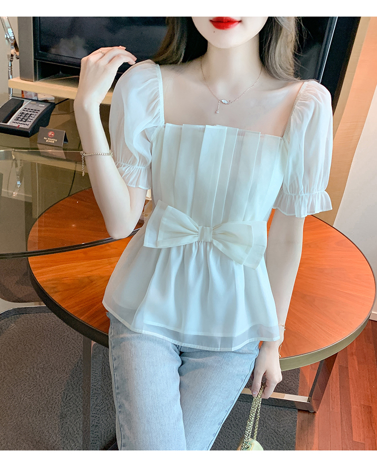 限量特惠|法式方領蝴蝶結抓皺雪紡衫(03TA3131)