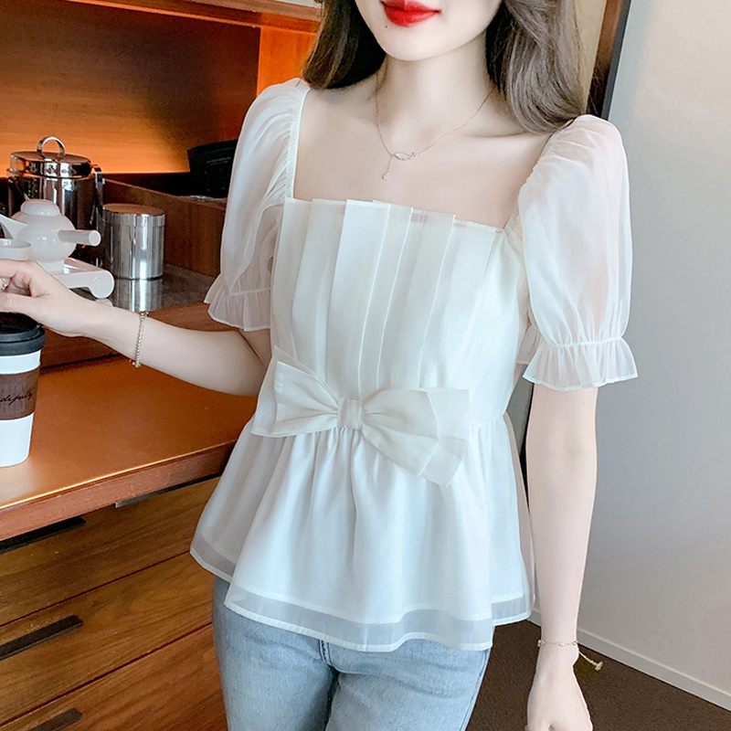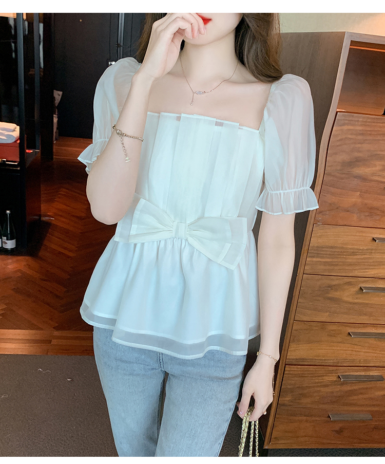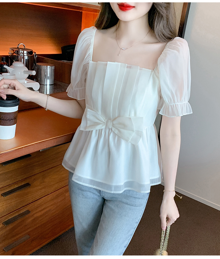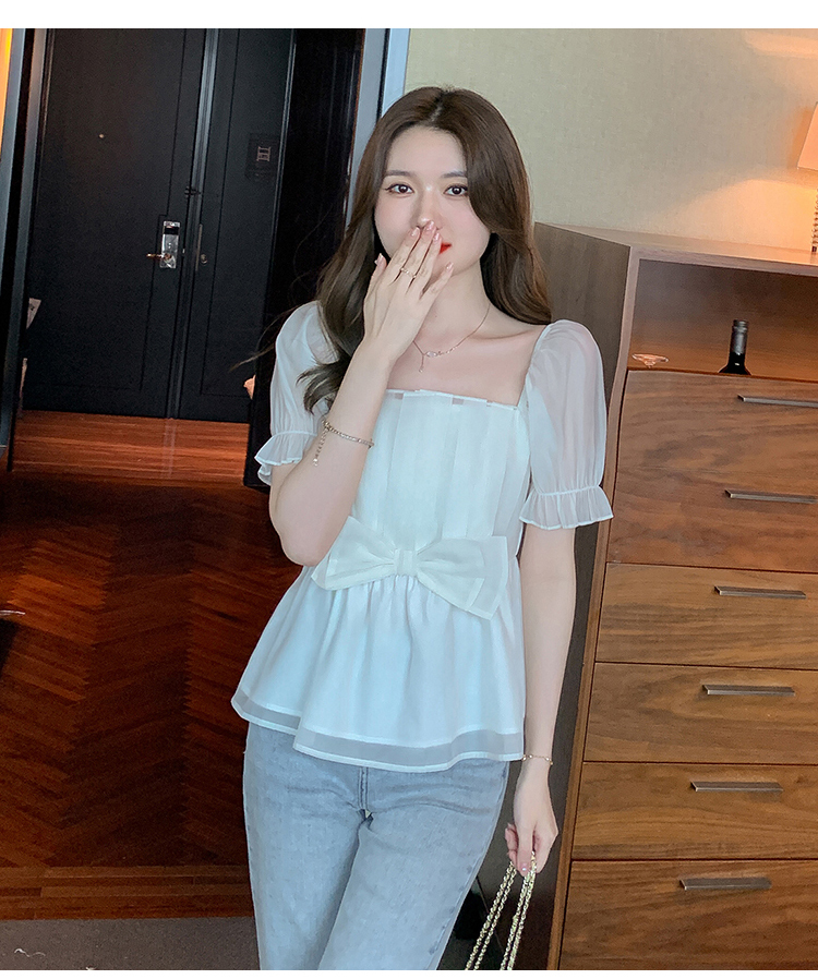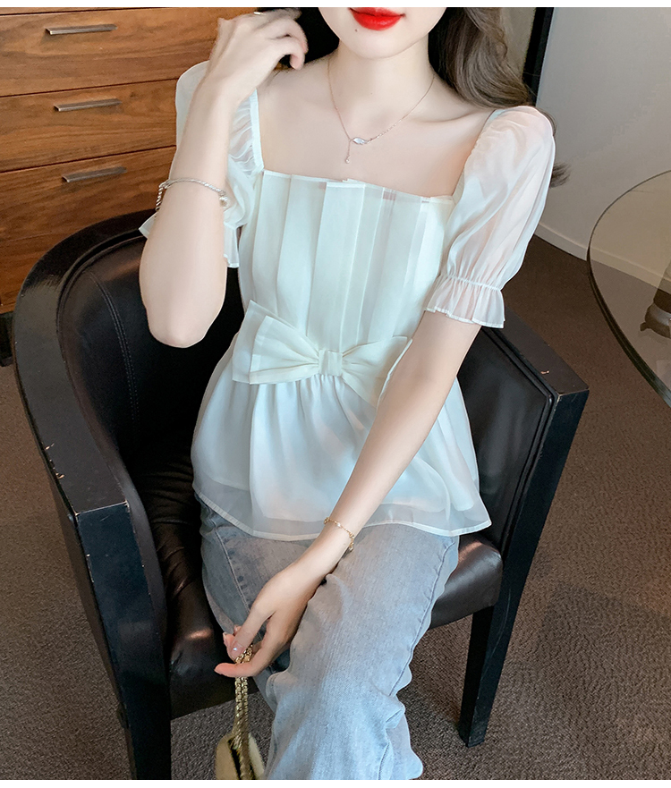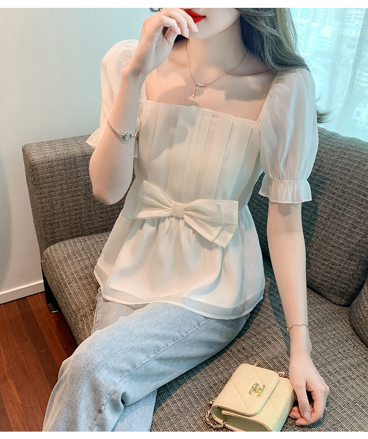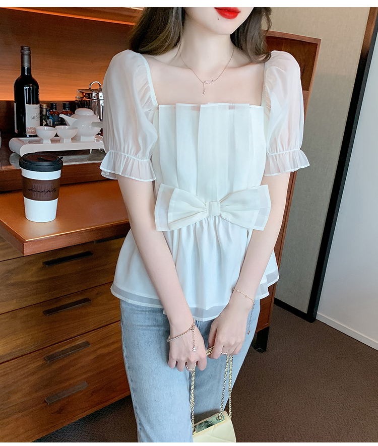 限量特惠|法式方領蝴蝶結抓皺雪紡衫(03TA3131)