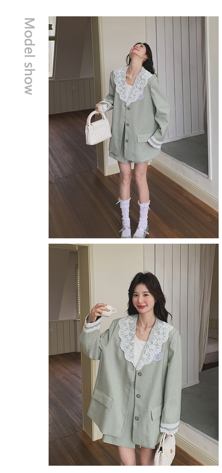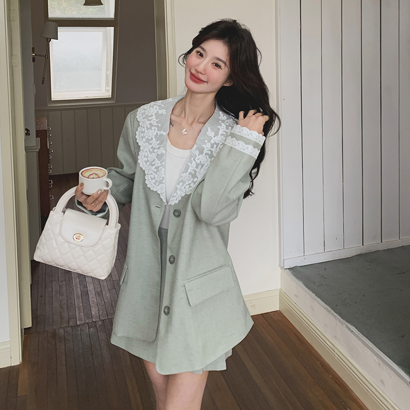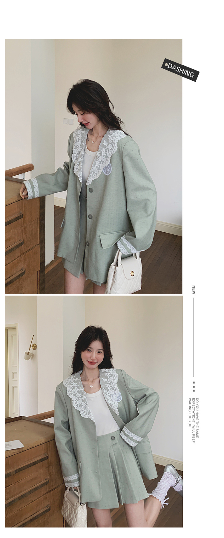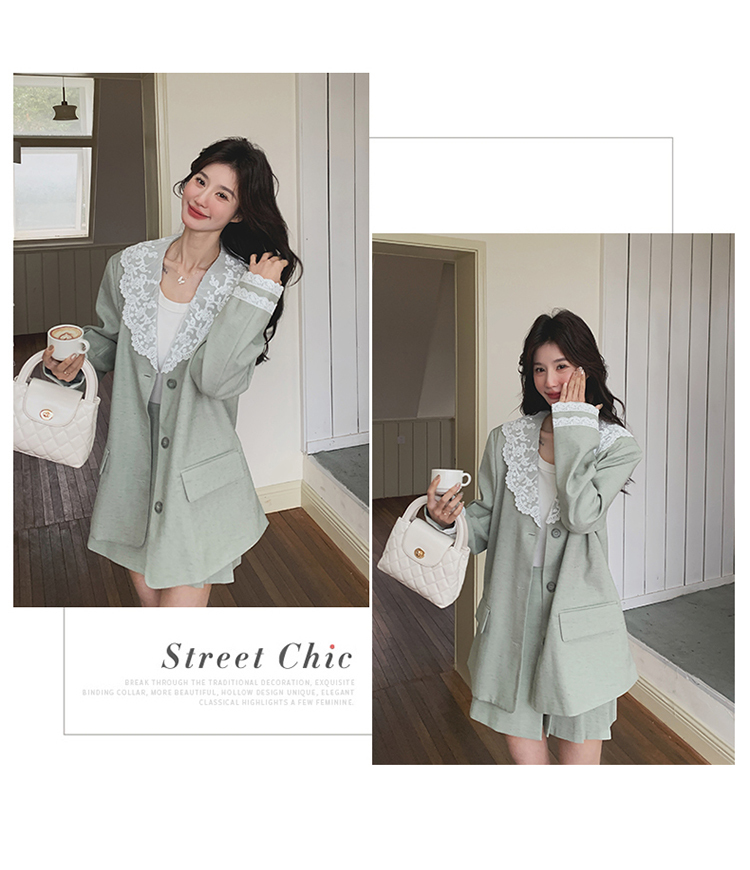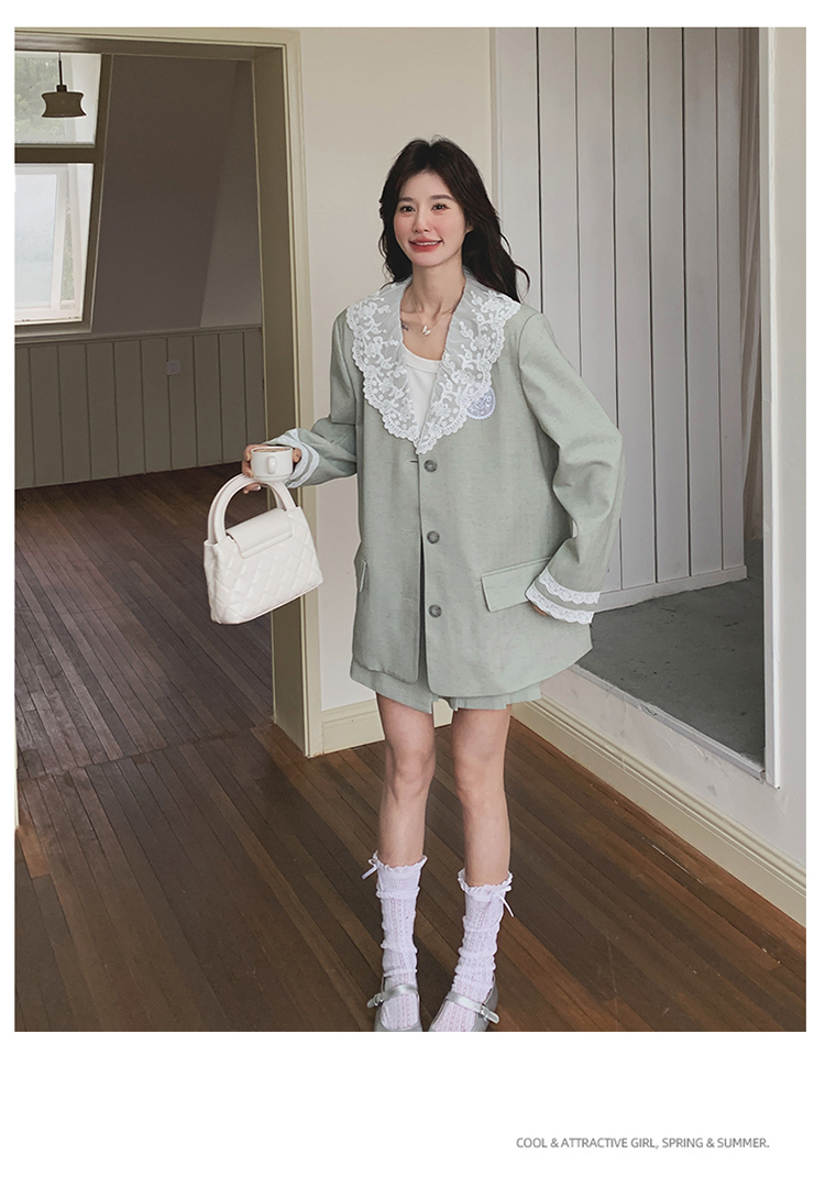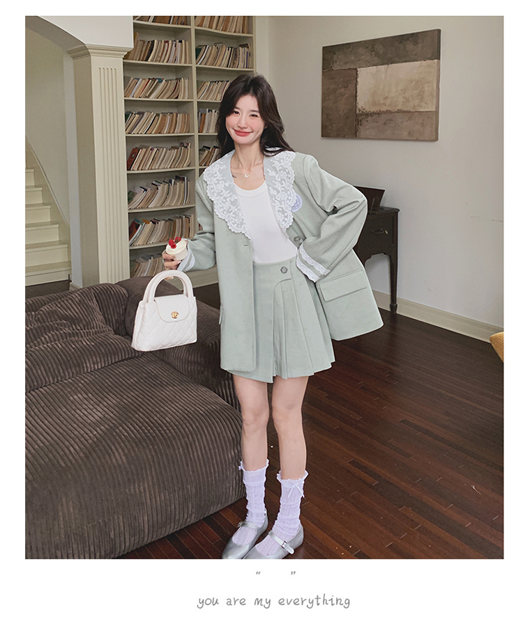 獨家訂製│2件式 韓系甜感蕾絲拼接西裝外套+百褶裙(04A1004)