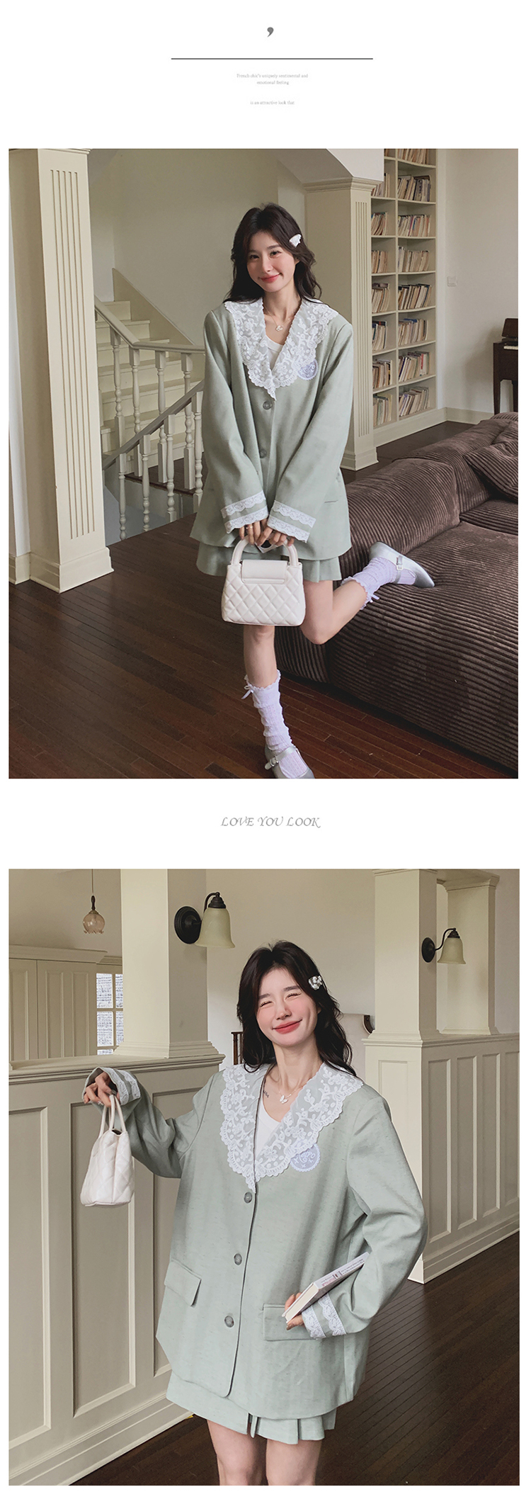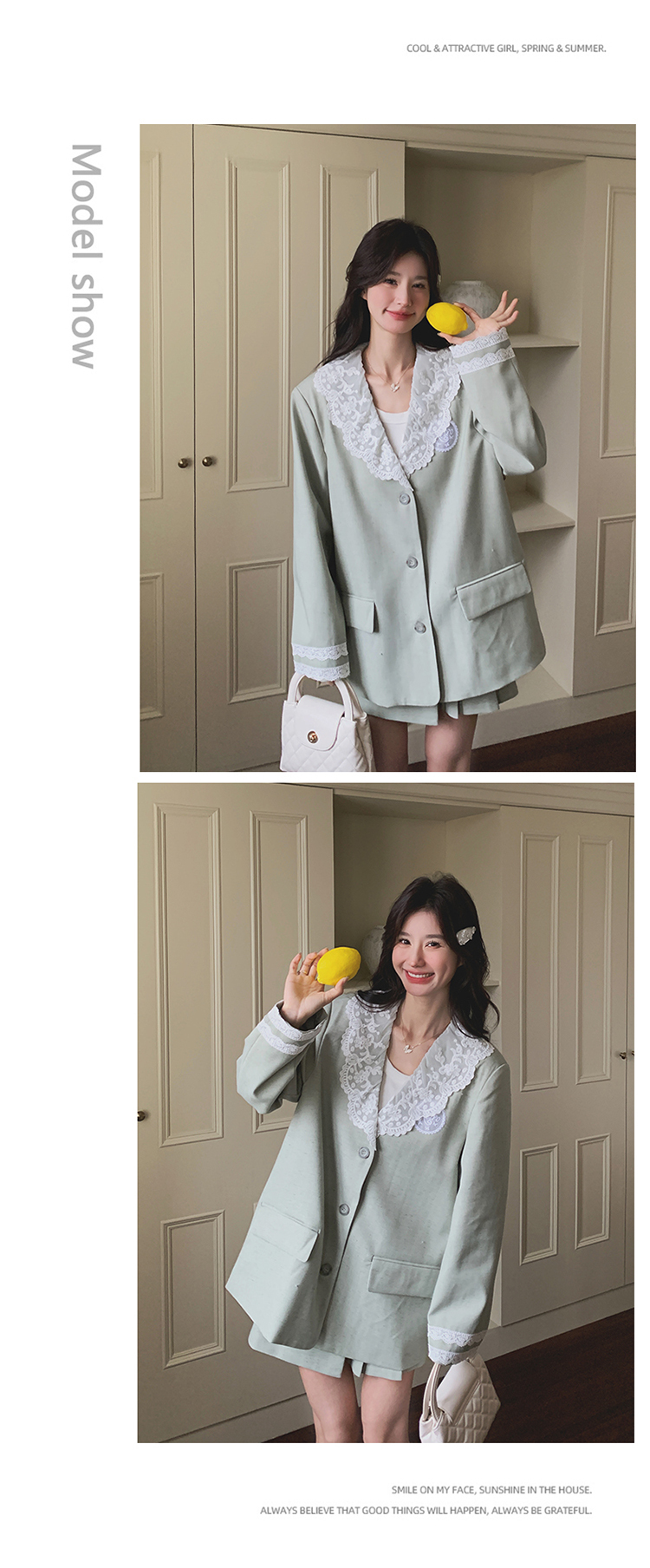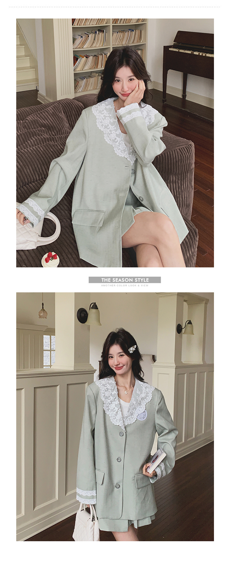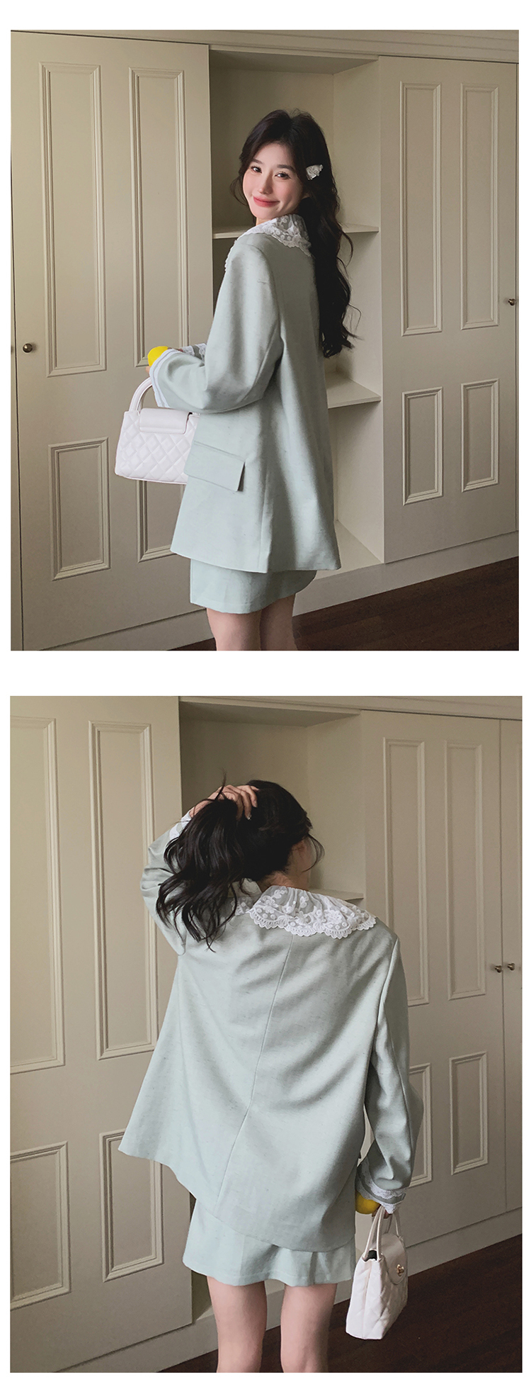 獨家訂製│2件式 韓系甜感蕾絲拼接西裝外套+百褶裙(04A1004)