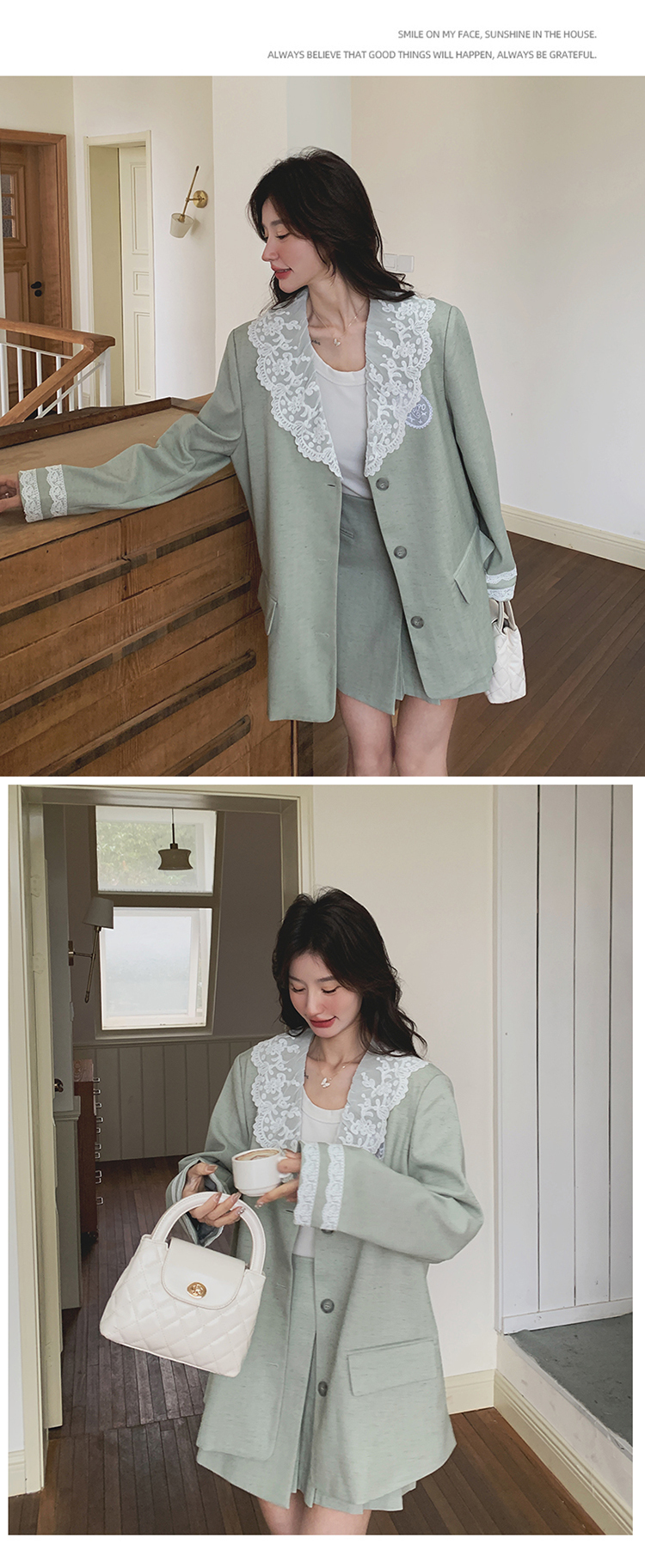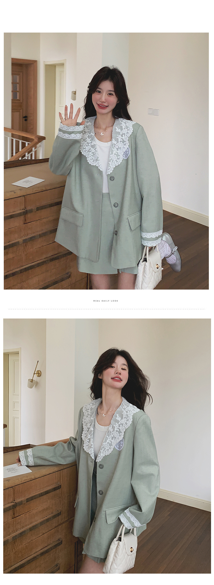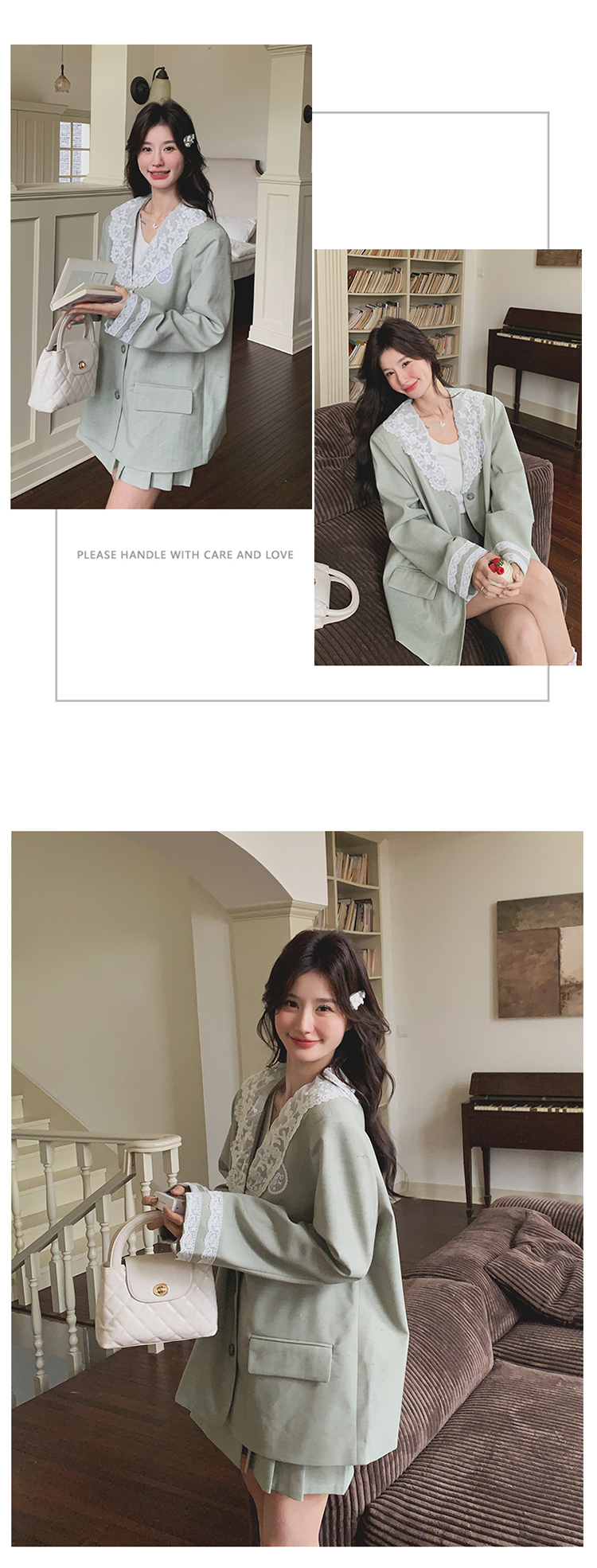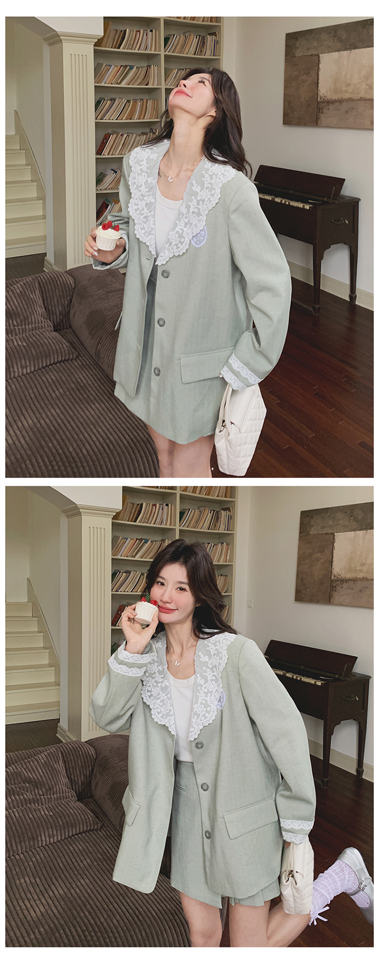 獨家訂製│2件式 韓系甜感蕾絲拼接西裝外套+百褶裙(04A1004)