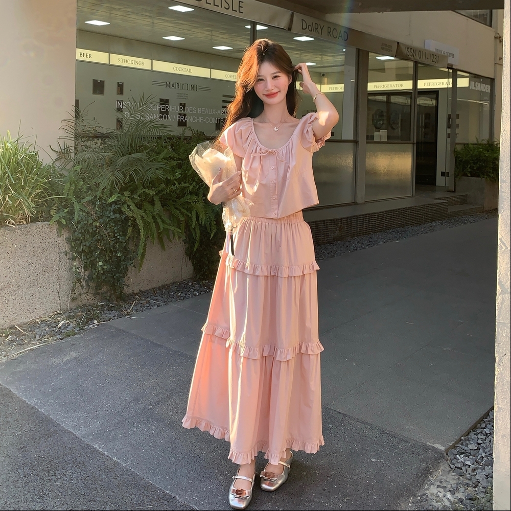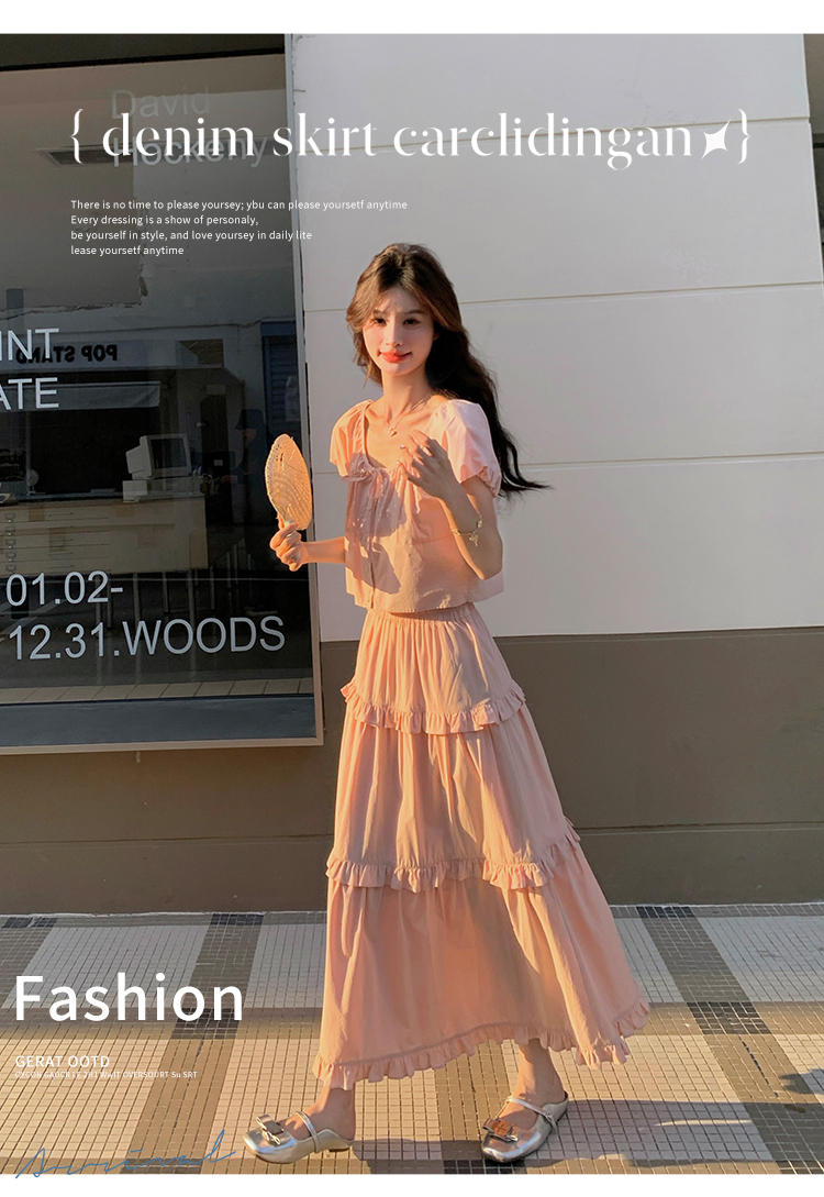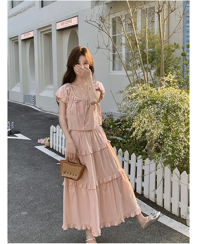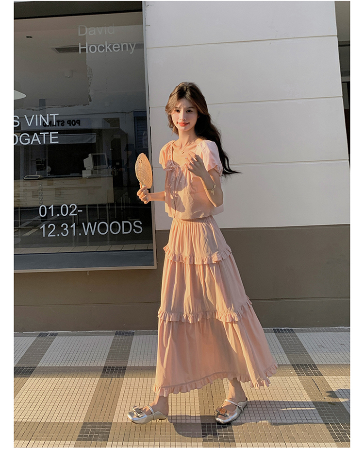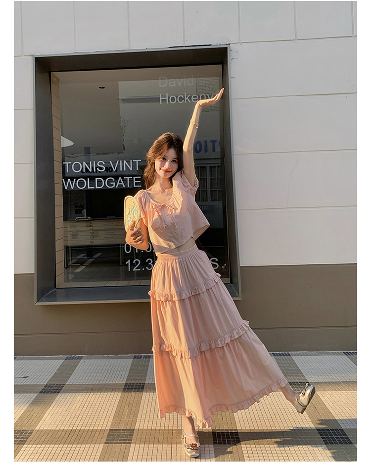 獨家訂製│2件套 韓系甜美感拼接上衣+A字裙(04A1014)
