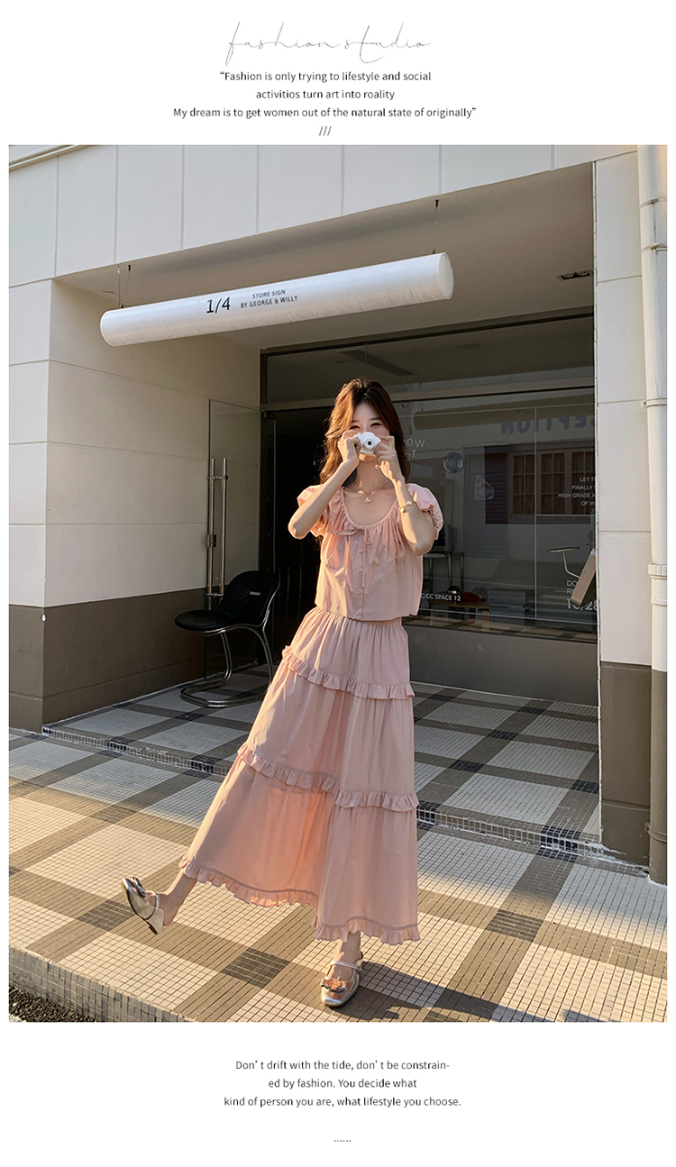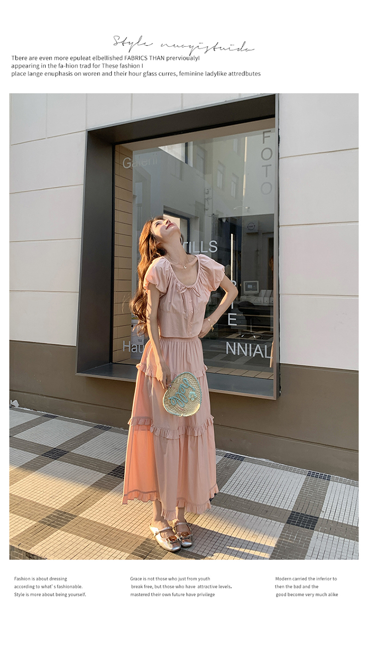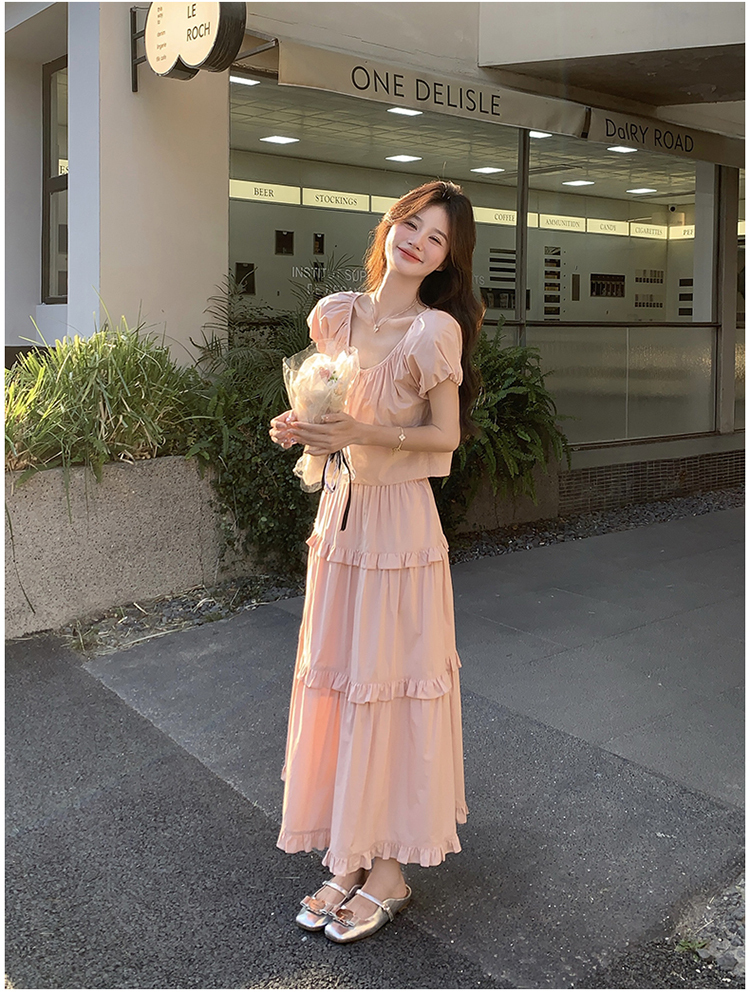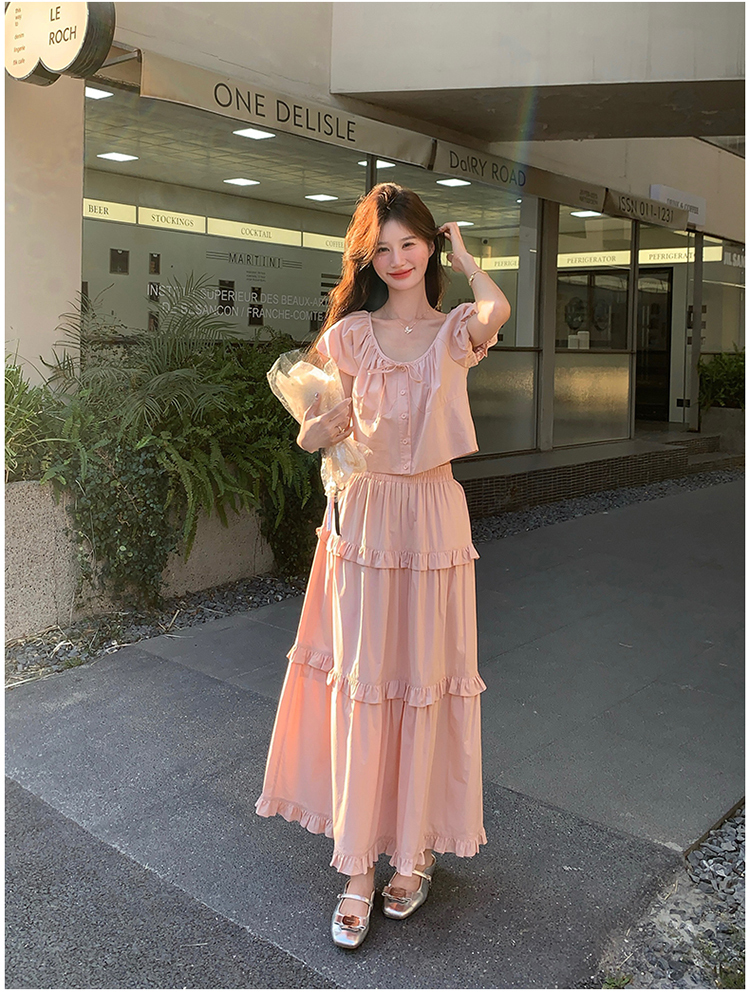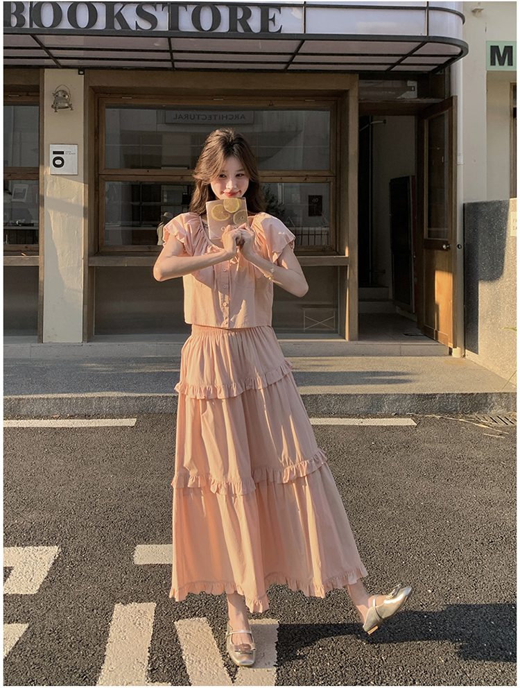 獨家訂製│2件套 韓系甜美感拼接上衣+A字裙(04A1014)