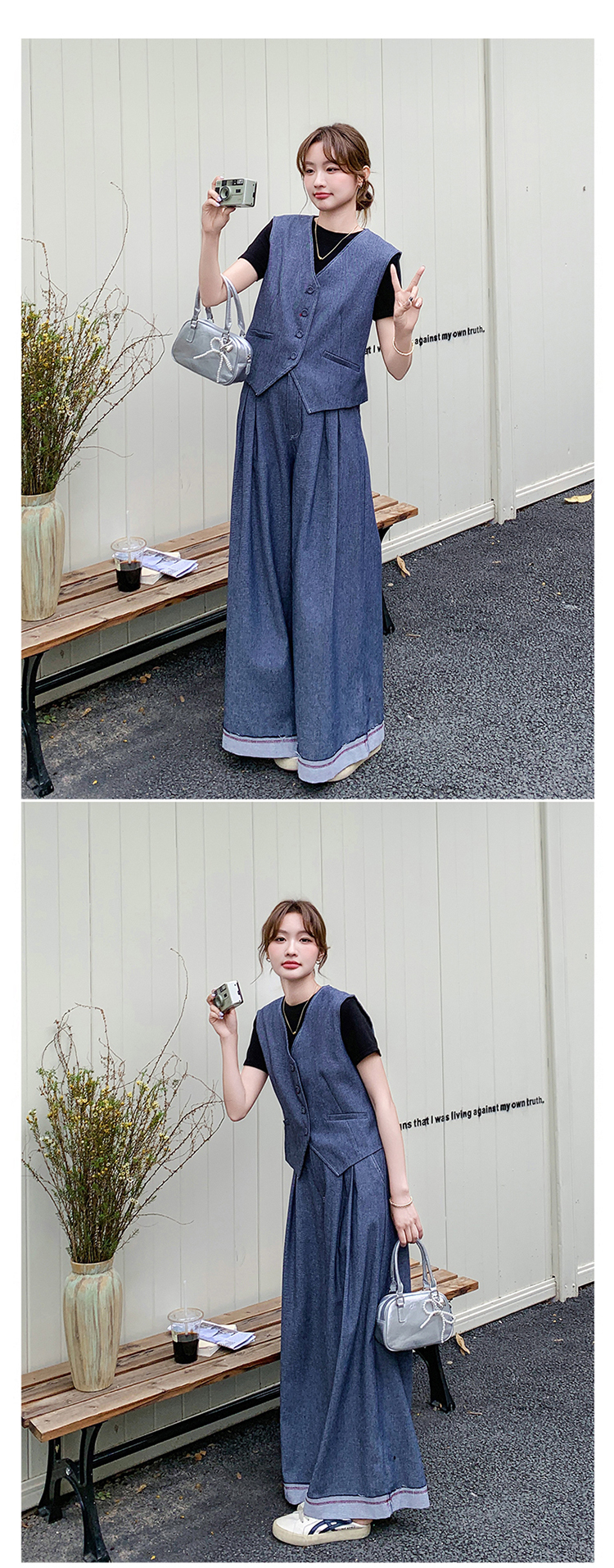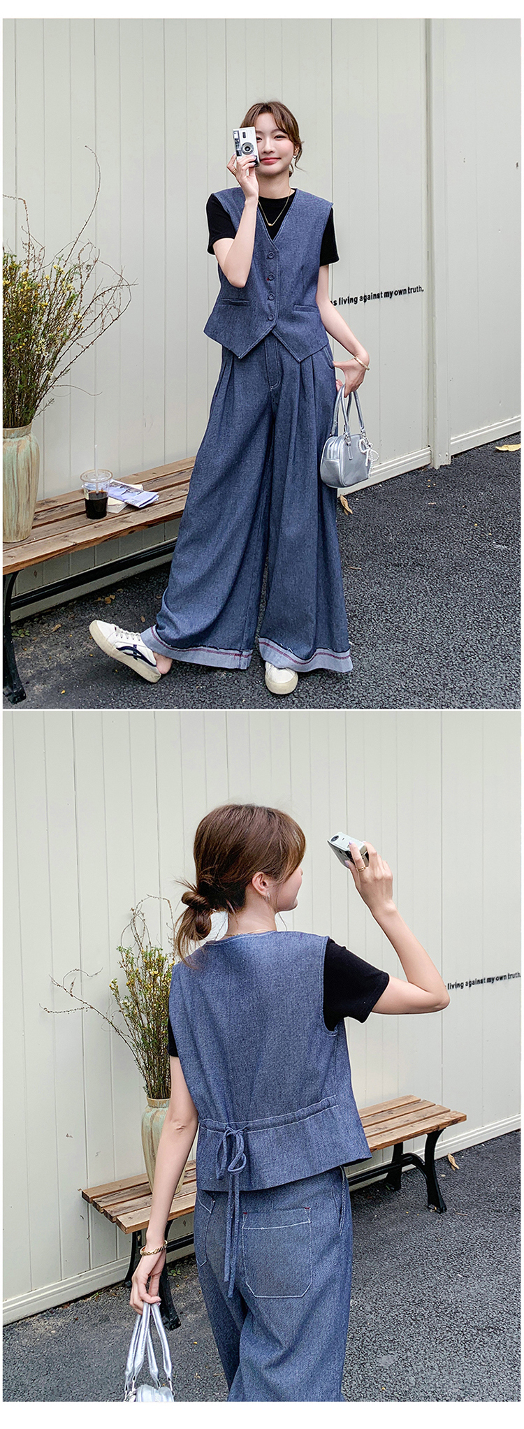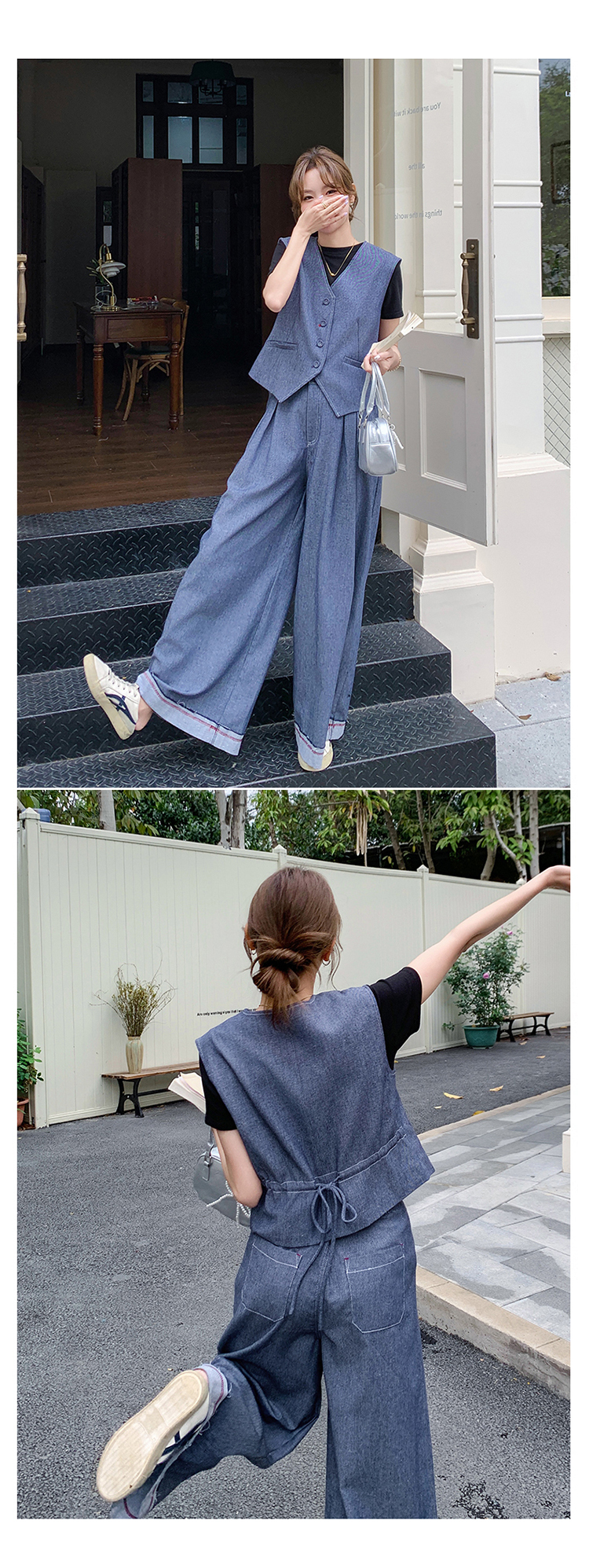 獨家訂製│2件套 韓系甜酷抽繩背心+闊腿褲(04A1016)