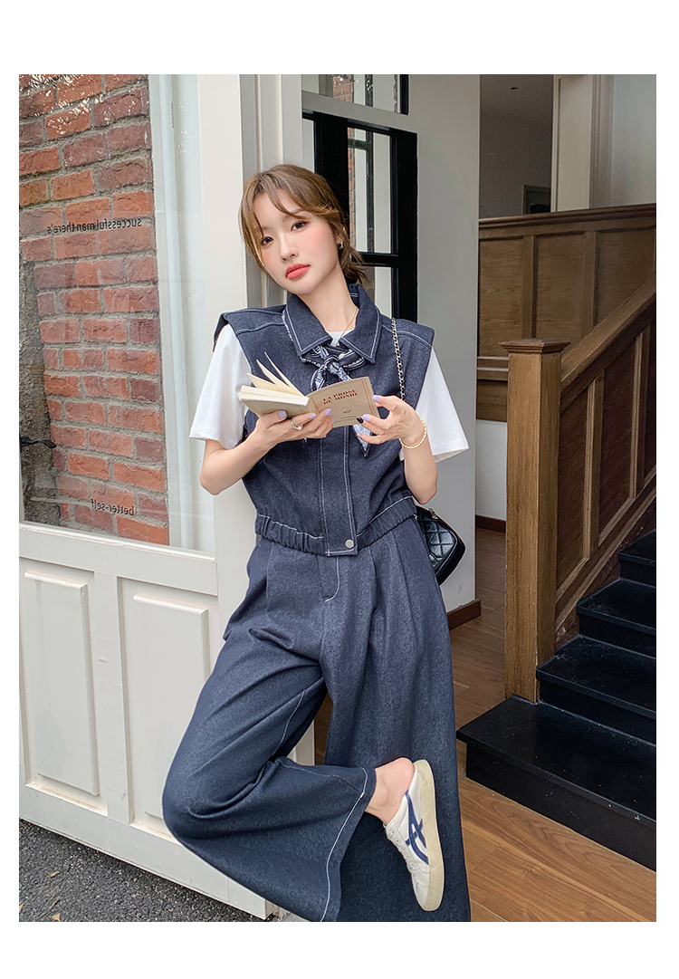 獨家訂製│3件式 韓系個性T恤+背心+闊腿褲(04A1031)