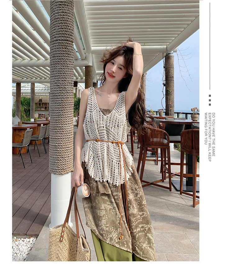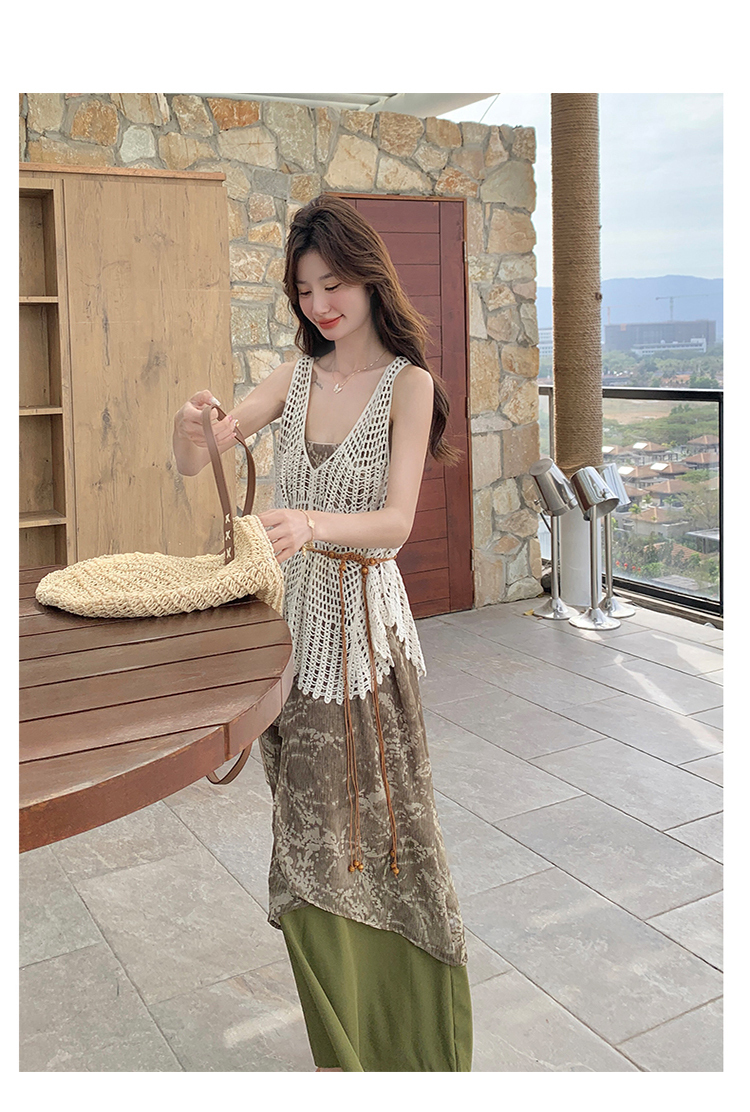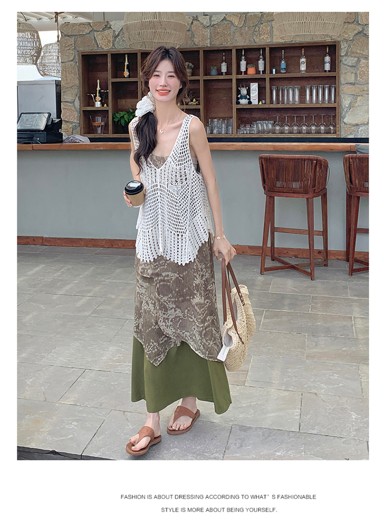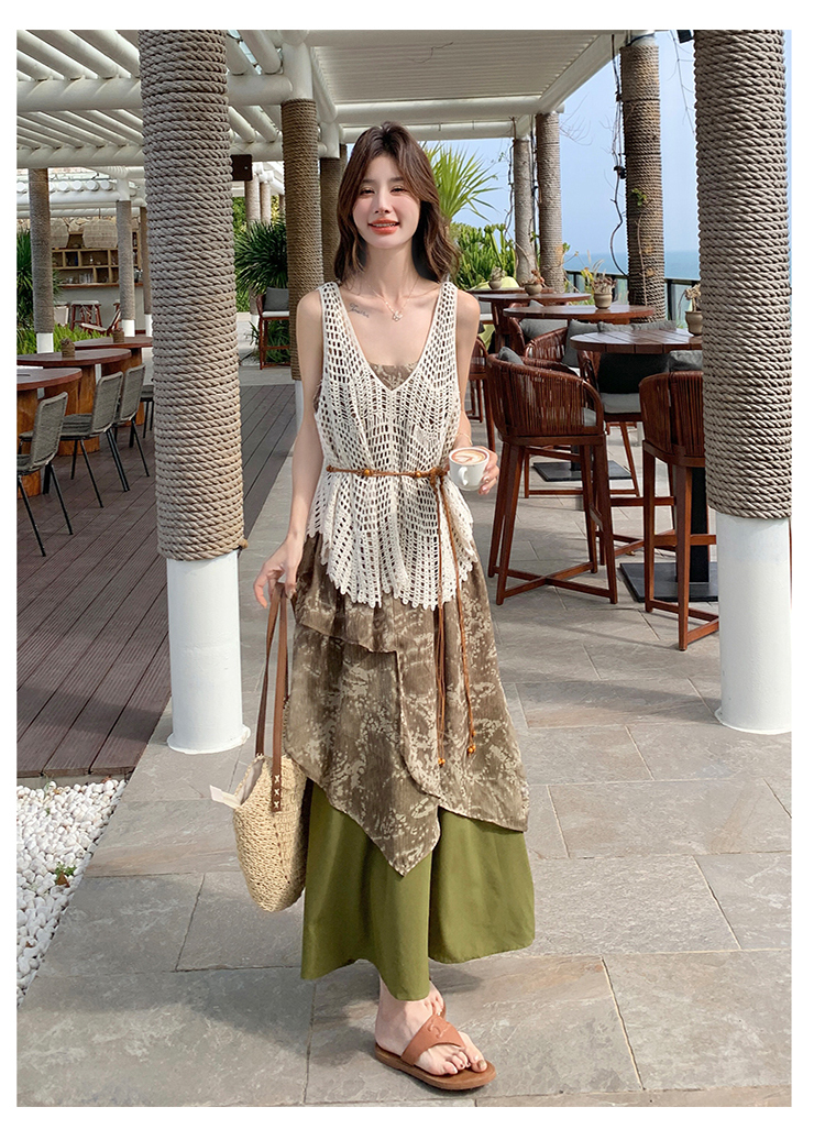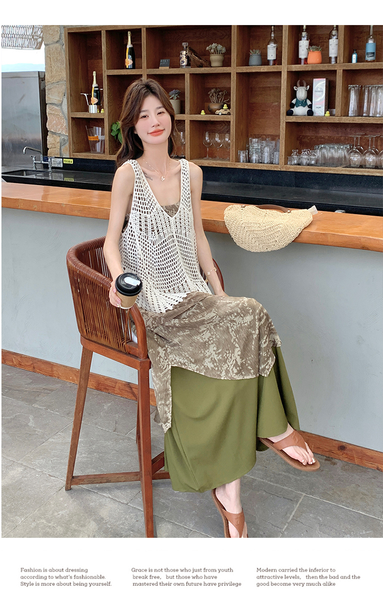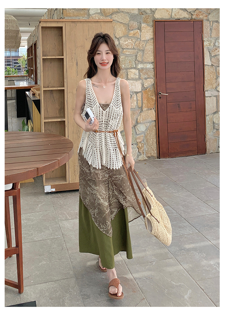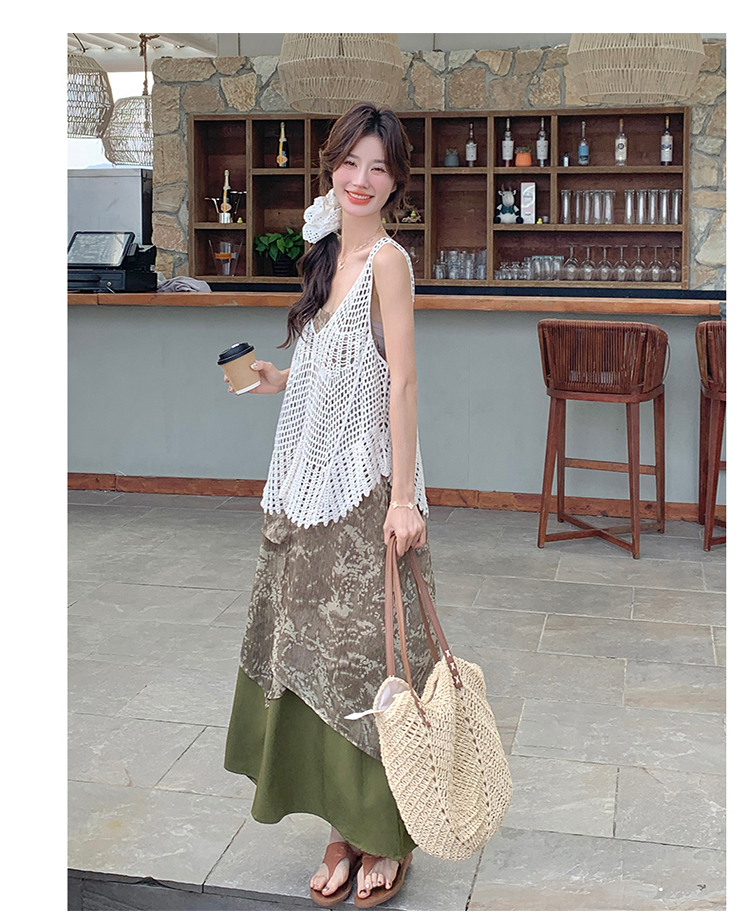 獨家訂製│2件式 韓系渡假風縷空背心+不規則拼接吊帶裙(04A1061)