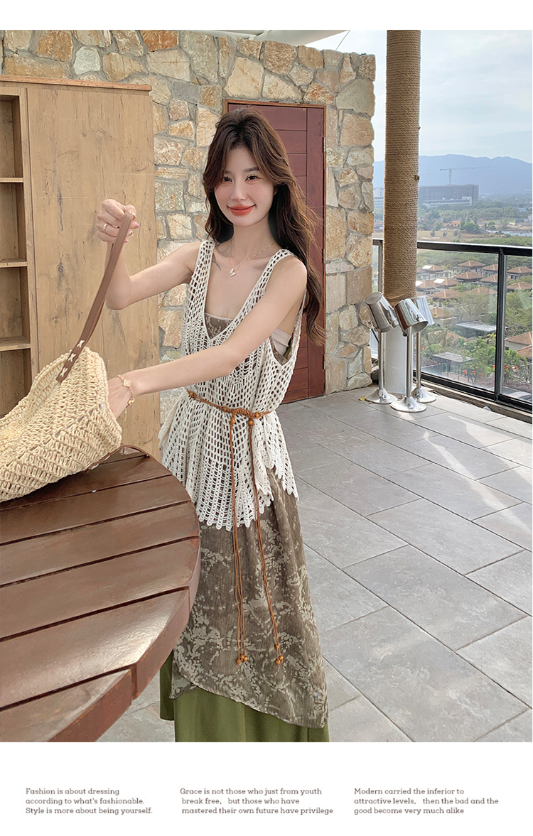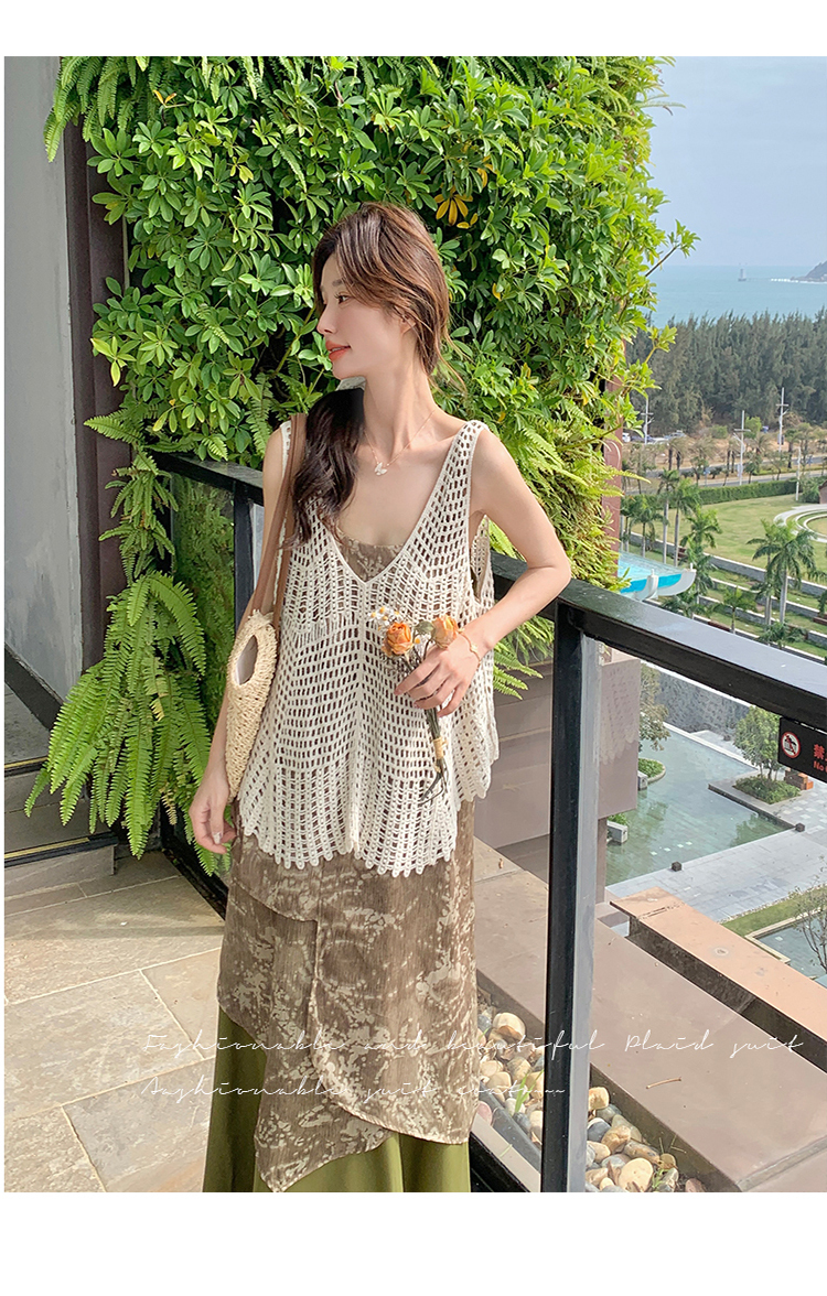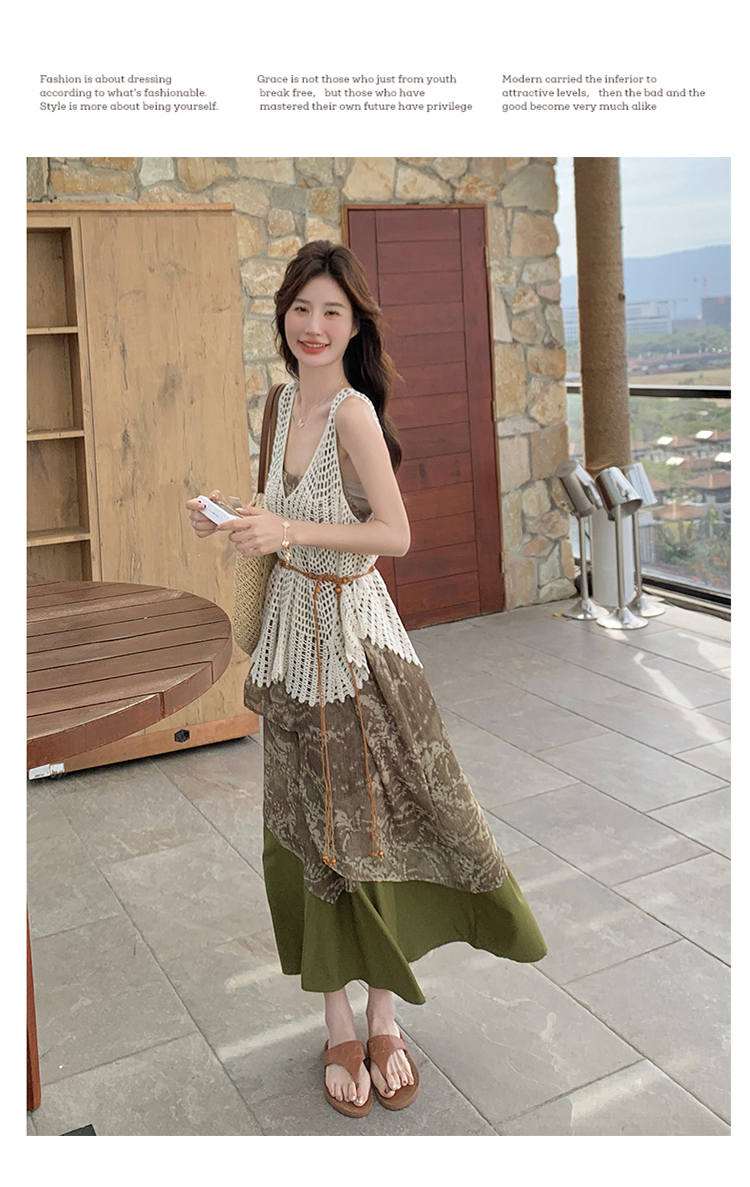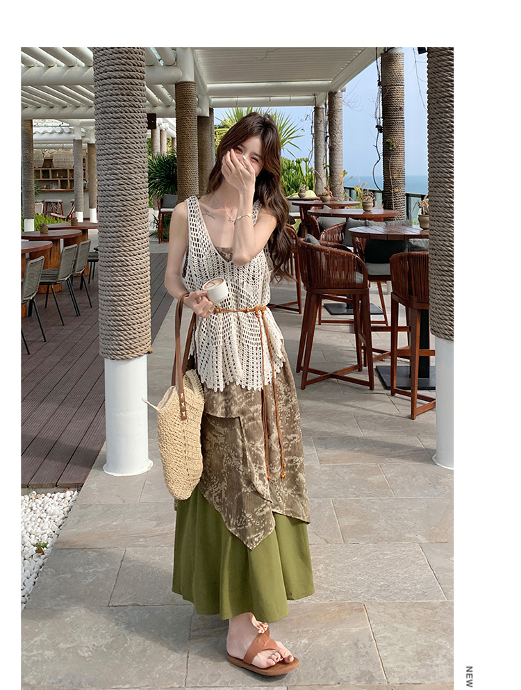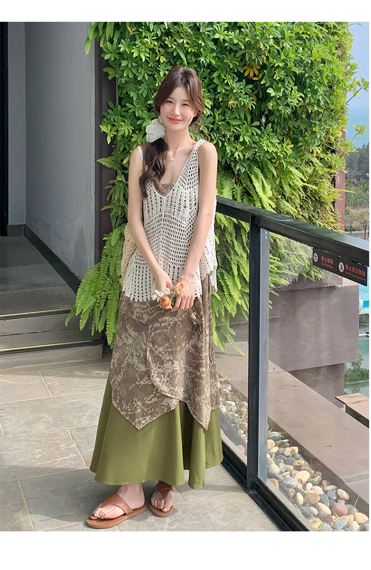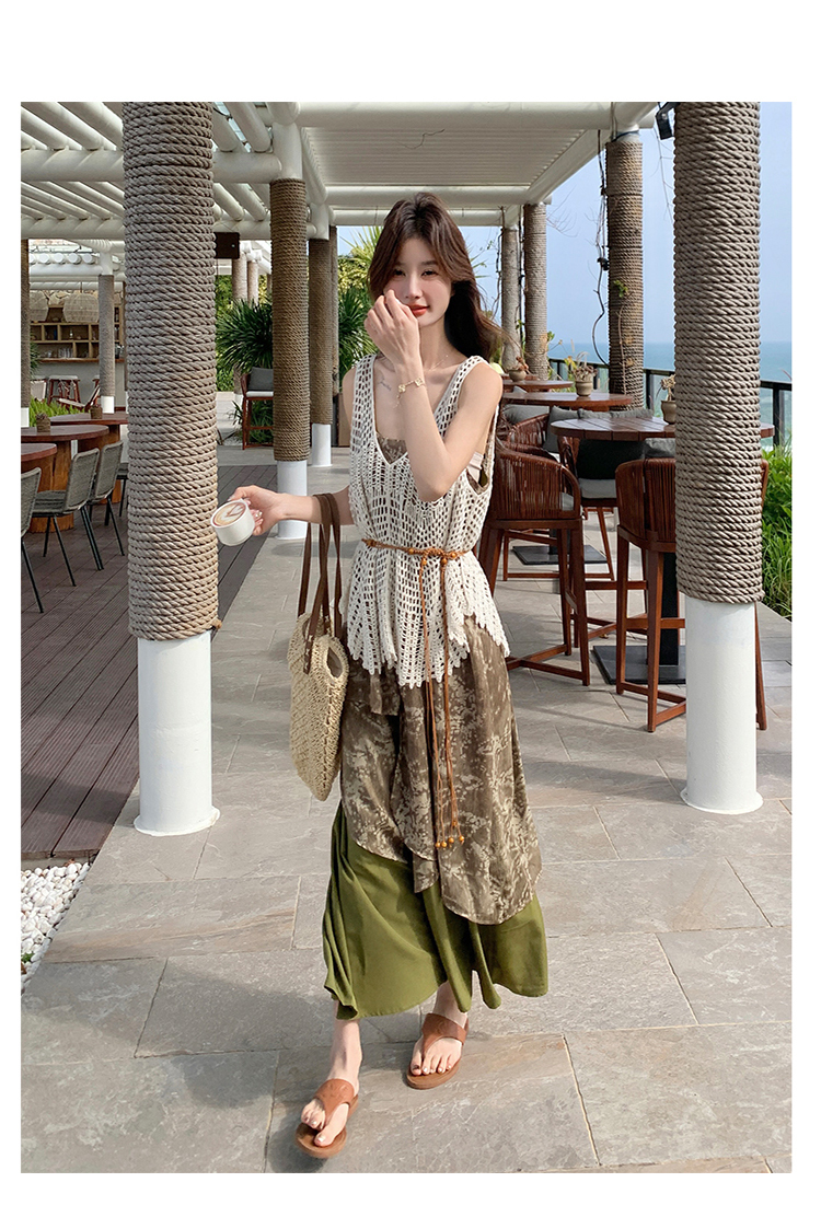 獨家訂製│2件式 韓系渡假風縷空背心+不規則拼接吊帶裙(04A1061)