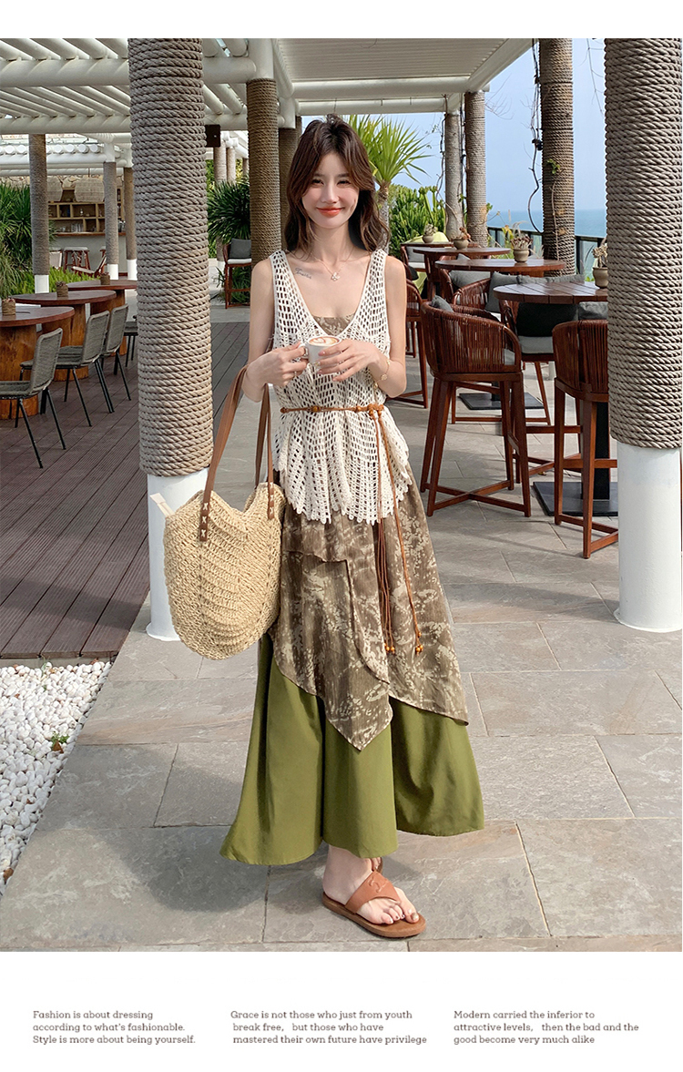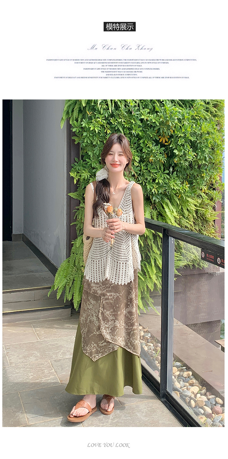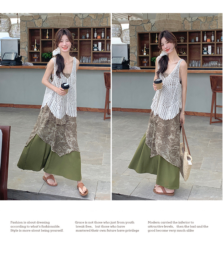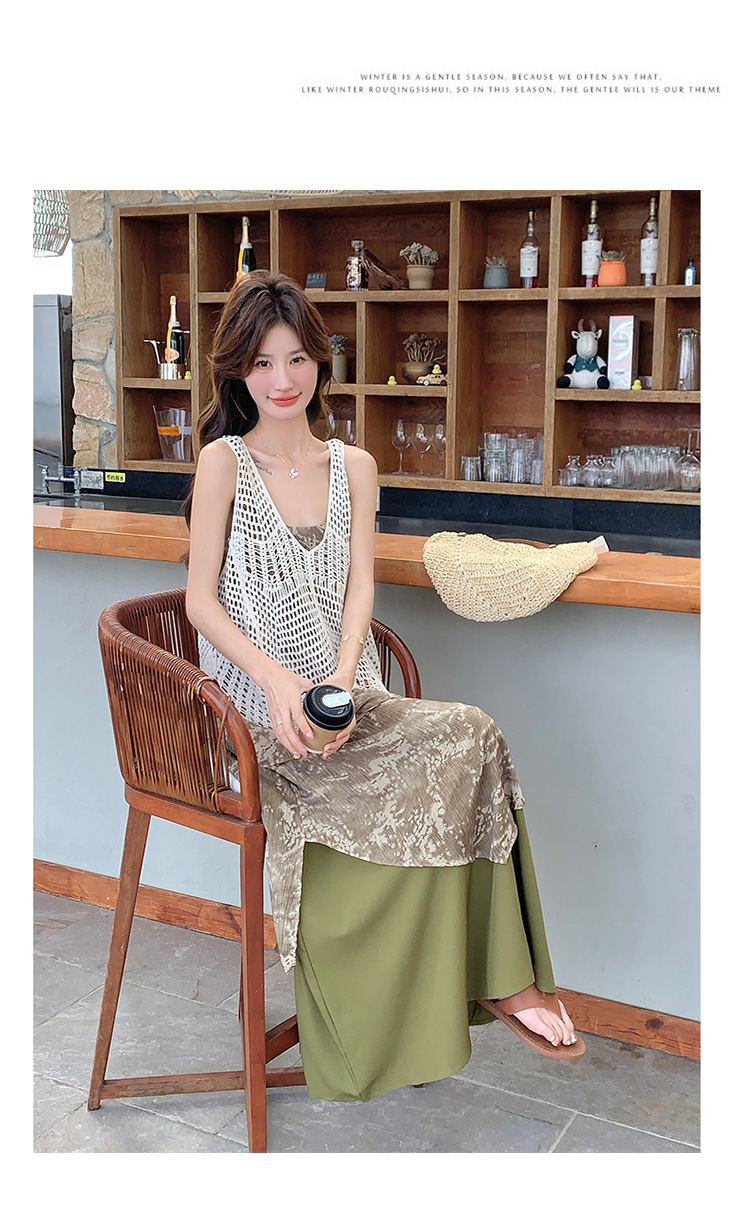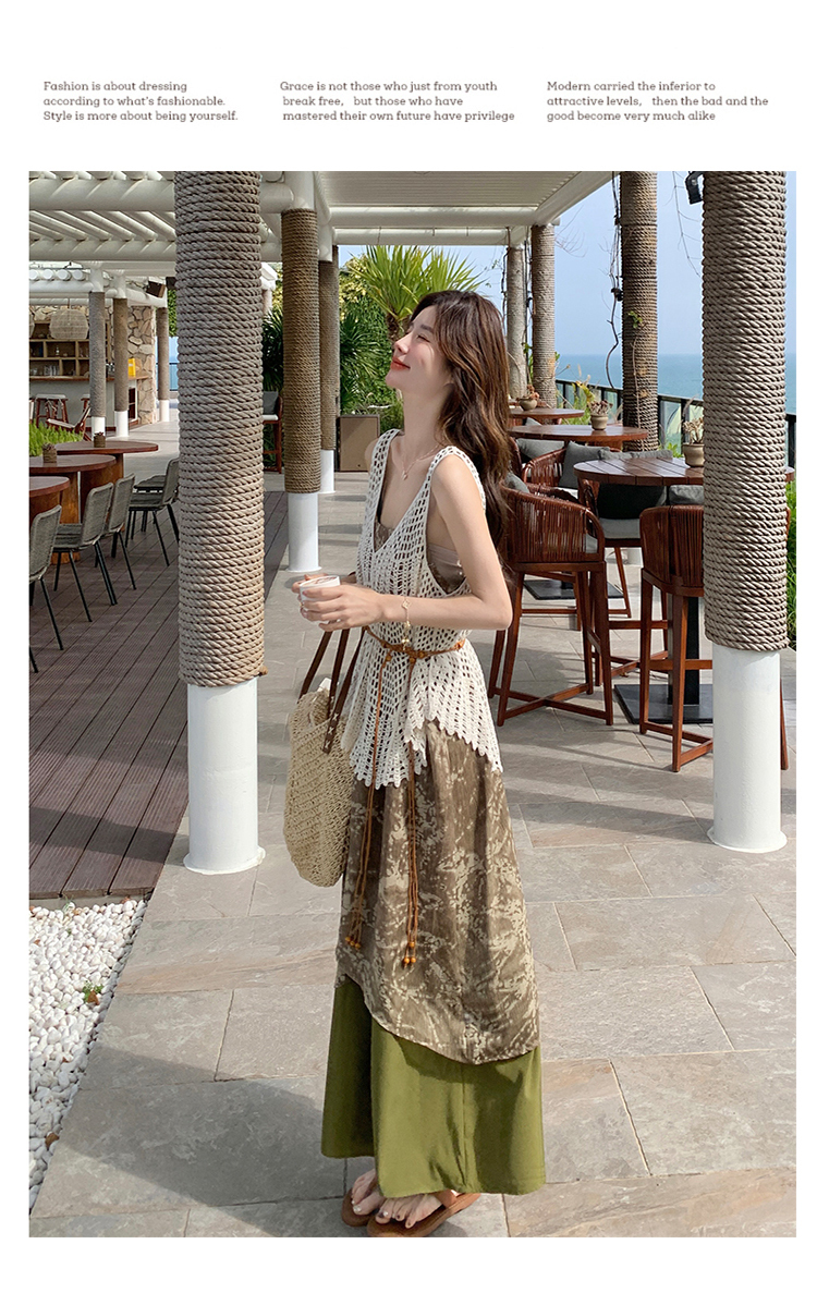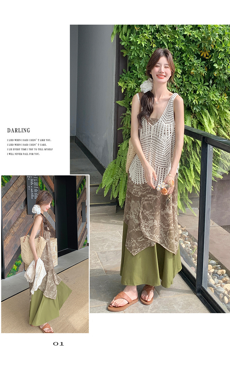 獨家訂製│2件式 韓系渡假風縷空背心+不規則拼接吊帶裙(04A1061)