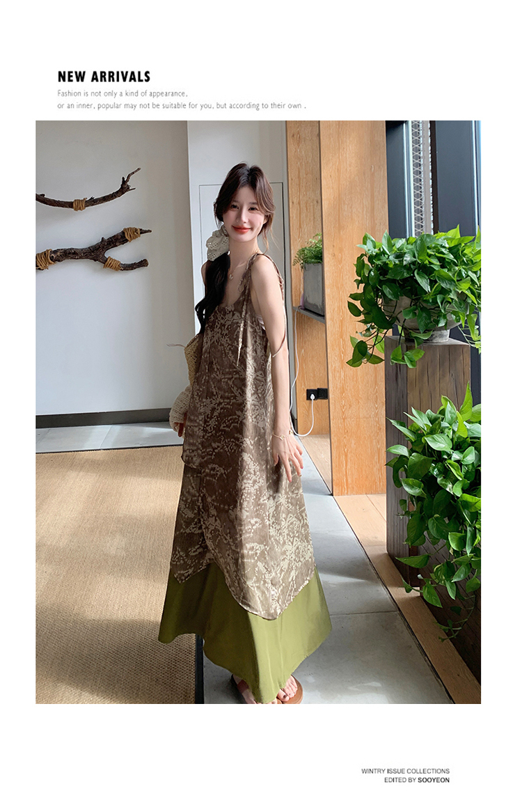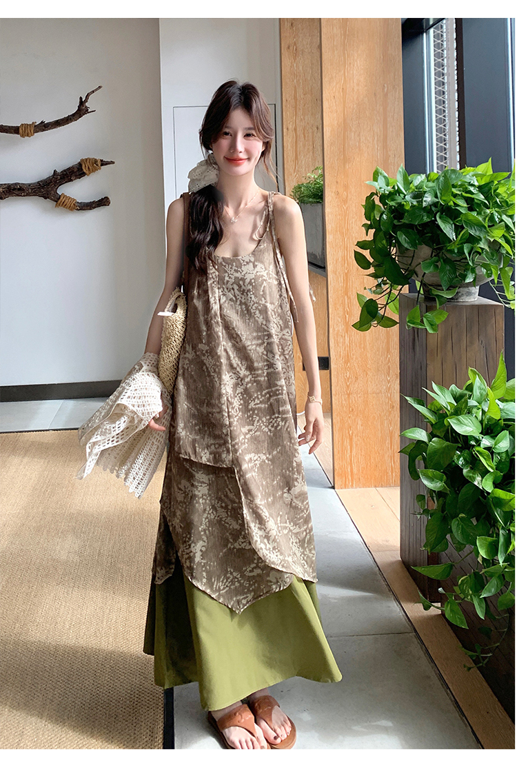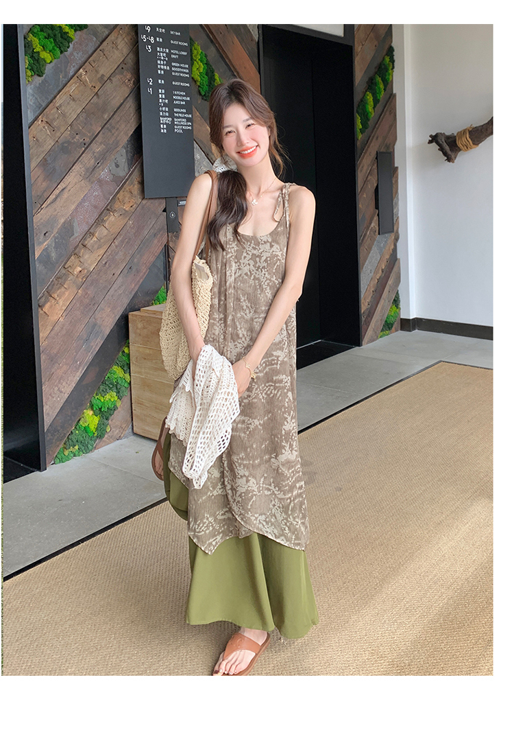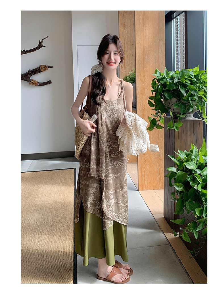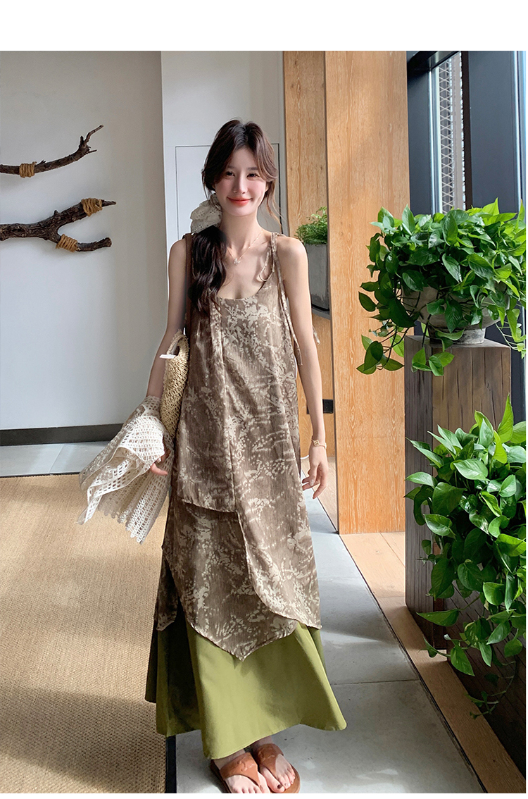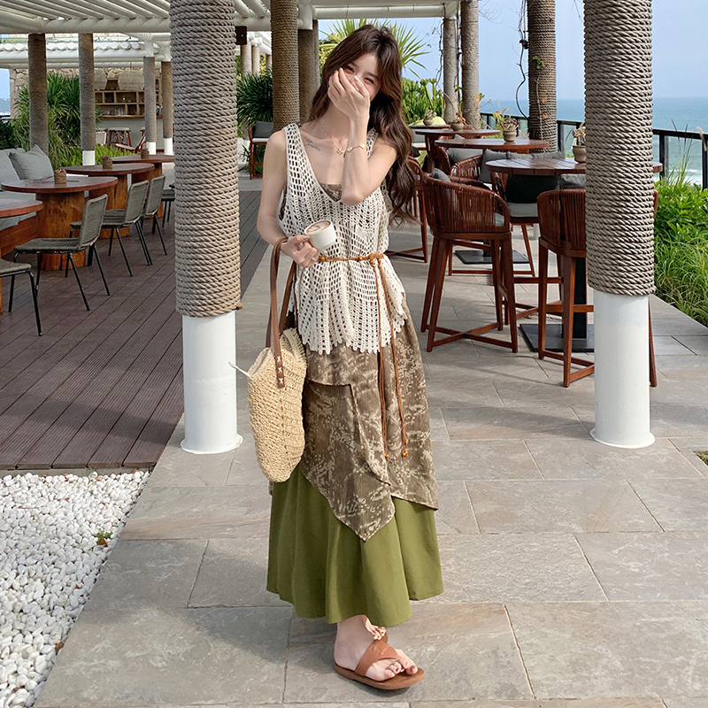 獨家訂製│2件式 韓系渡假風縷空背心+不規則拼接吊帶裙(04A1061)
