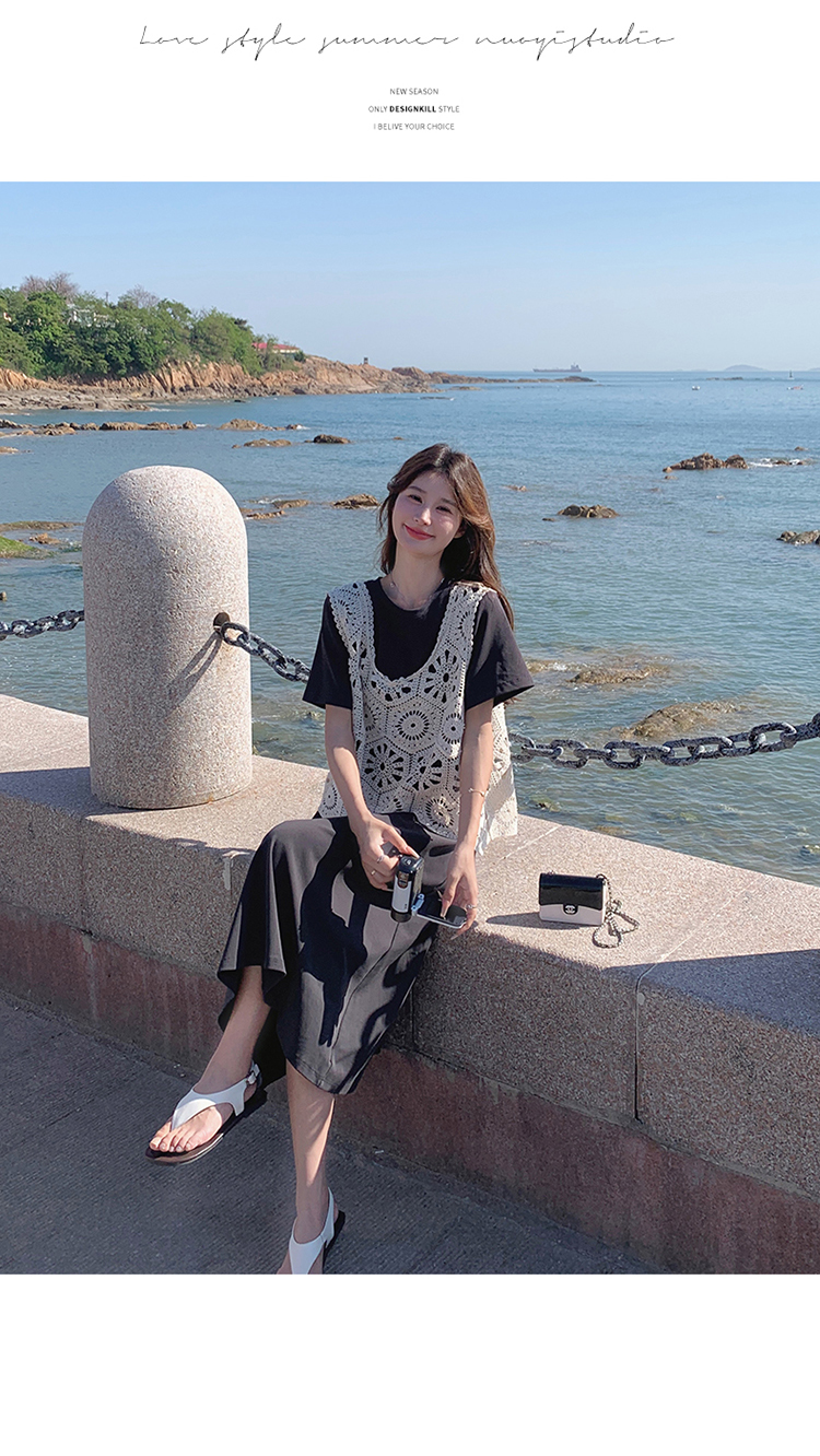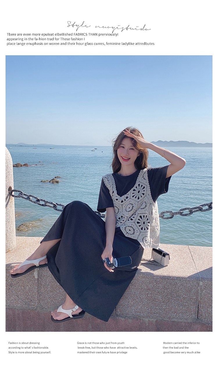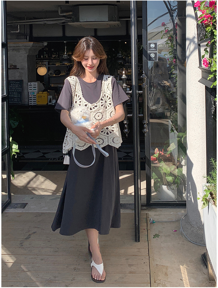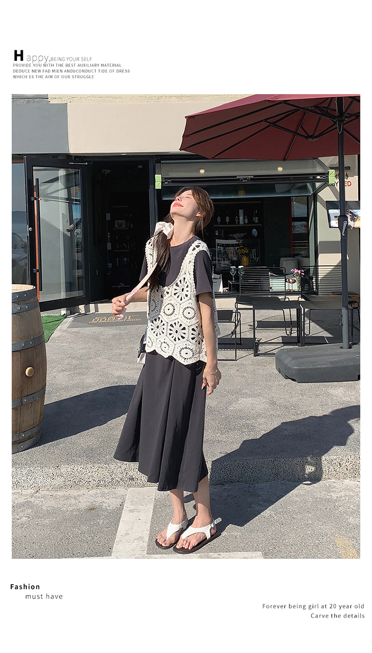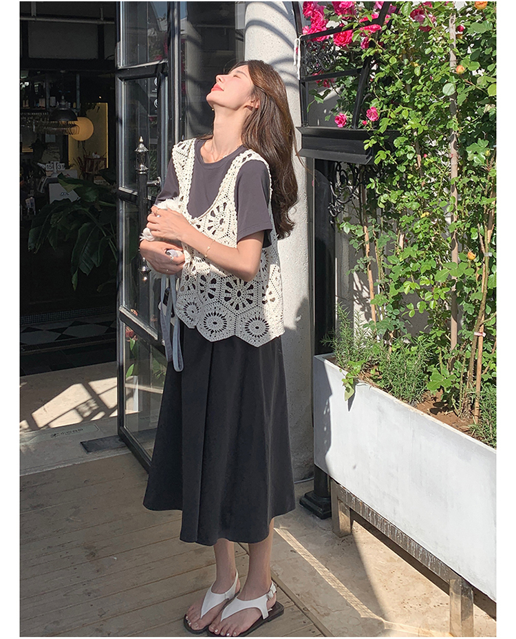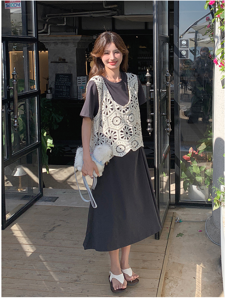 獨家訂製│2件式2色 韓系甜姊兒針織縷空背心+T恤裙(04A1077)