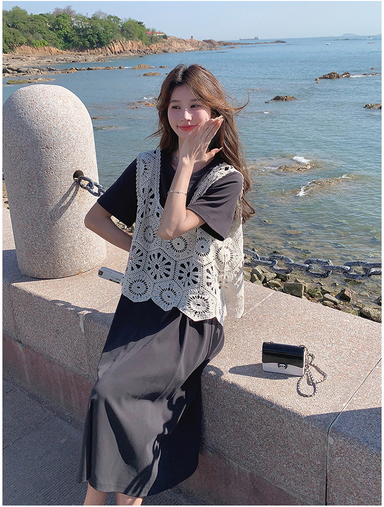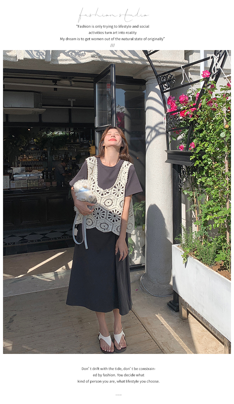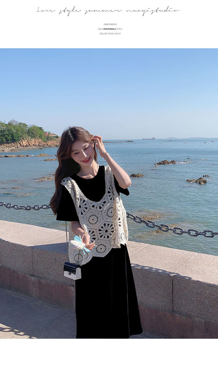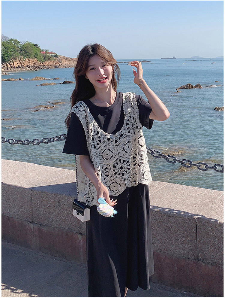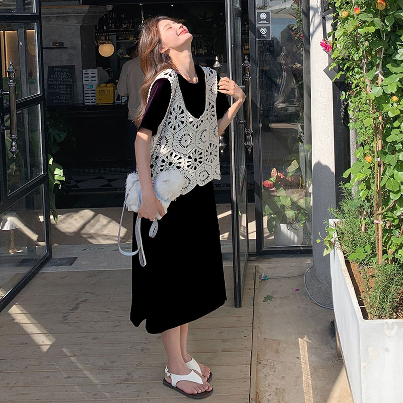 獨家訂製│2件式2色 韓系甜姊兒針織縷空背心+T恤裙(04A1077)
