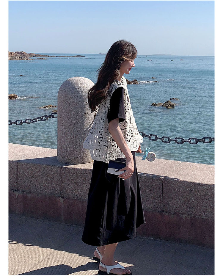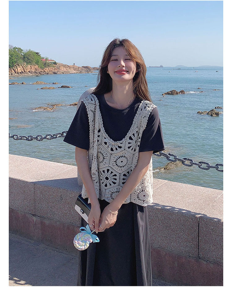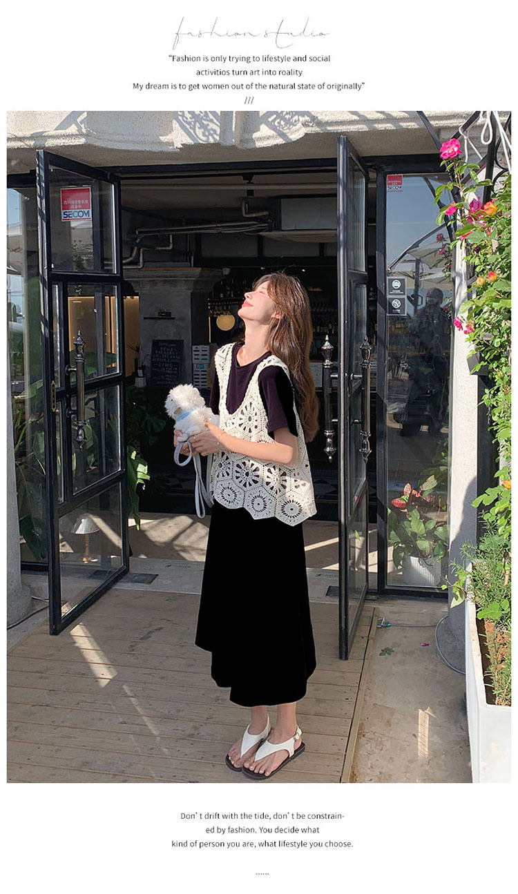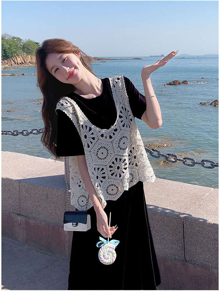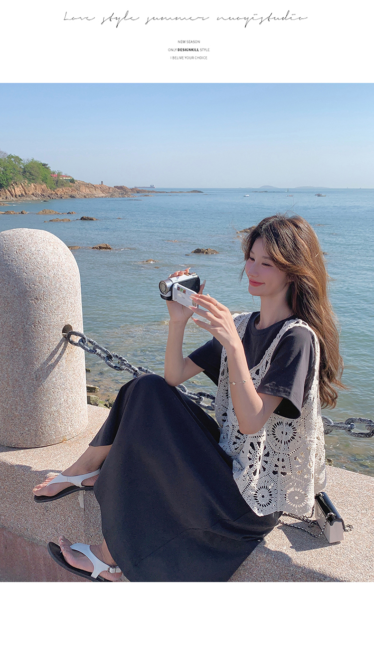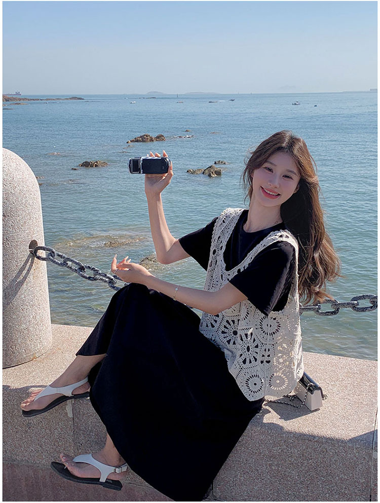 獨家訂製│2件式2色 韓系甜姊兒針織縷空背心+T恤裙(04A1077)
