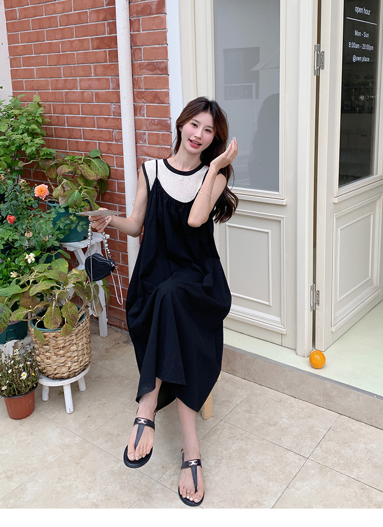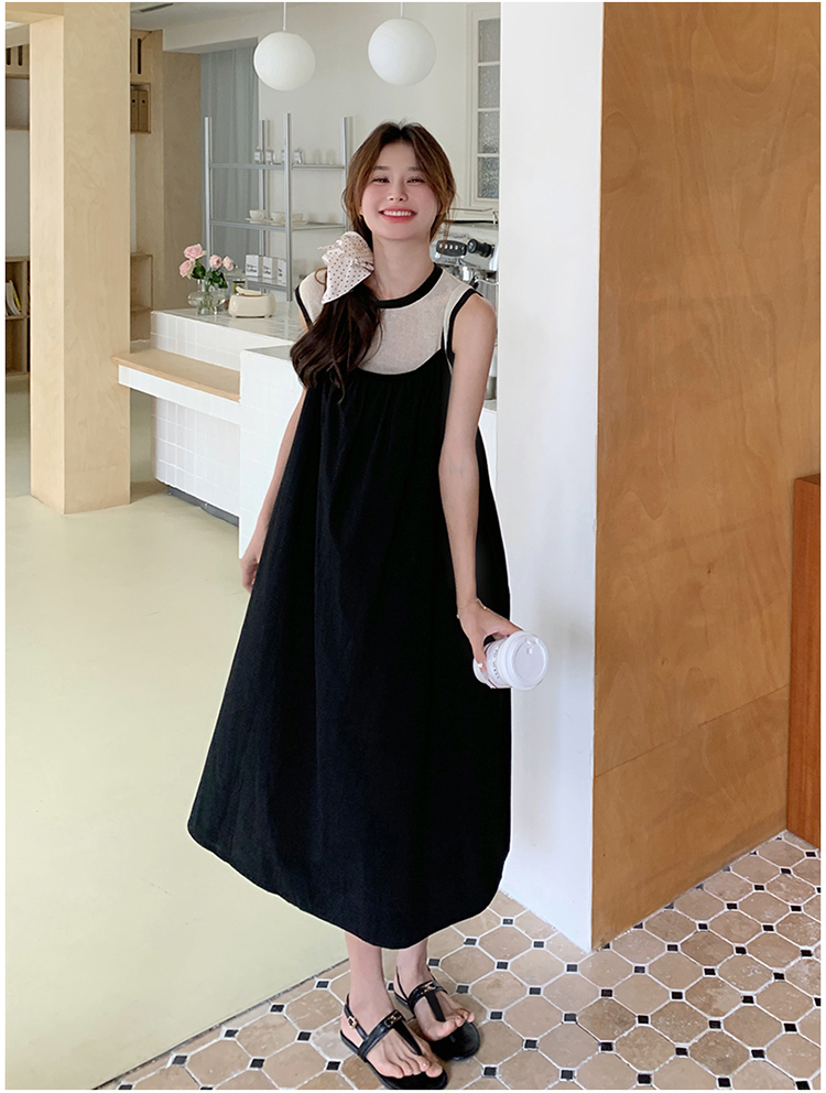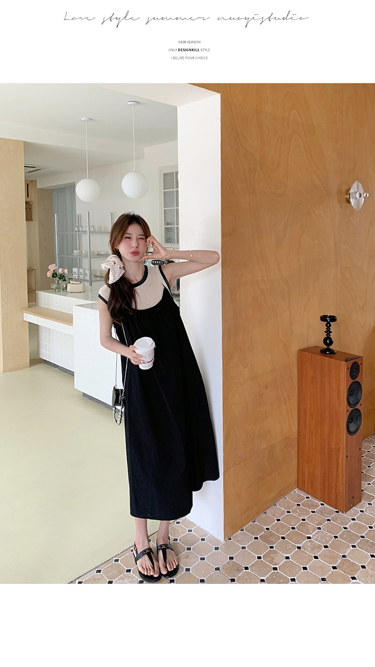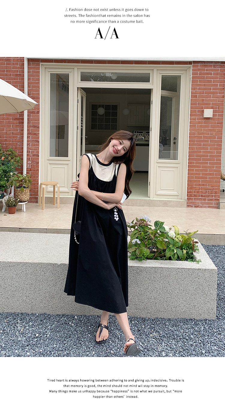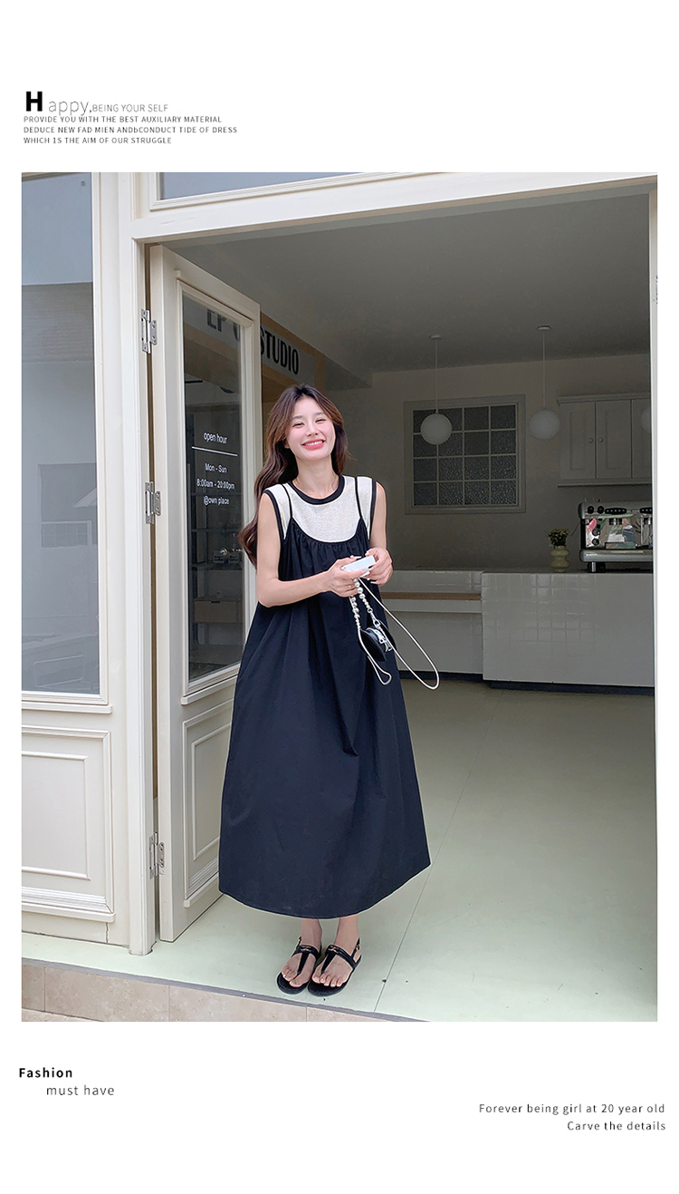 獨家訂製│2件式 韓系甜姊兒後背綁帶造型吊帶裙+背心(04A1082)