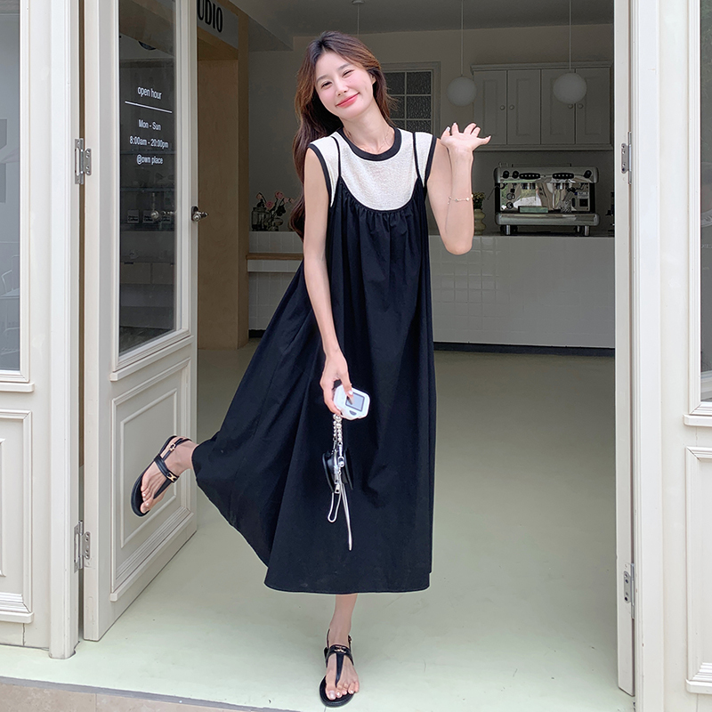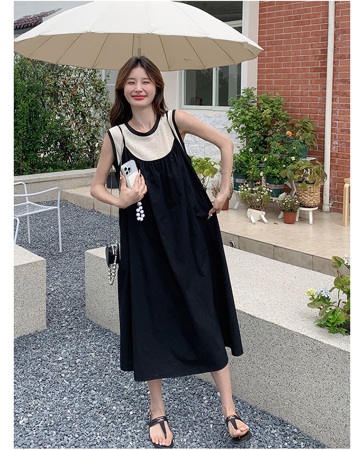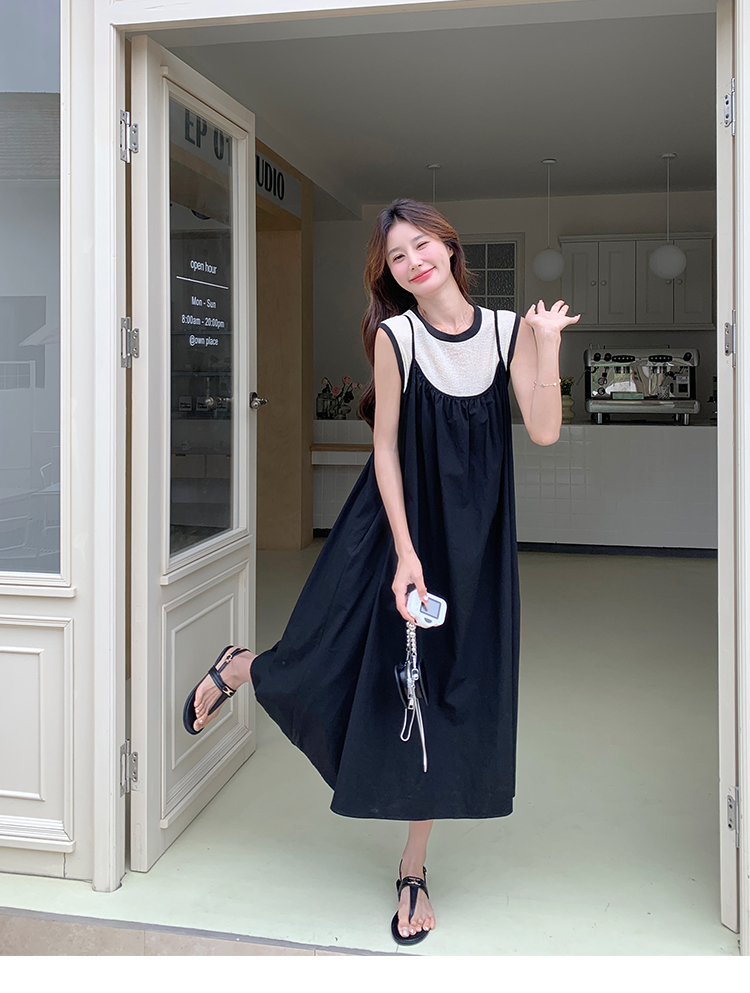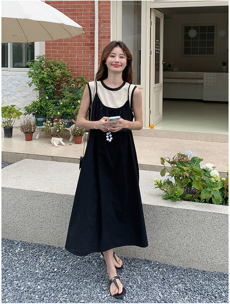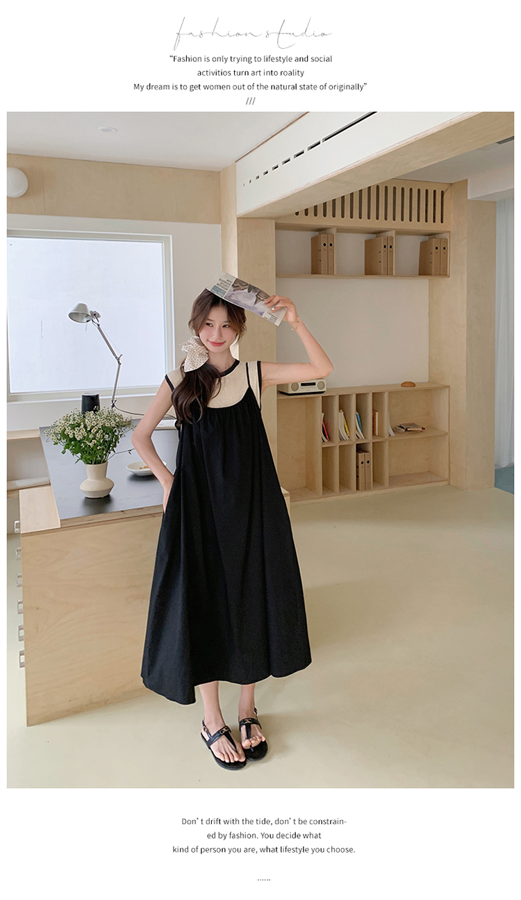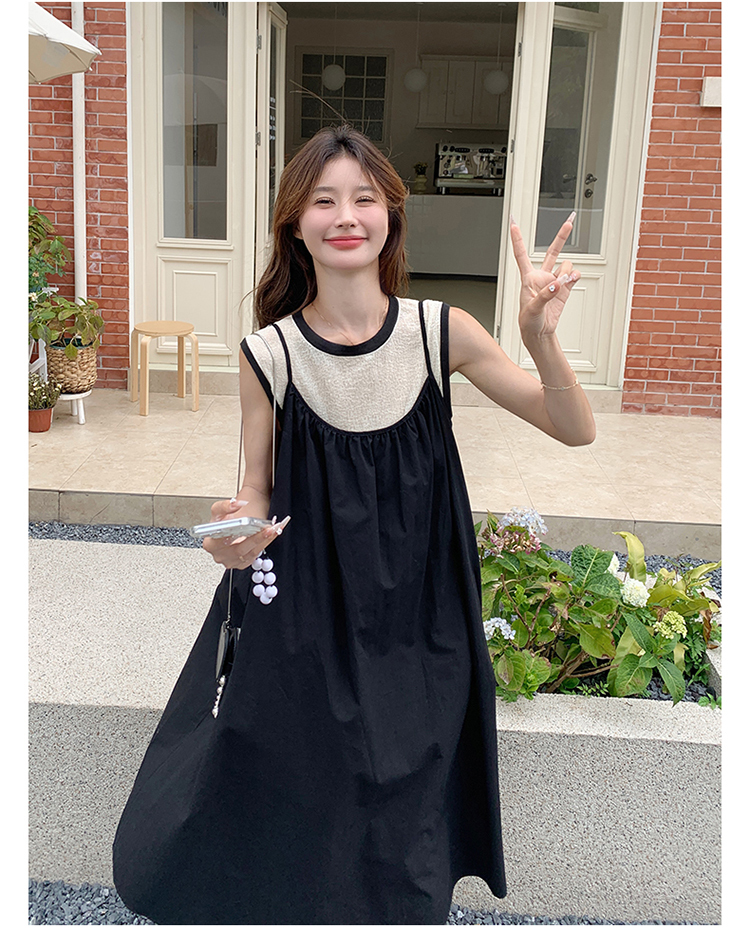 獨家訂製│2件式 韓系甜姊兒後背綁帶造型吊帶裙+背心(04A1082)