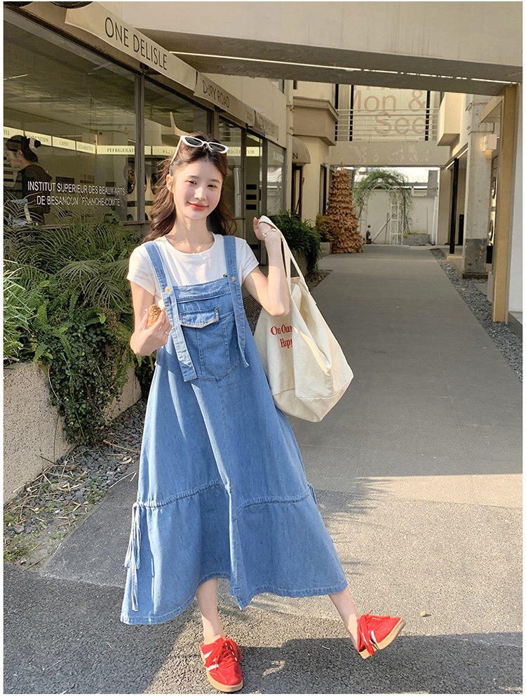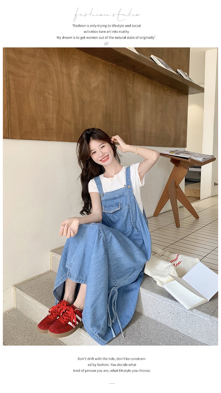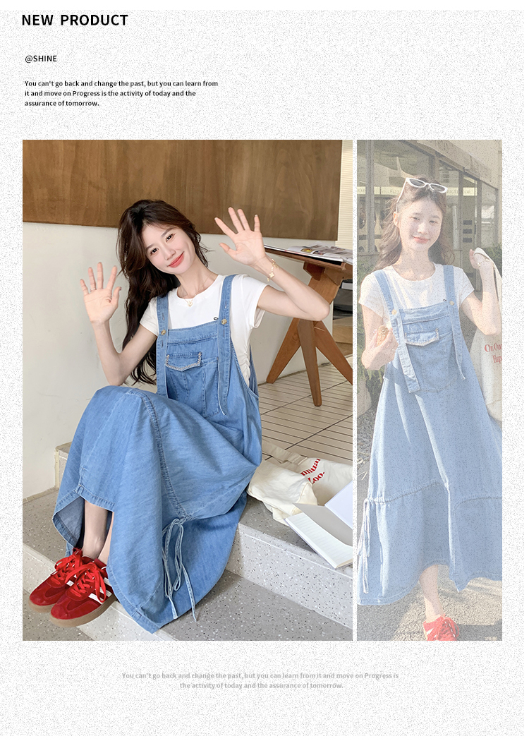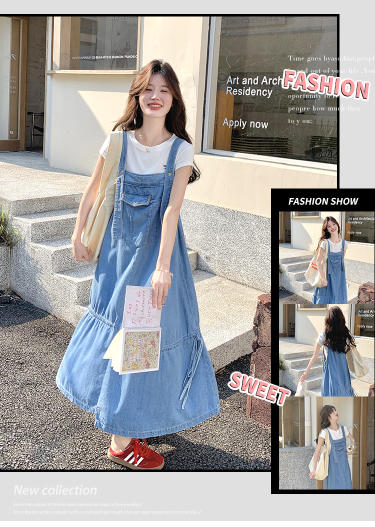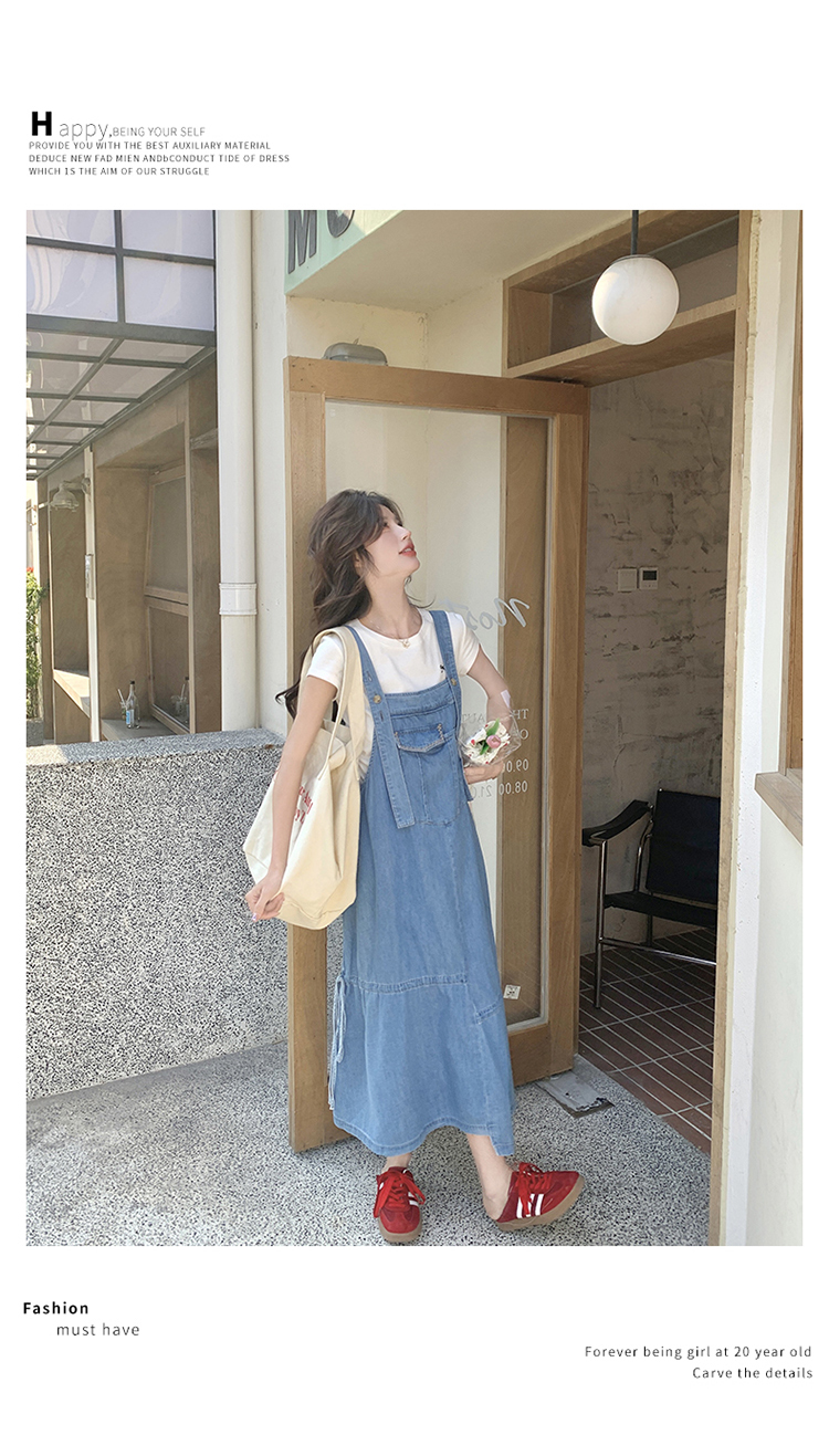 獨家訂製│韓系甜心感裙襬抽繩造型吊帶裙(04A1088)