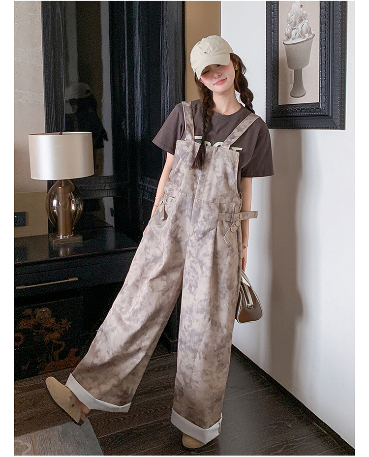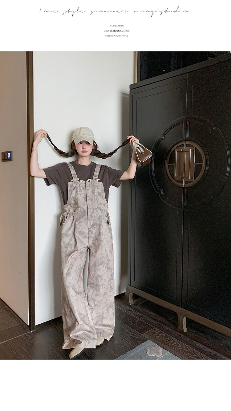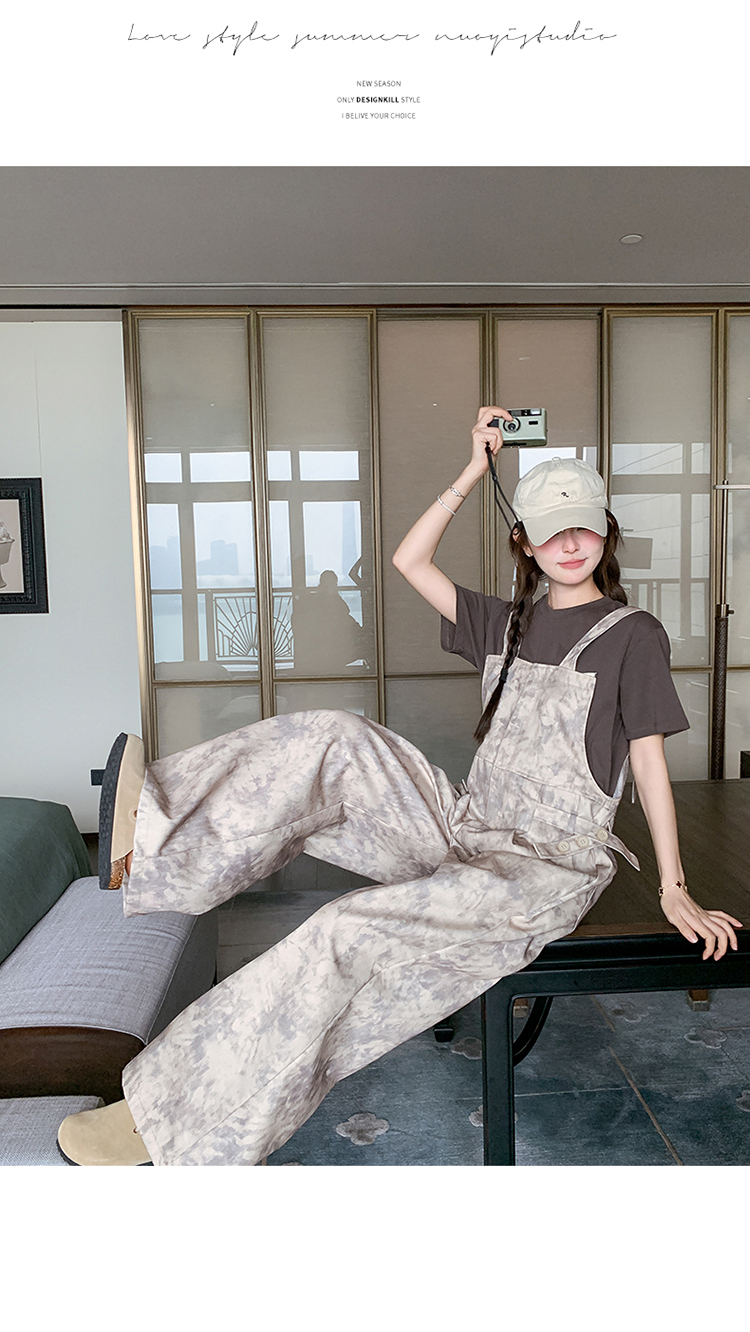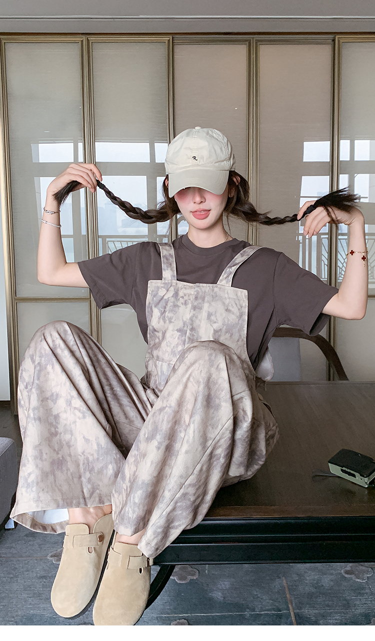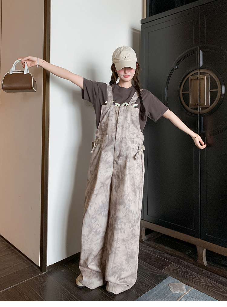 獨家訂製│韓系甜酷風紮染收腰闊腿吊帶褲(04A1091)