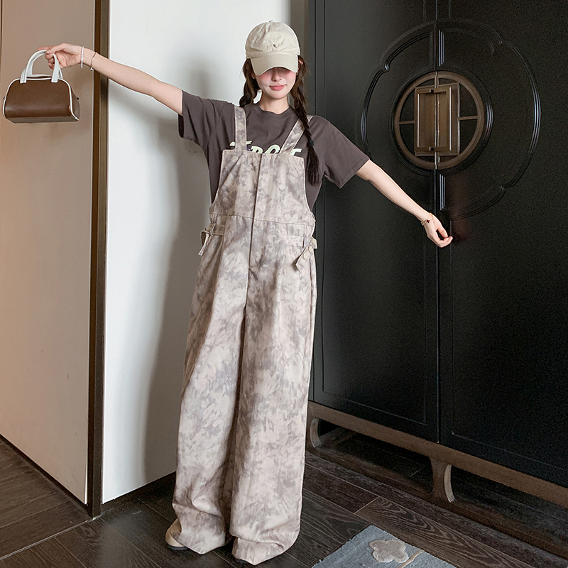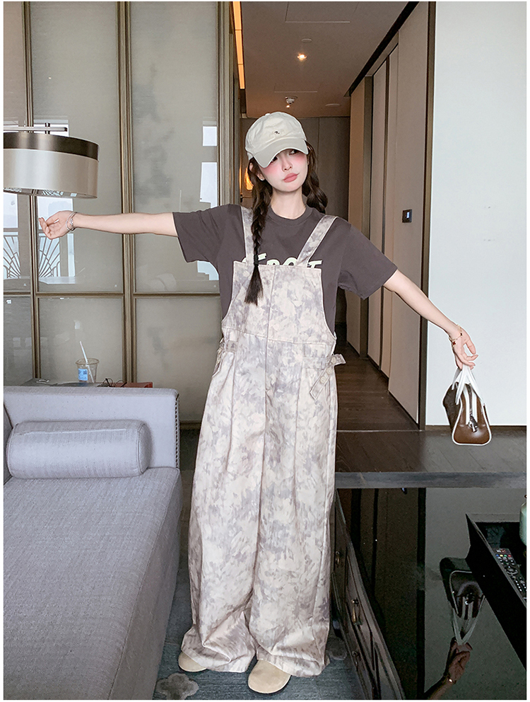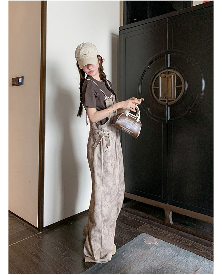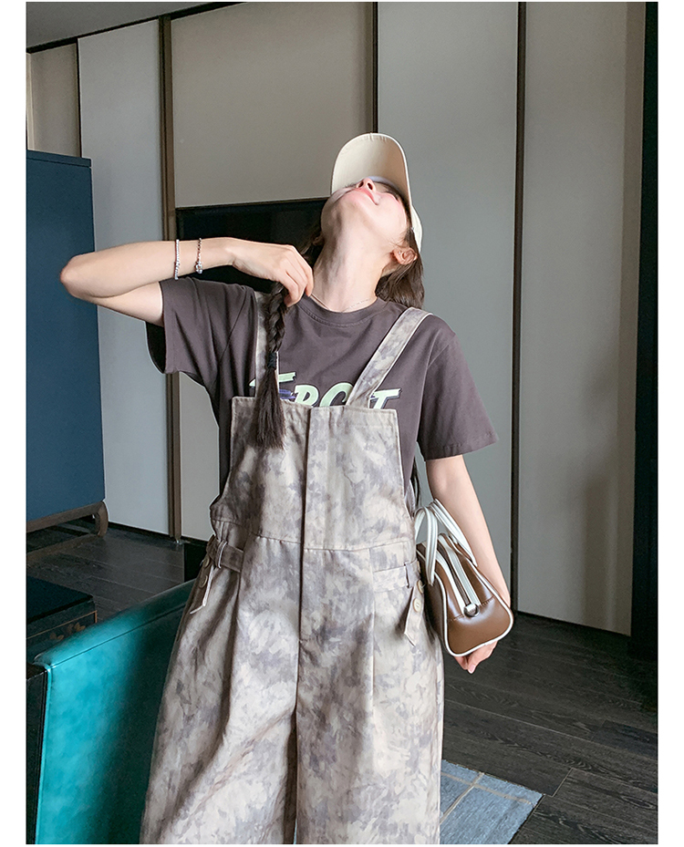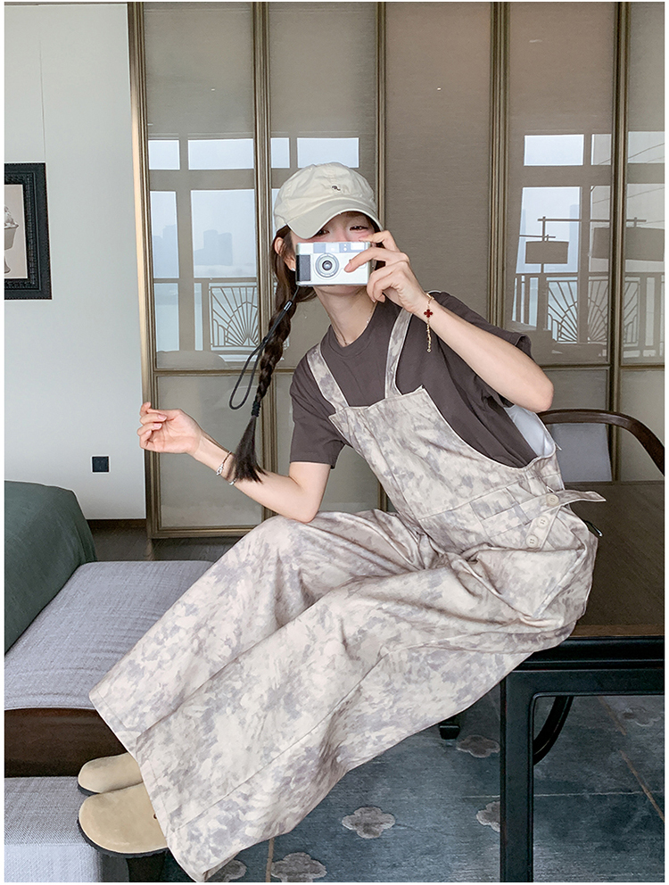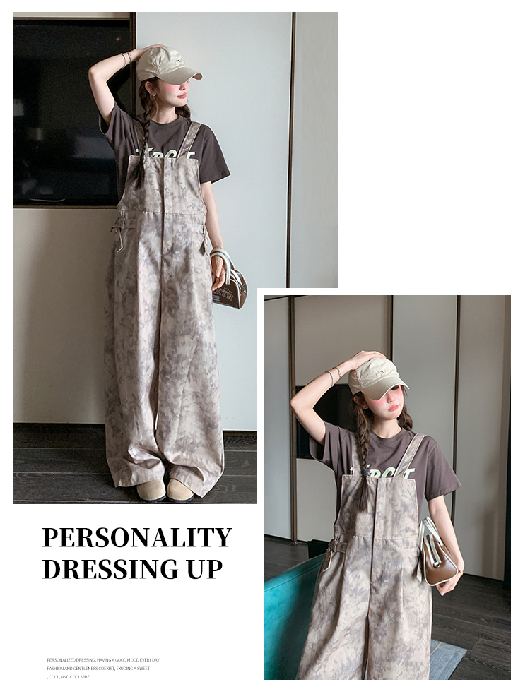獨家訂製│韓系甜酷風紮染收腰闊腿吊帶褲(04A1091)