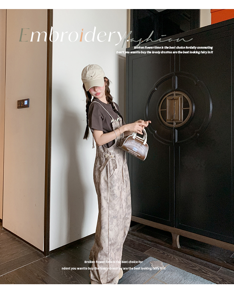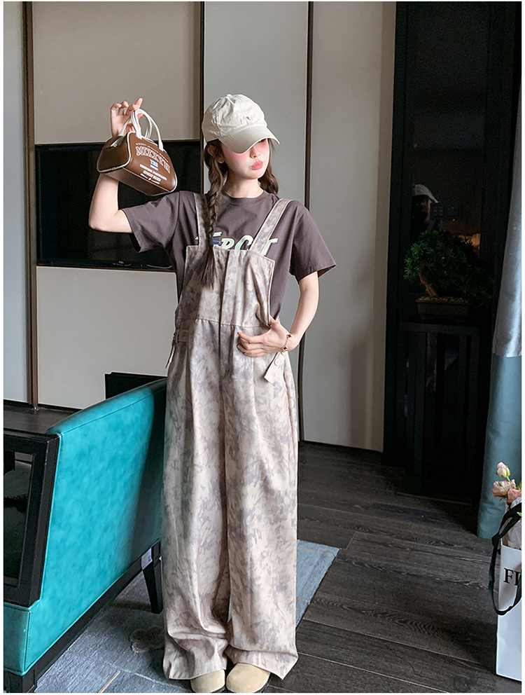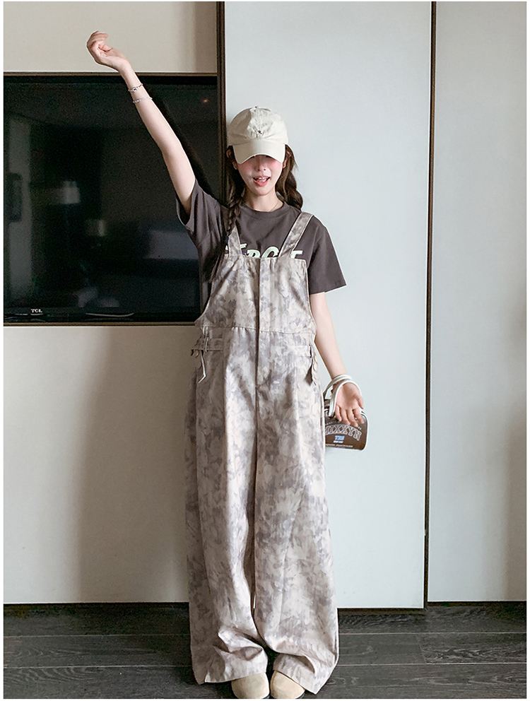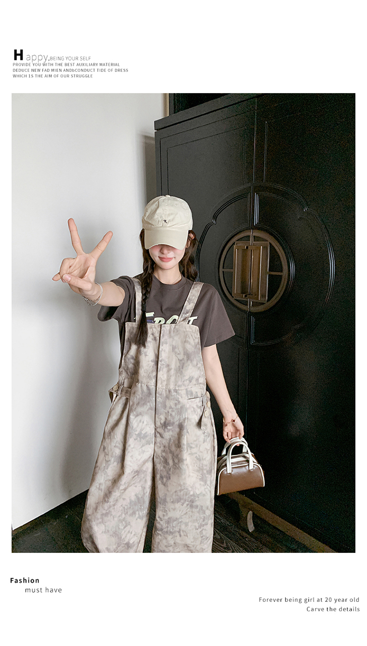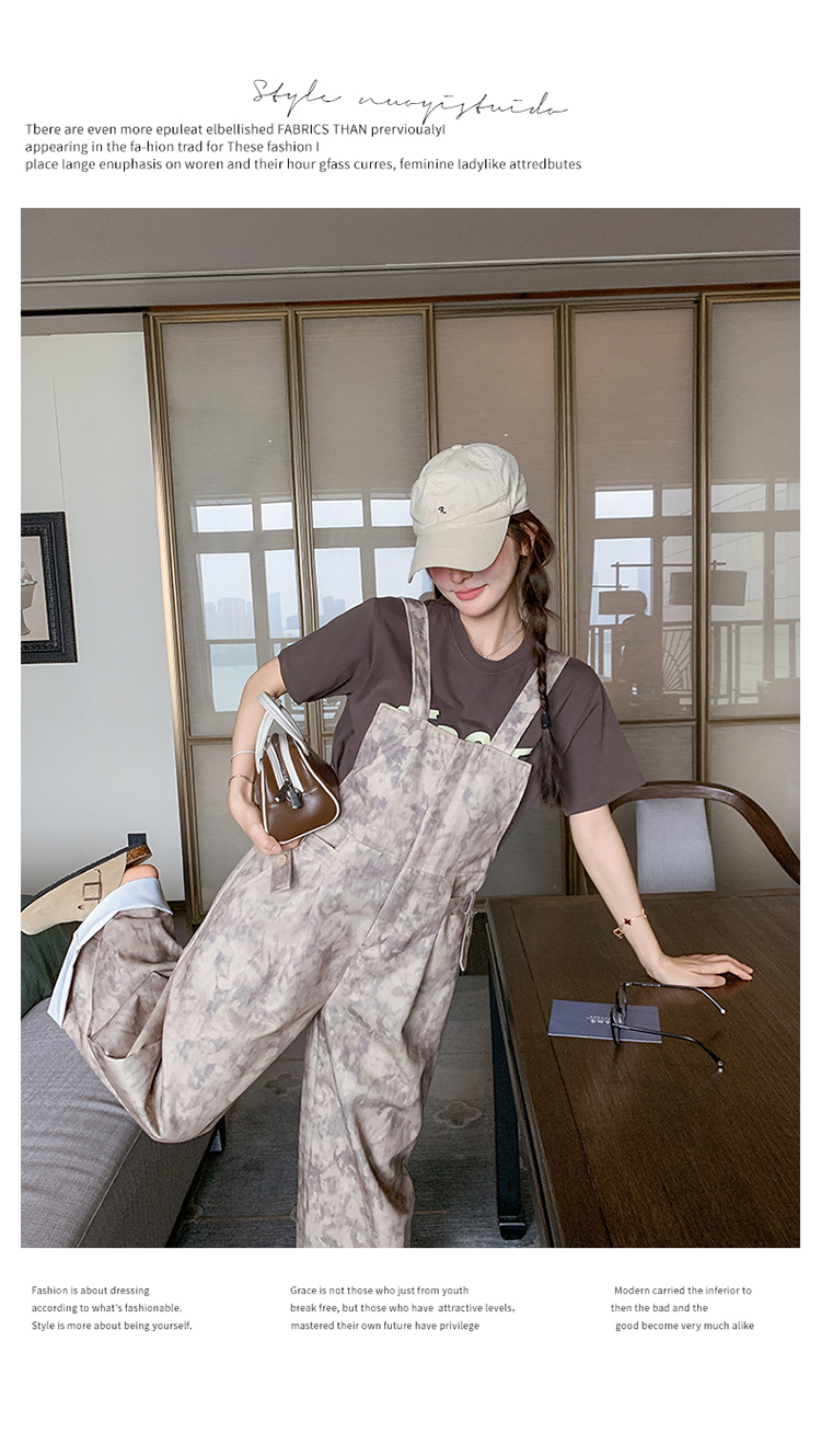 獨家訂製│韓系甜酷風紮染收腰闊腿吊帶褲(04A1091)