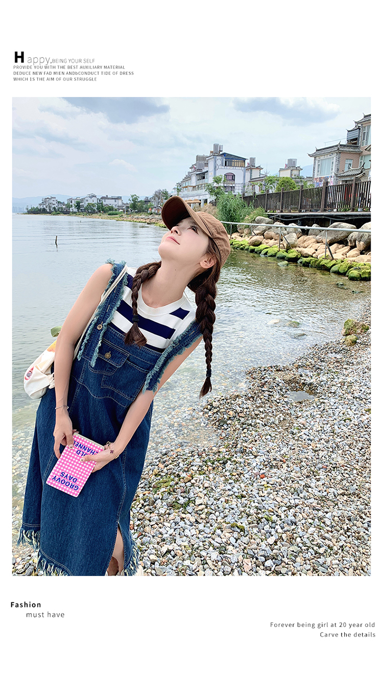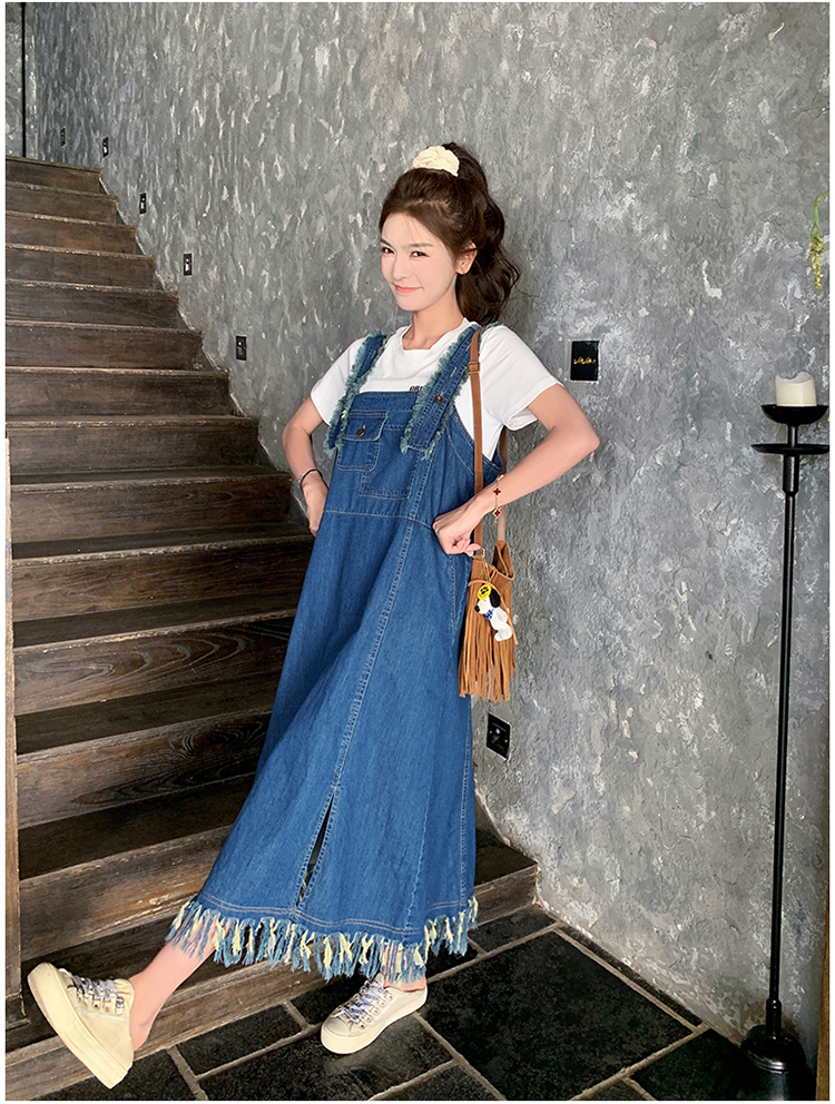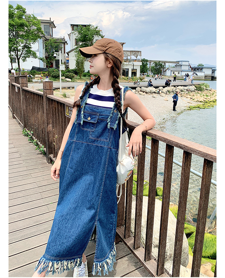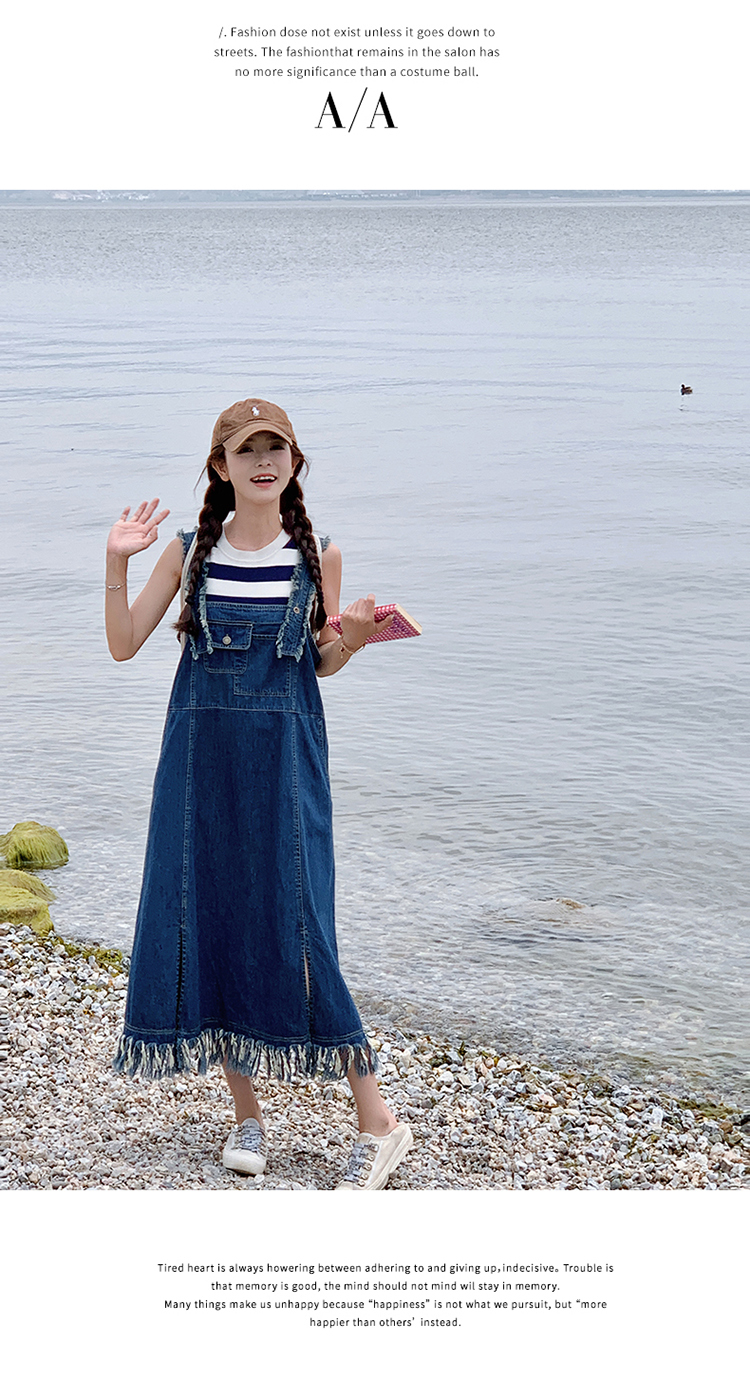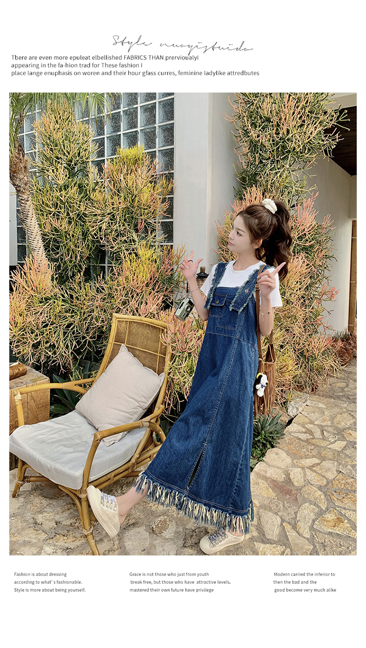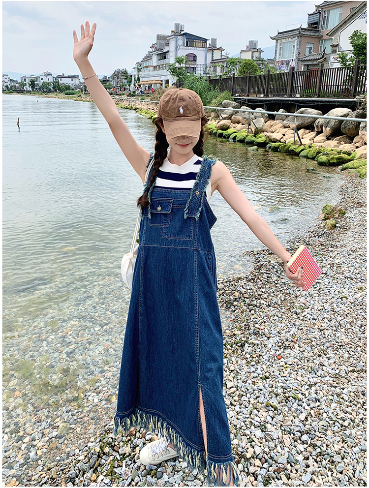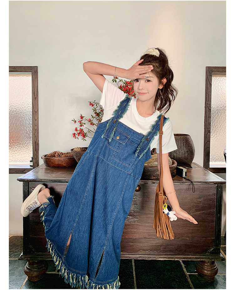 獨家訂製│韓系清甜感流蘇開叉牛仔吊帶裙(04A1092)