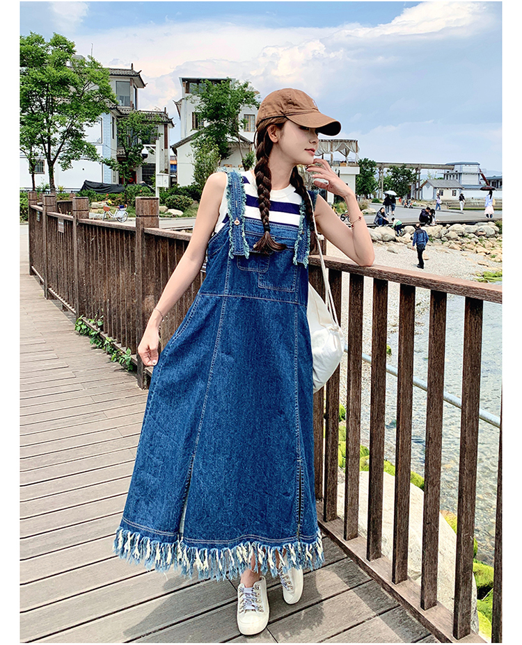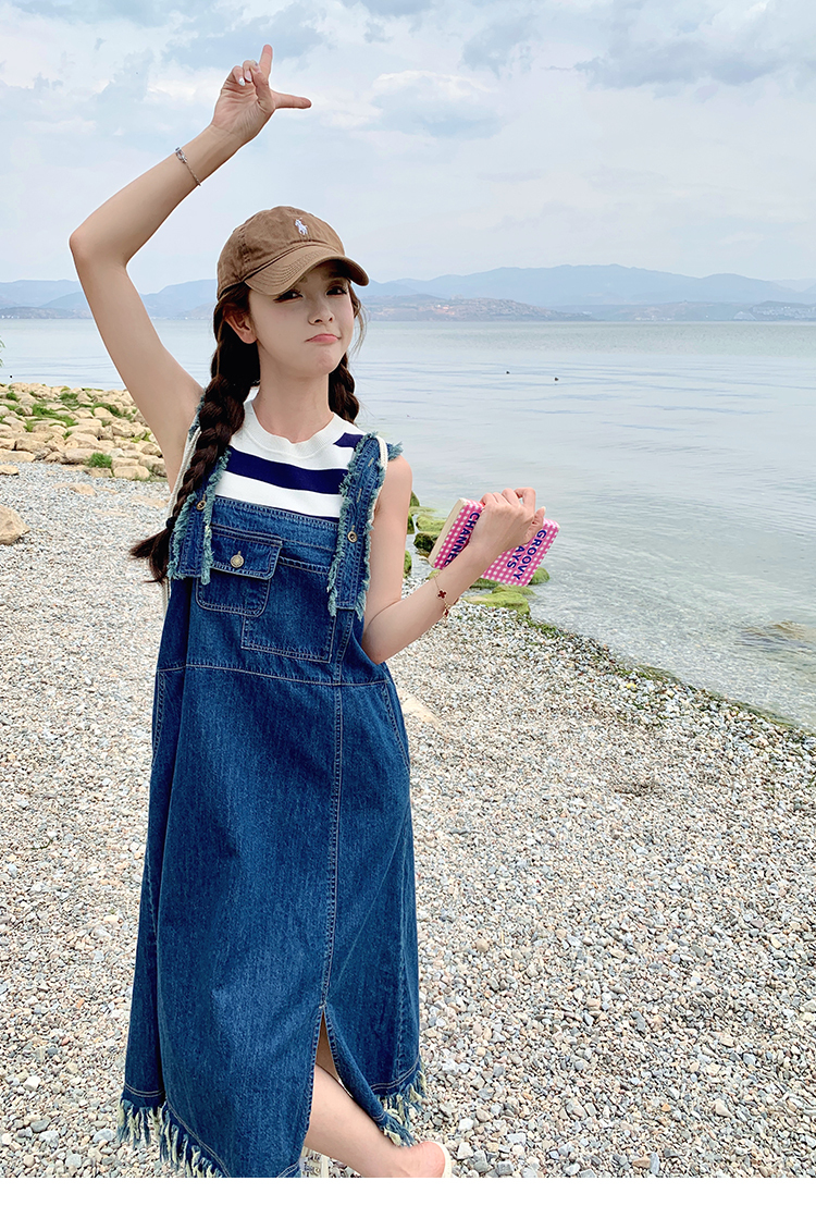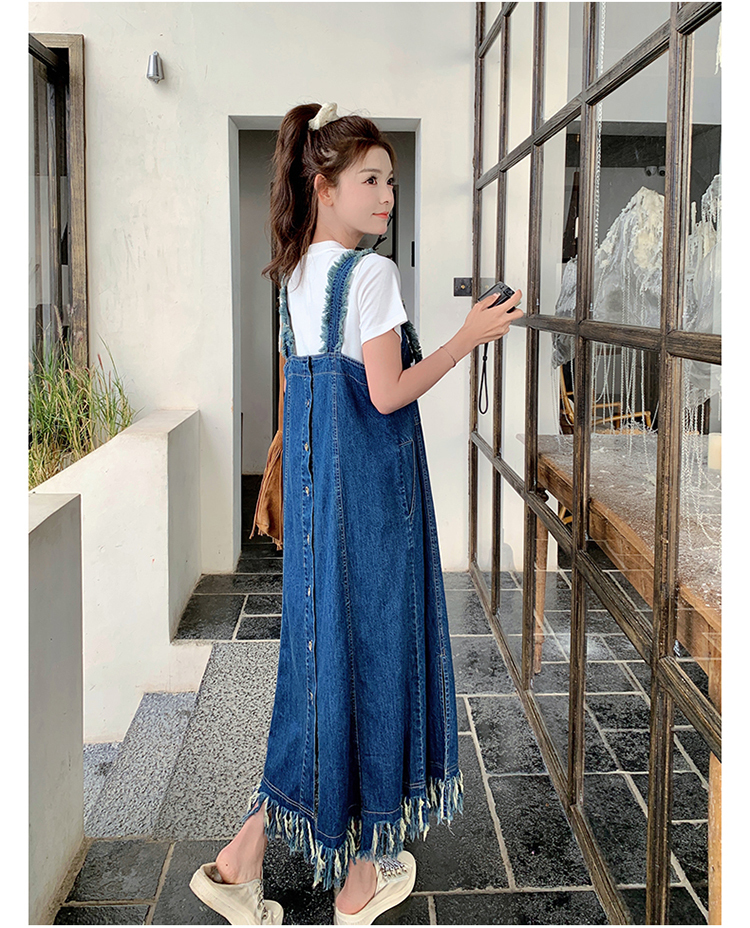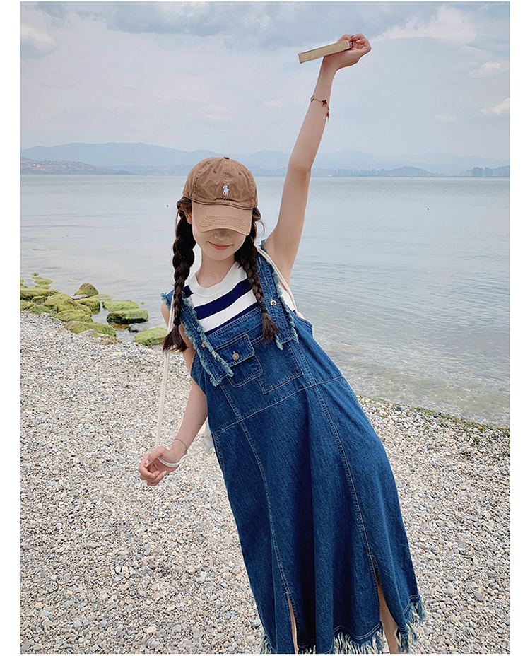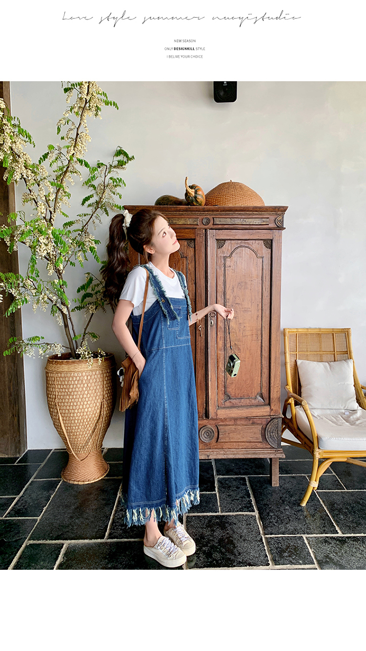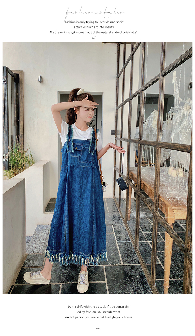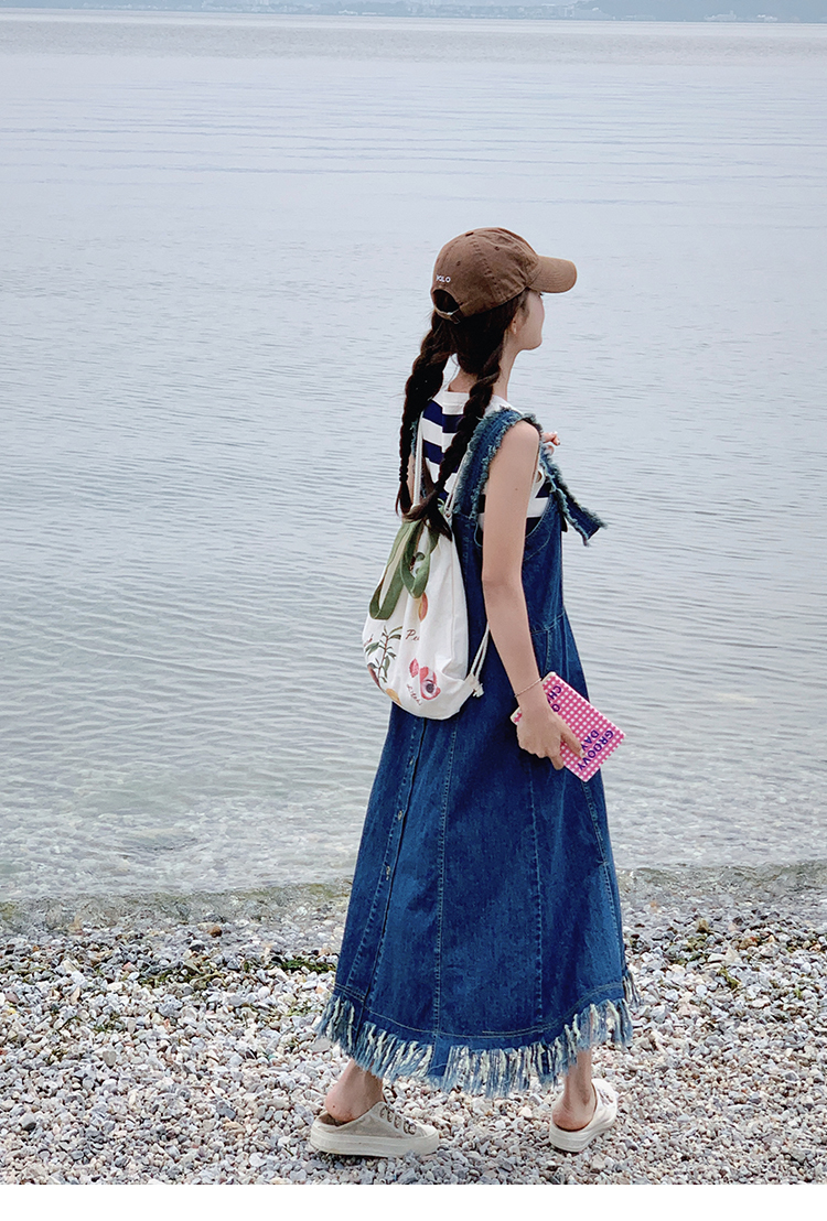 獨家訂製│韓系清甜感流蘇開叉牛仔吊帶裙(04A1092)