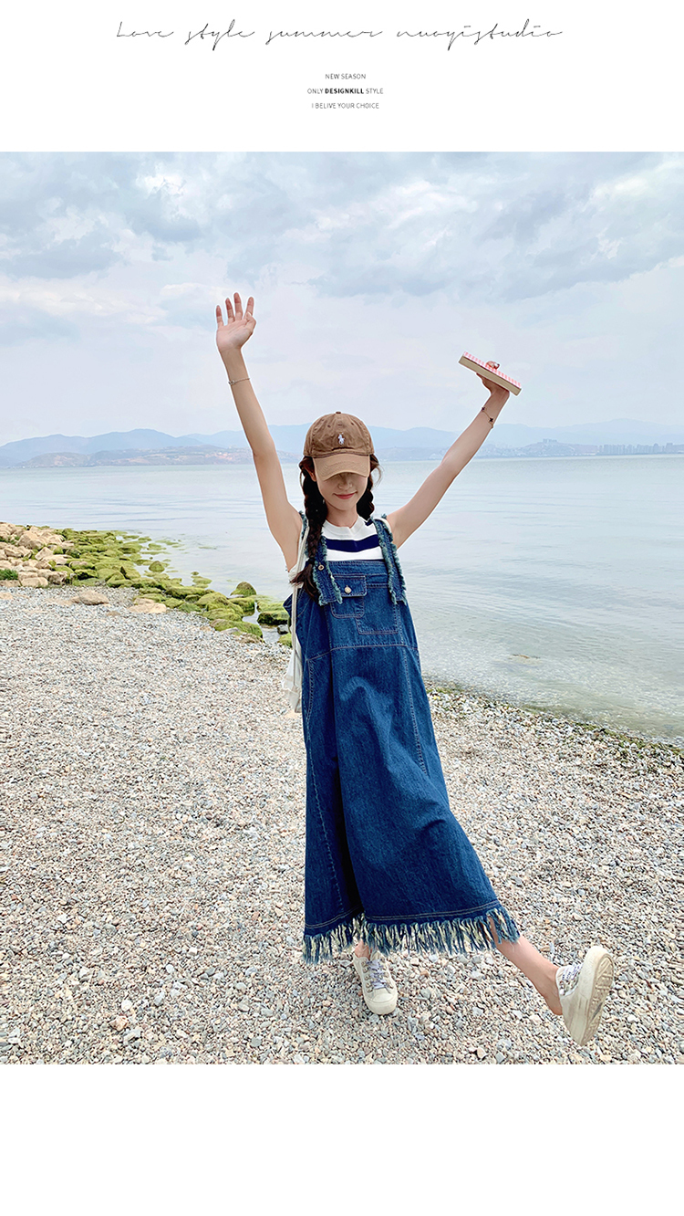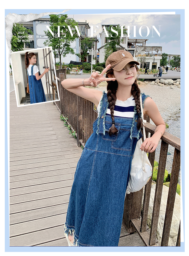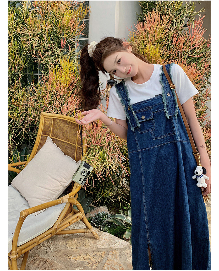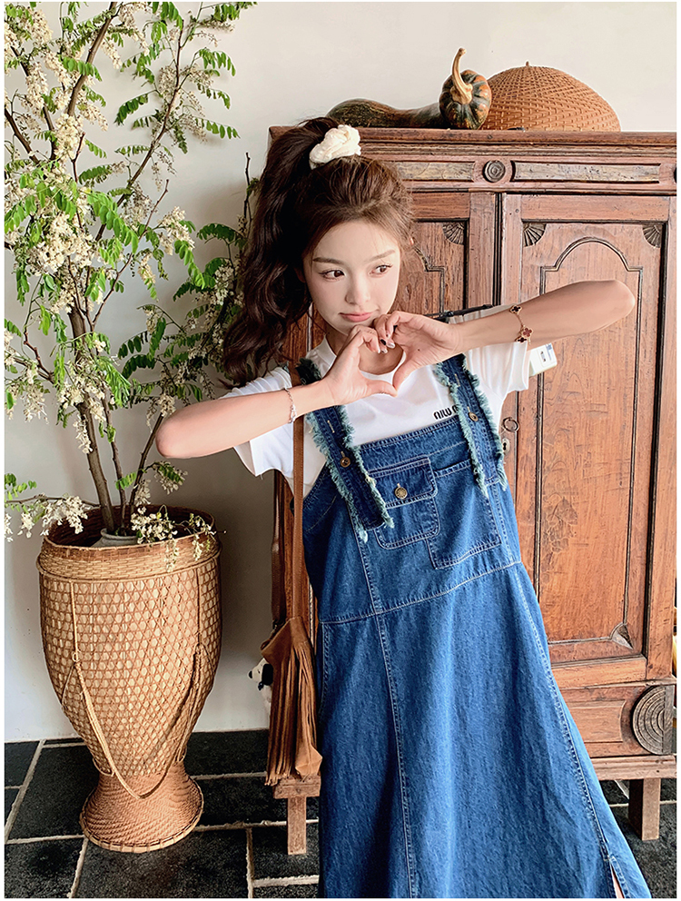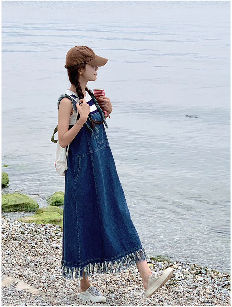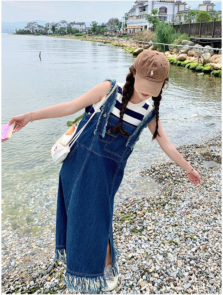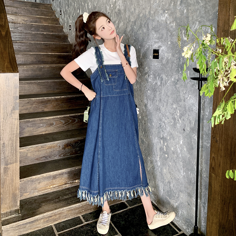 獨家訂製│韓系清甜感流蘇開叉牛仔吊帶裙(04A1092)