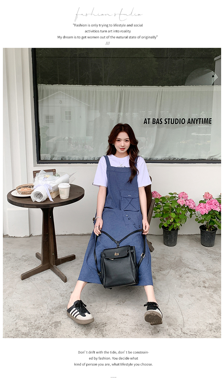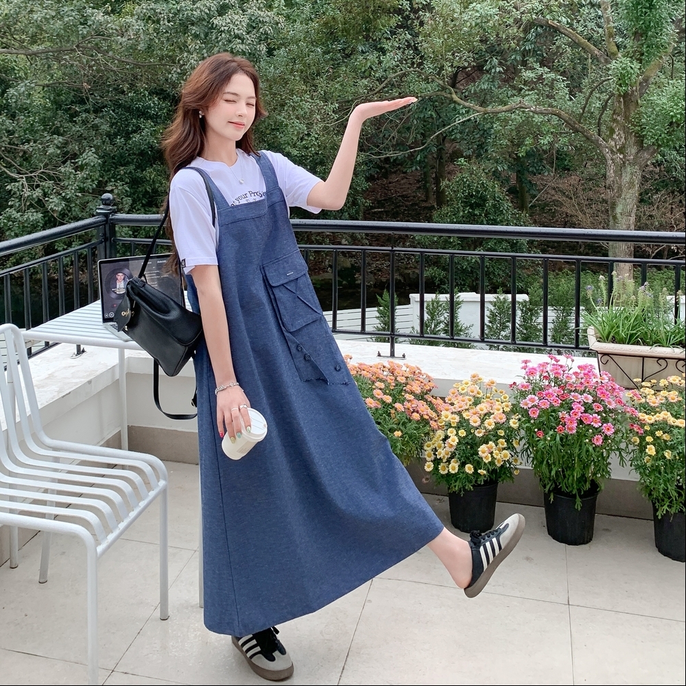 獨家訂製│韓系甜美感立體口袋造型吊帶裙(04A1107)