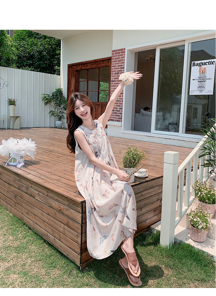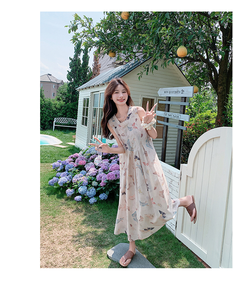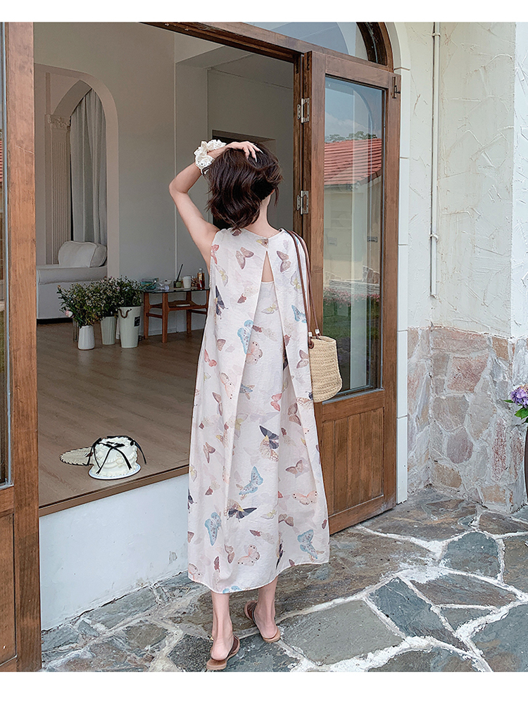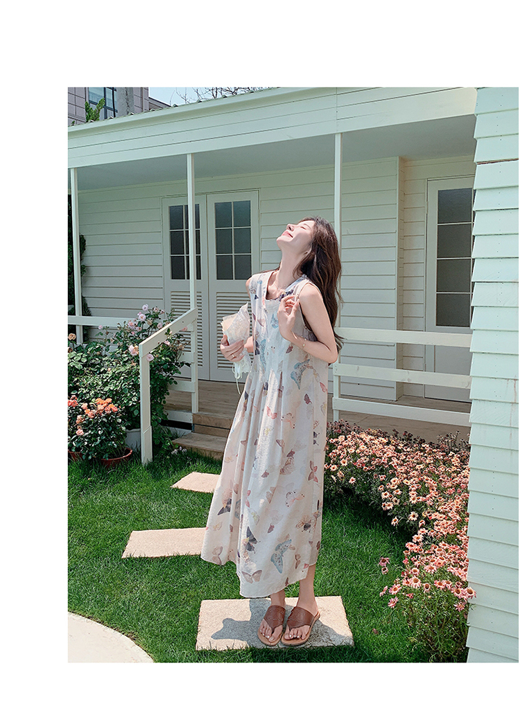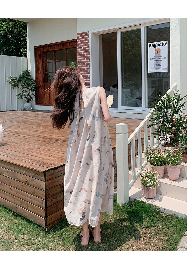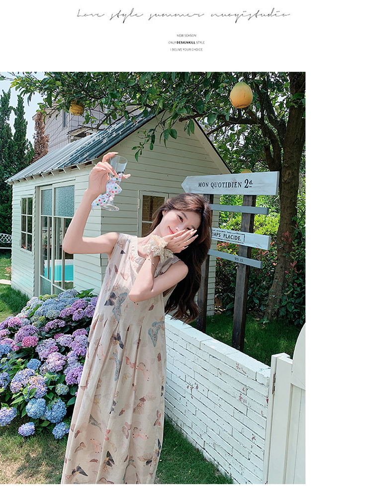 獨家訂製│韓系甜美感後背縷空造型印花連衣裙(04A1111)