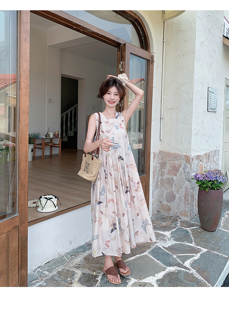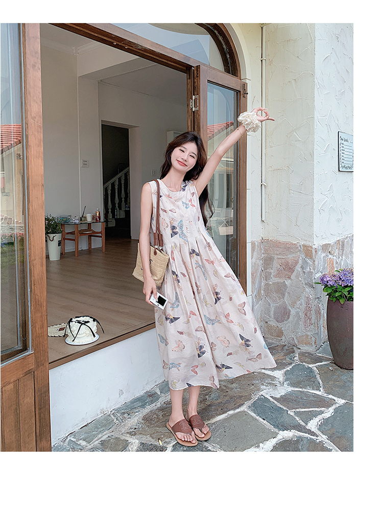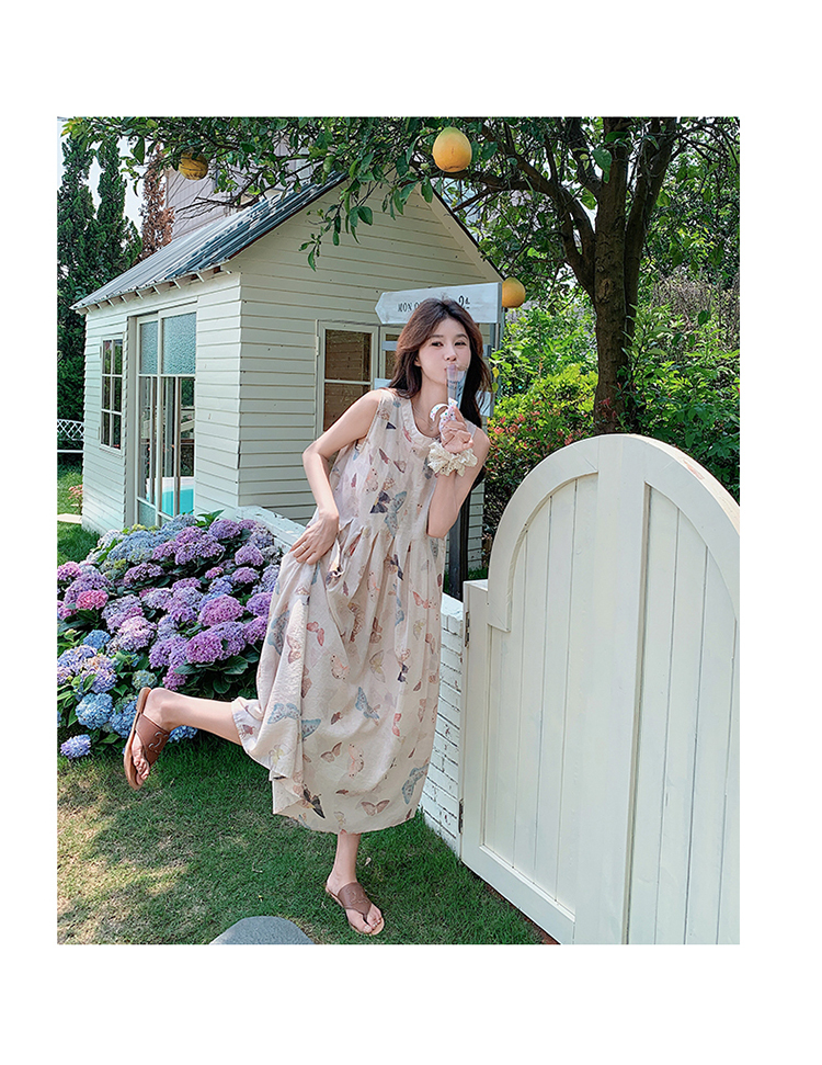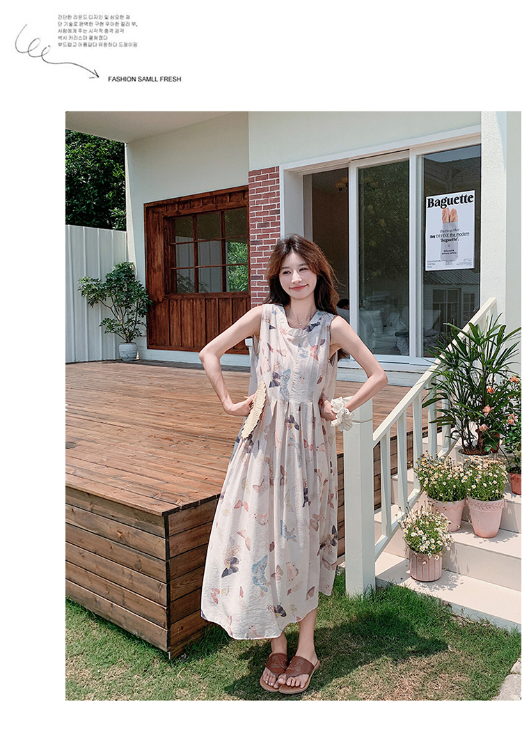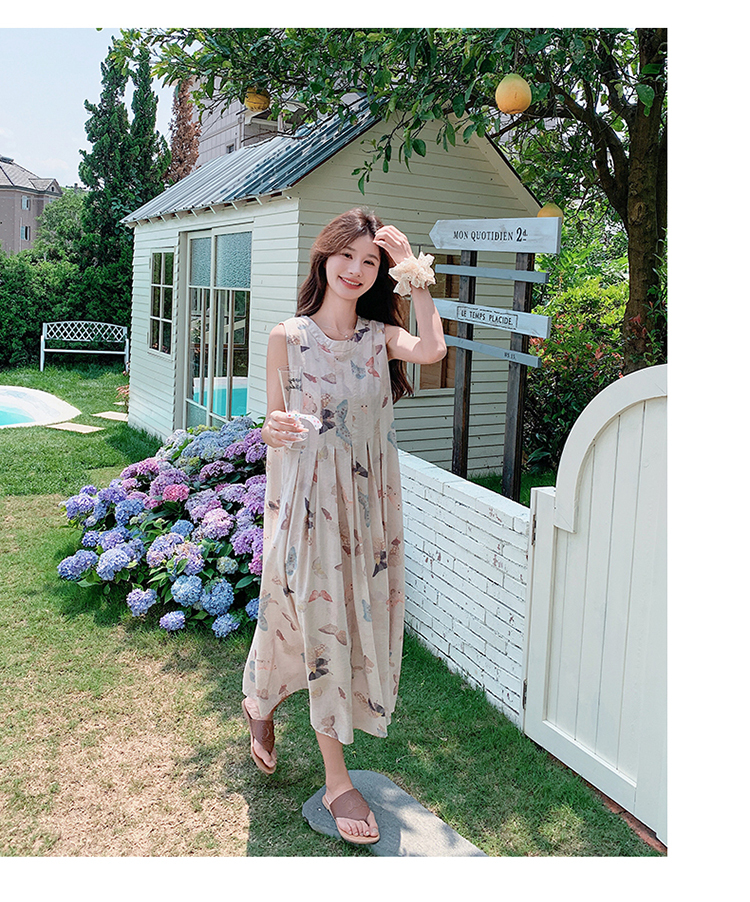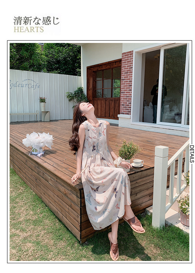 獨家訂製│韓系甜美感後背縷空造型印花連衣裙(04A1111)