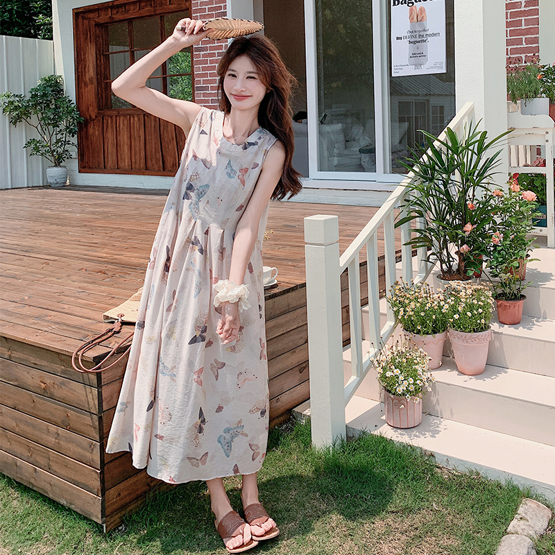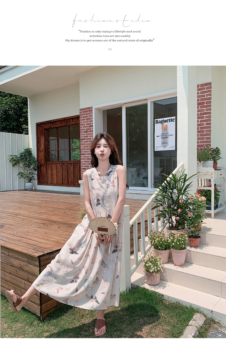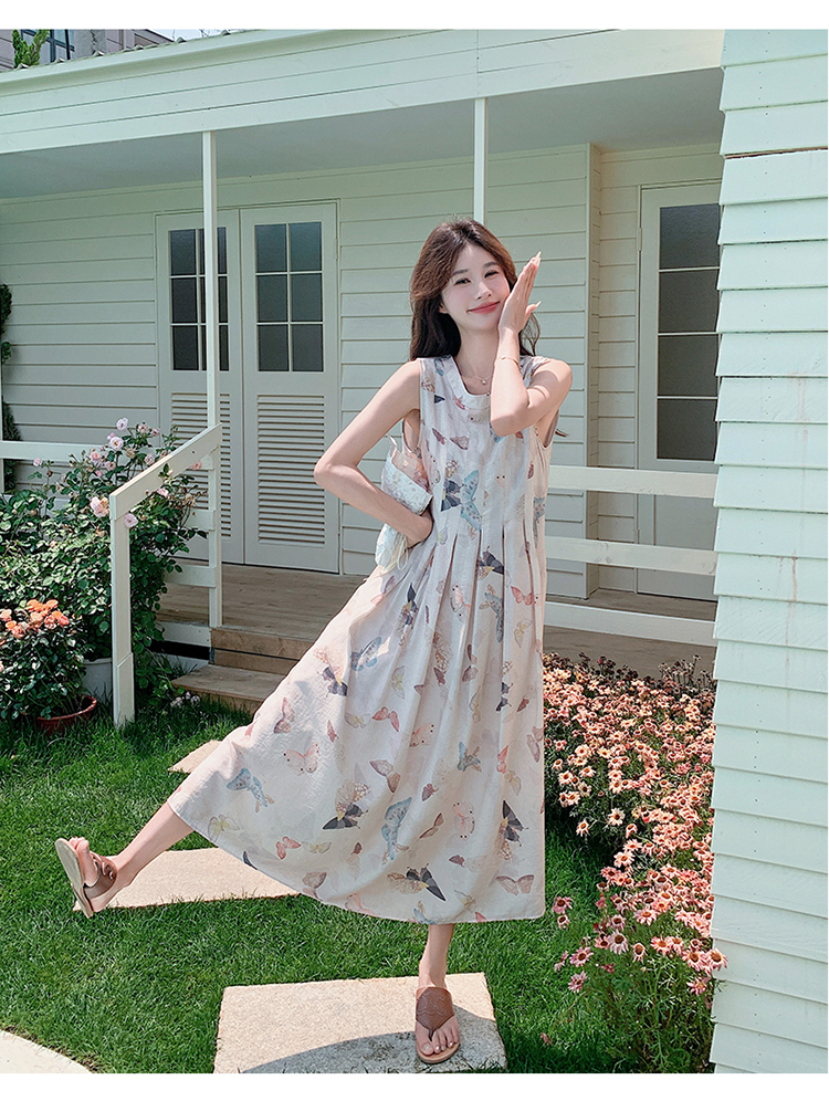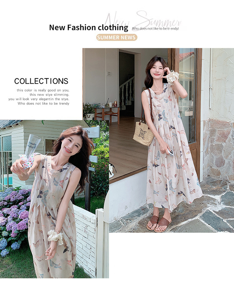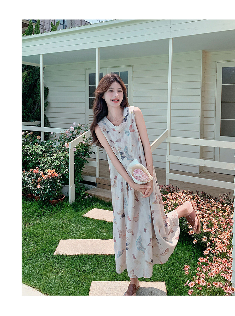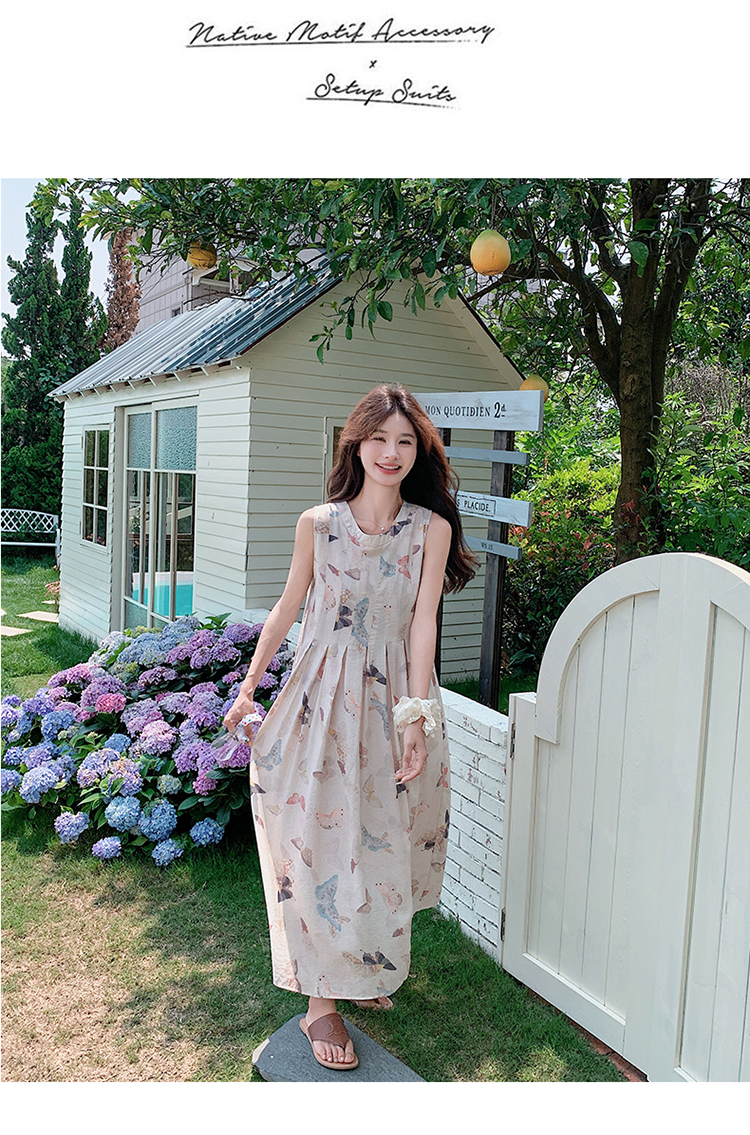 獨家訂製│韓系甜美感後背縷空造型印花連衣裙(04A1111)