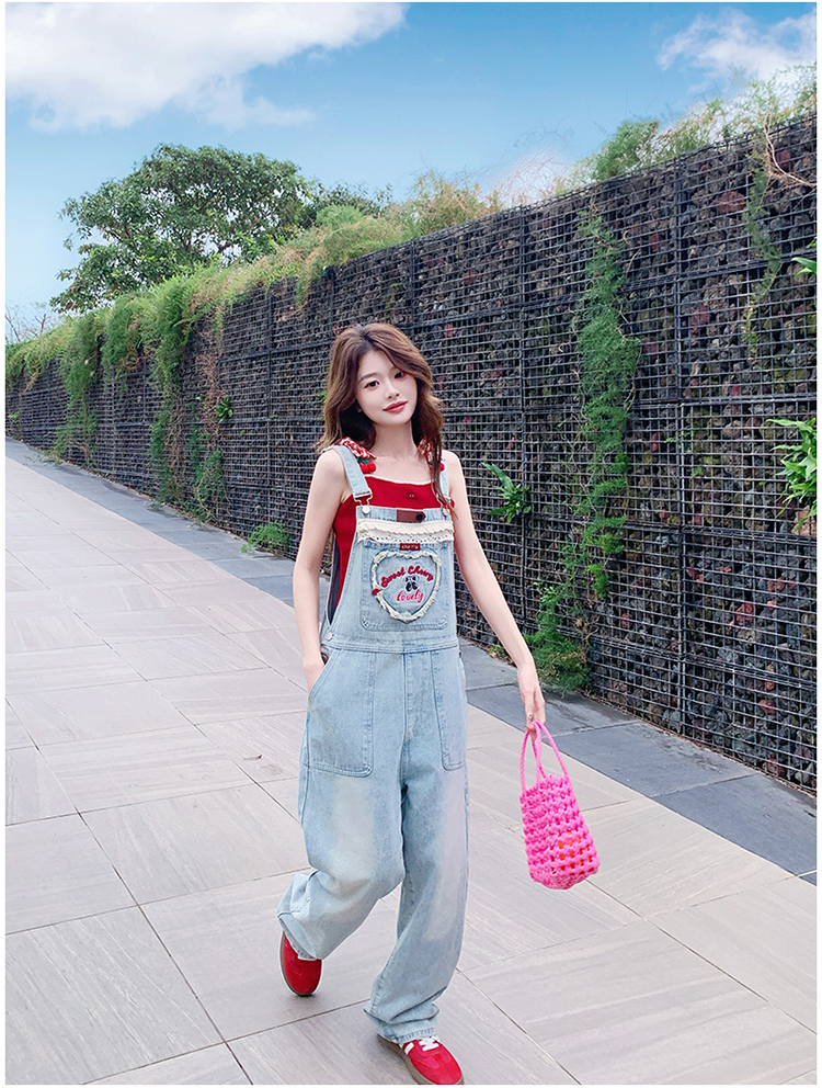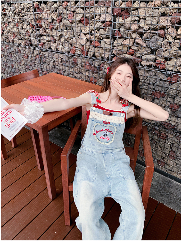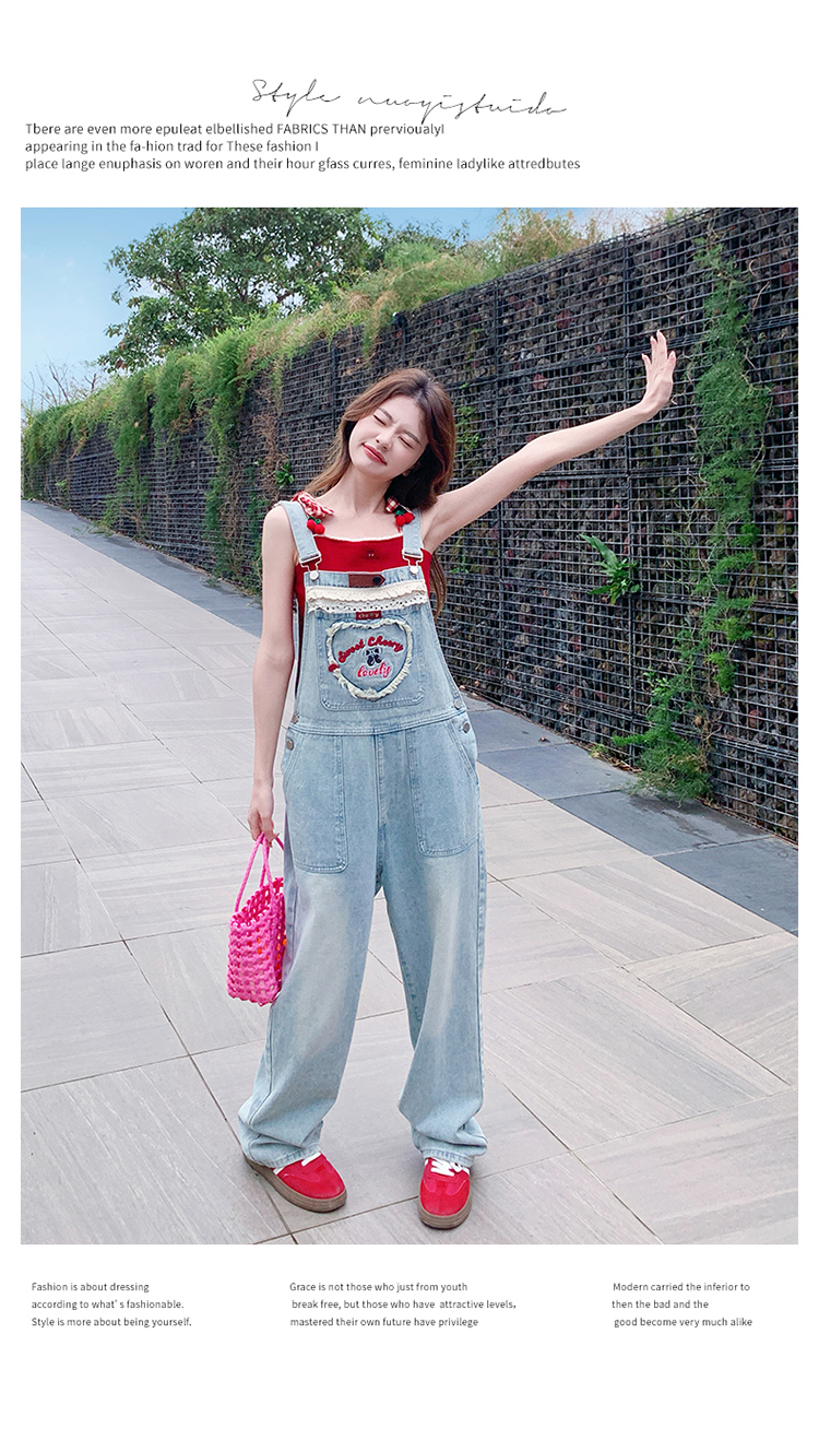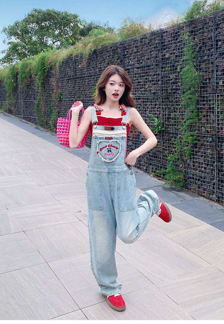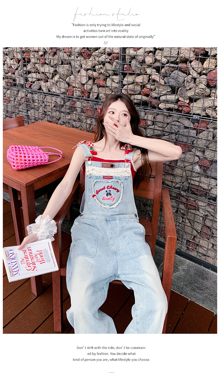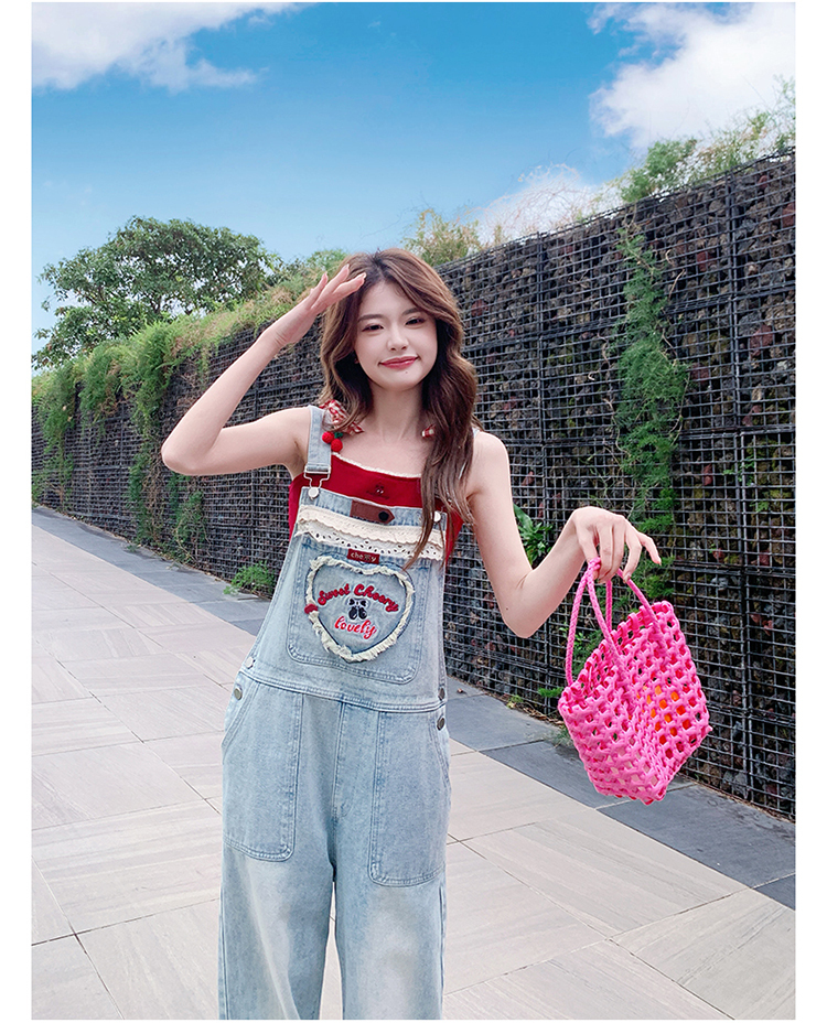 獨家訂製│韓系甜酷風花邊刺繡造型吊帶褲(04A1112)