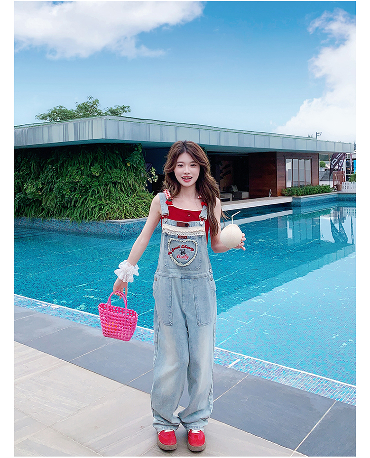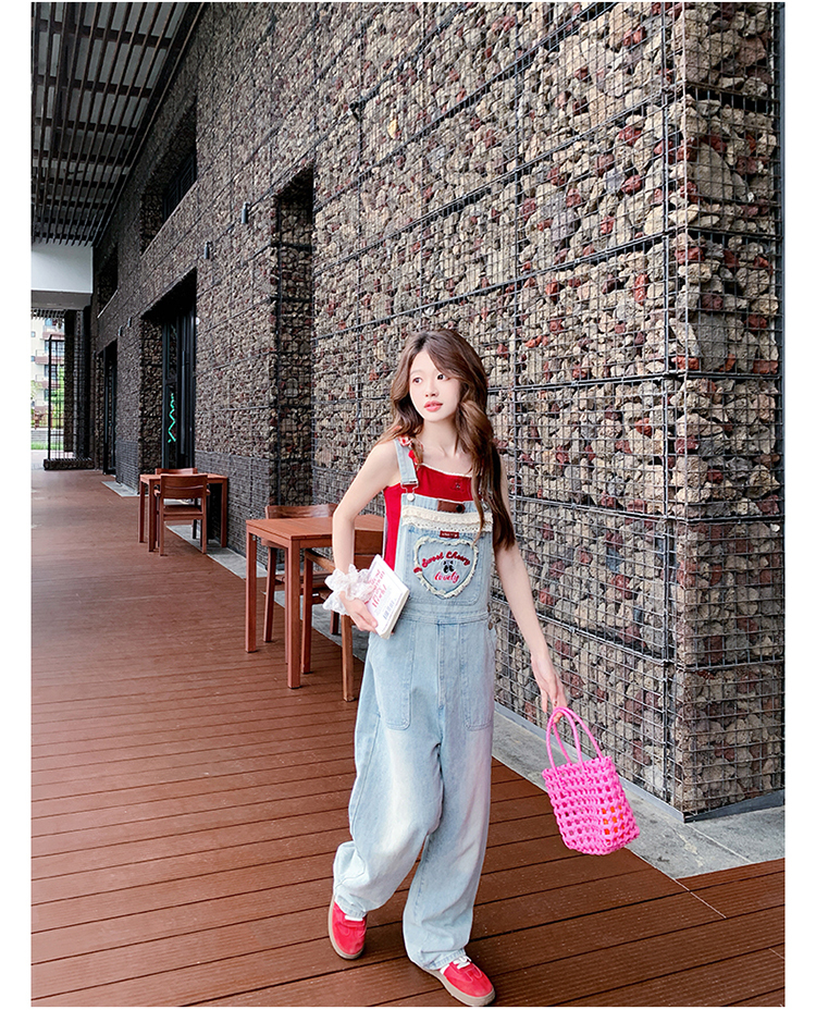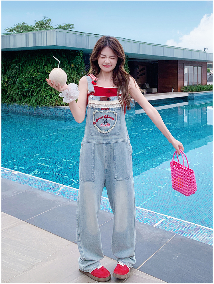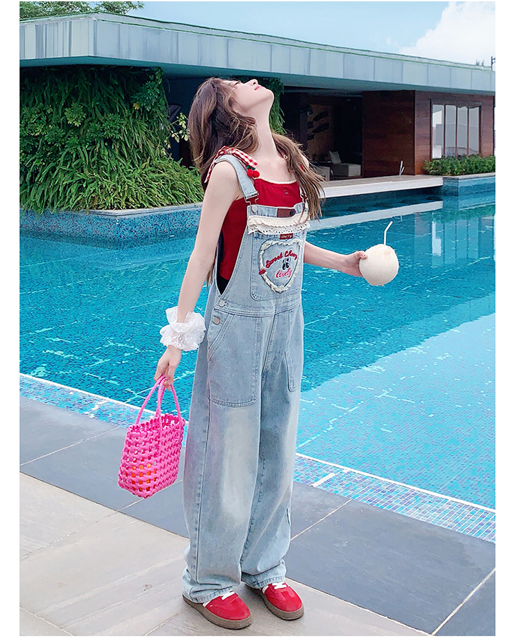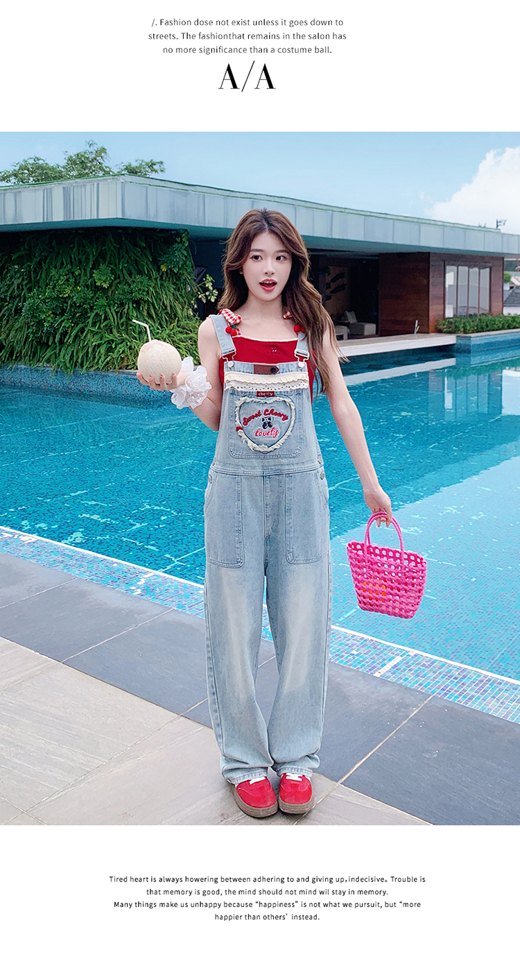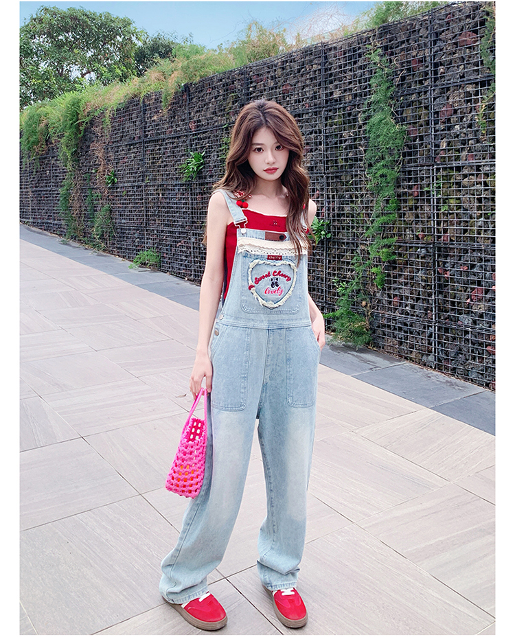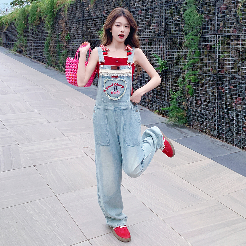 獨家訂製│韓系甜酷風花邊刺繡造型吊帶褲(04A1112)