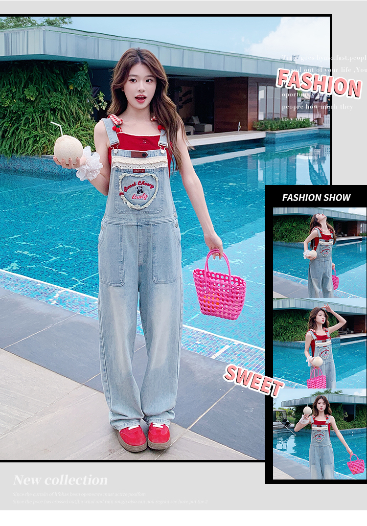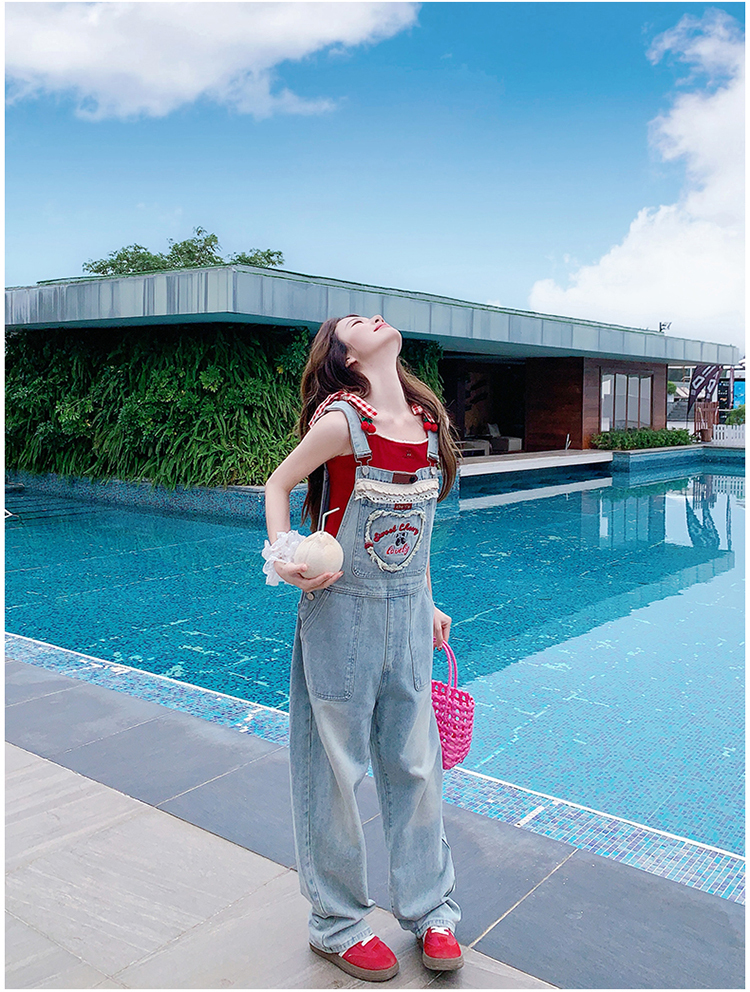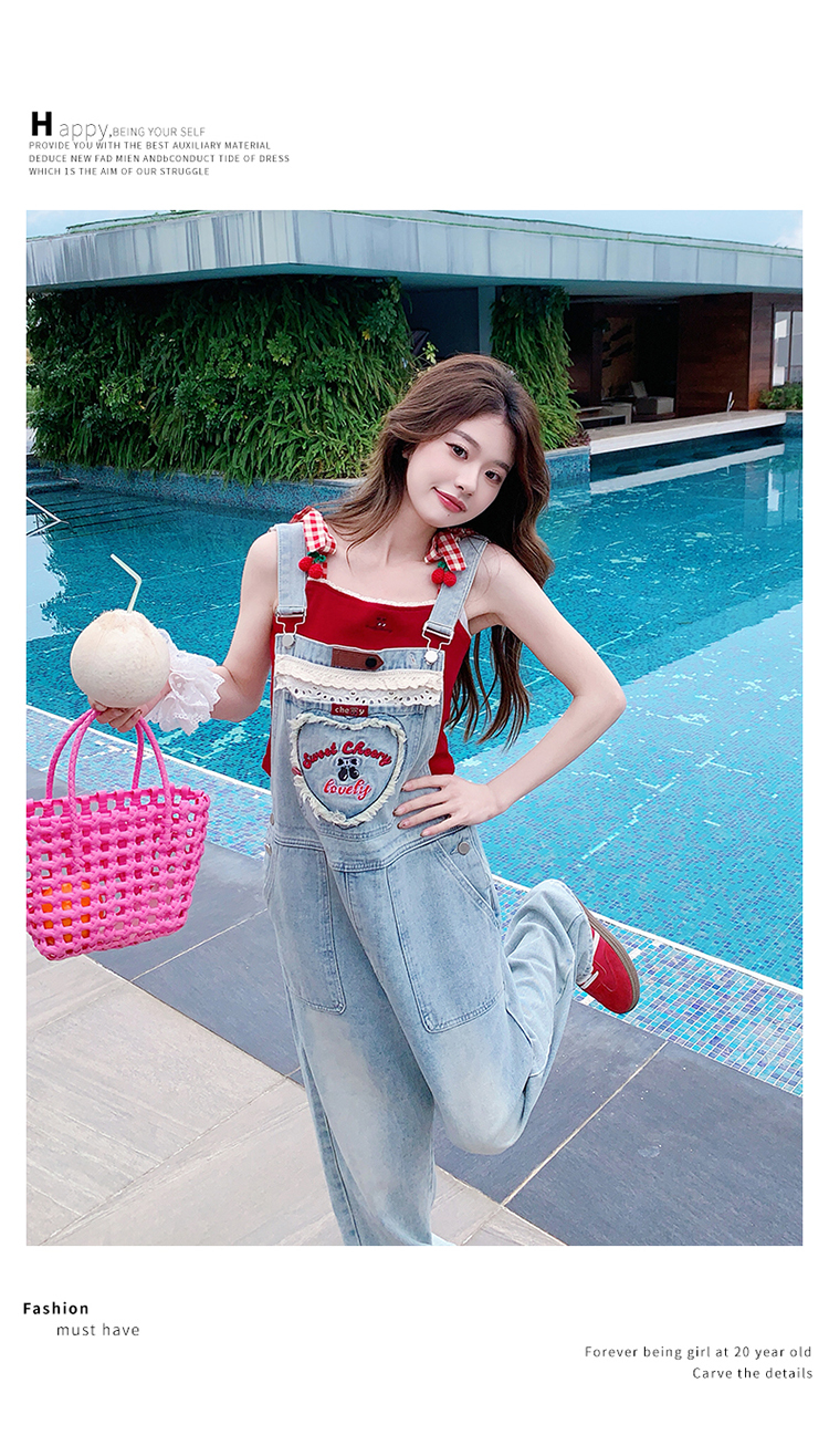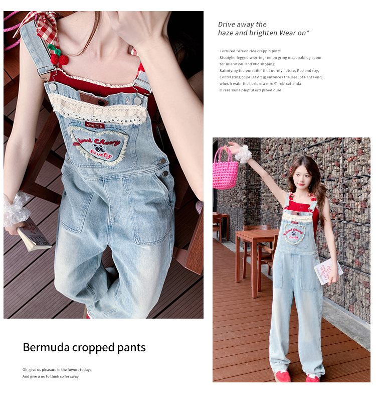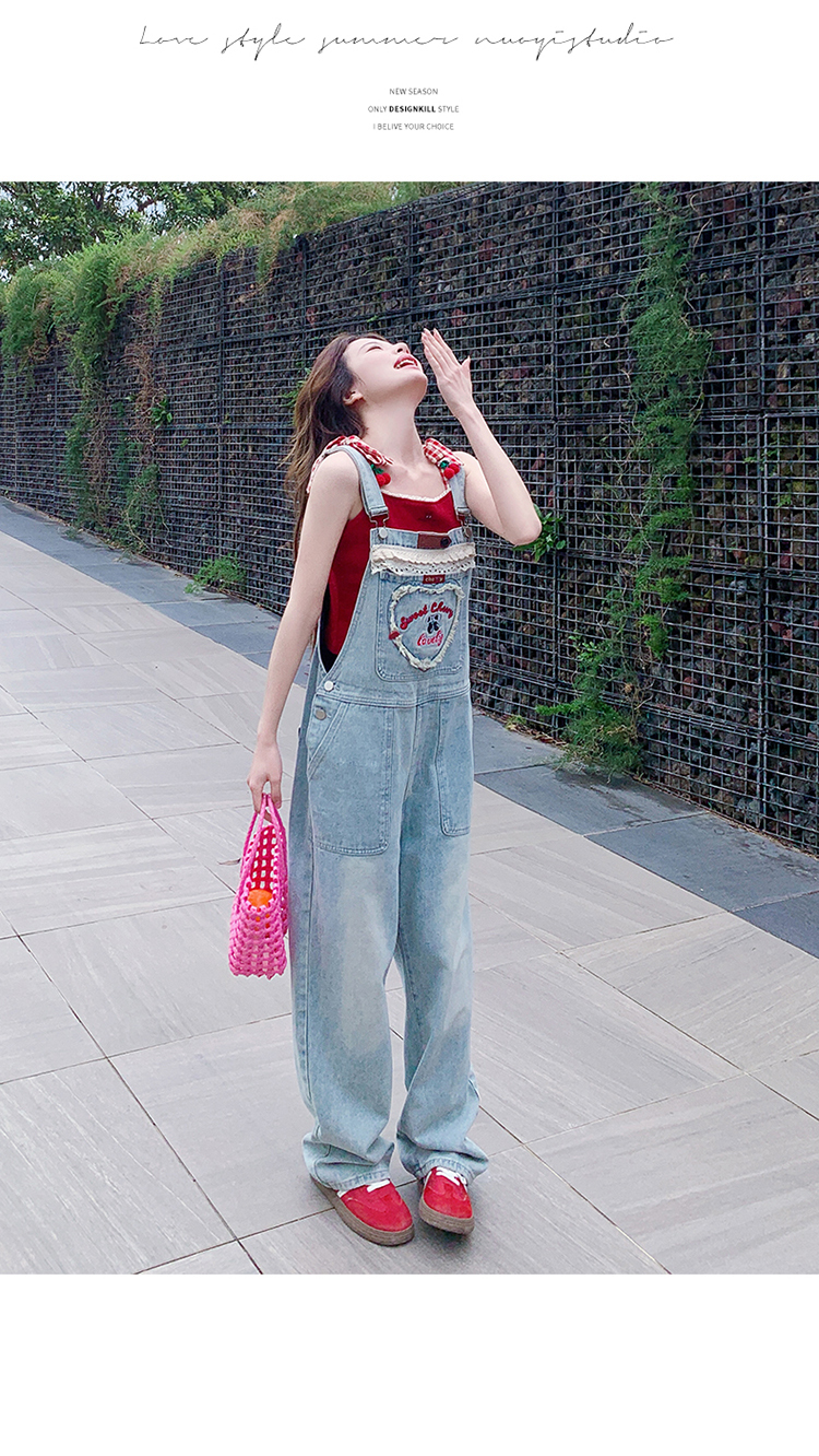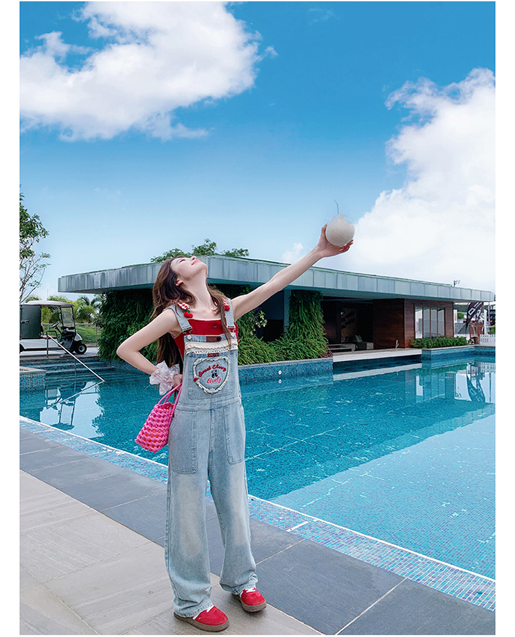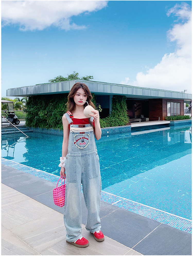 獨家訂製│韓系甜酷風花邊刺繡造型吊帶褲(04A1112)