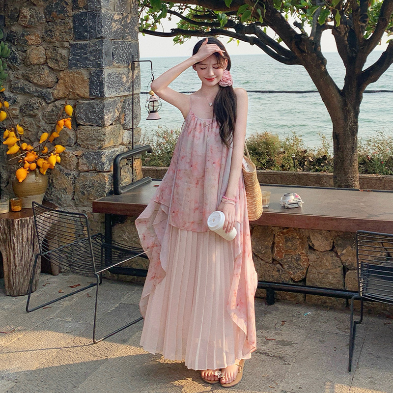 獨家訂製│韓系甜姐兒不規則造型拼接吊帶裙(04A1127)