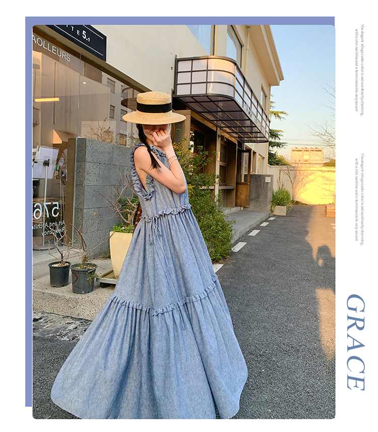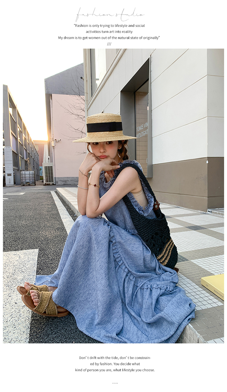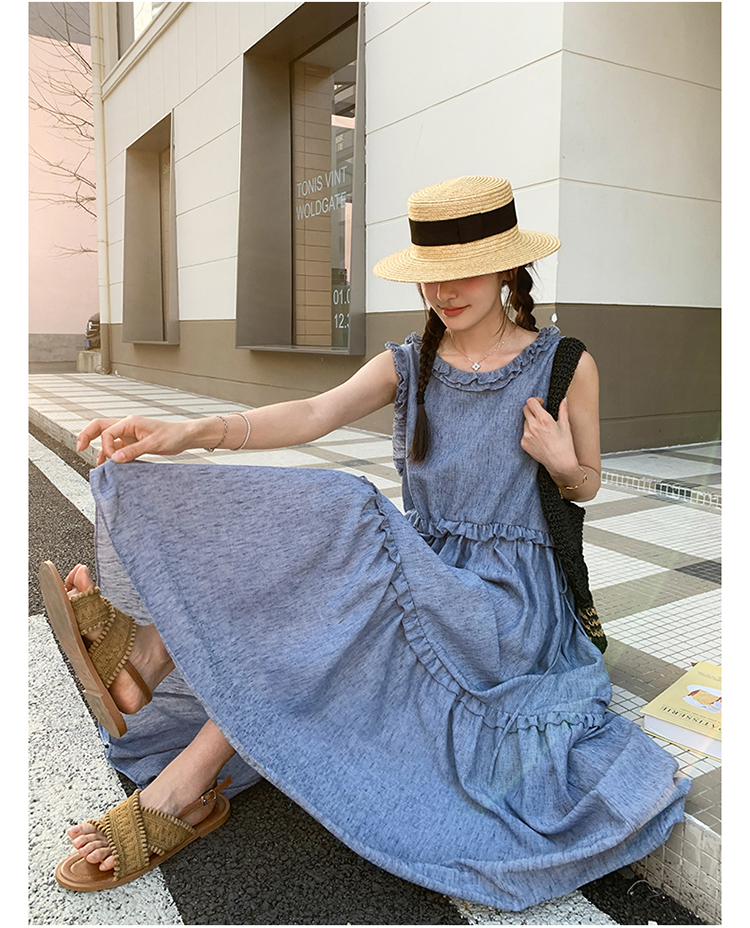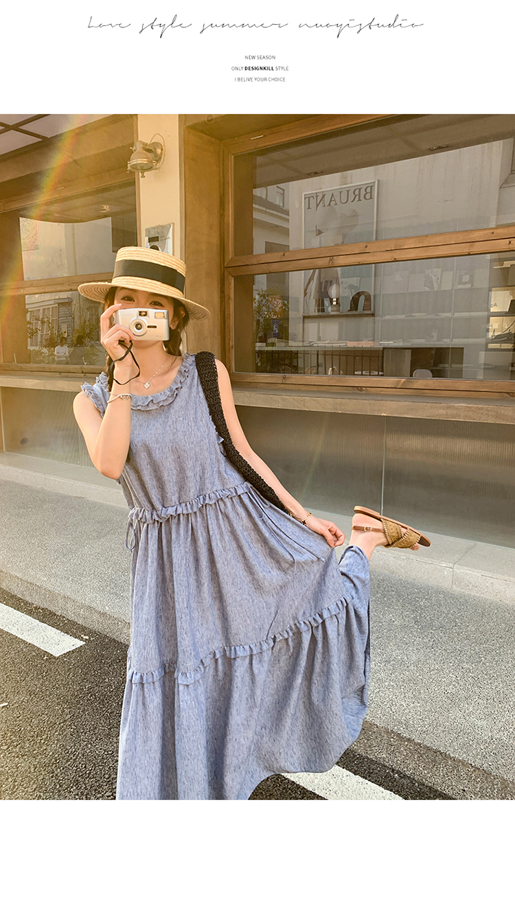 獨家訂製│韓系氣質感木耳邊造型收腰連衣裙(04A1134)