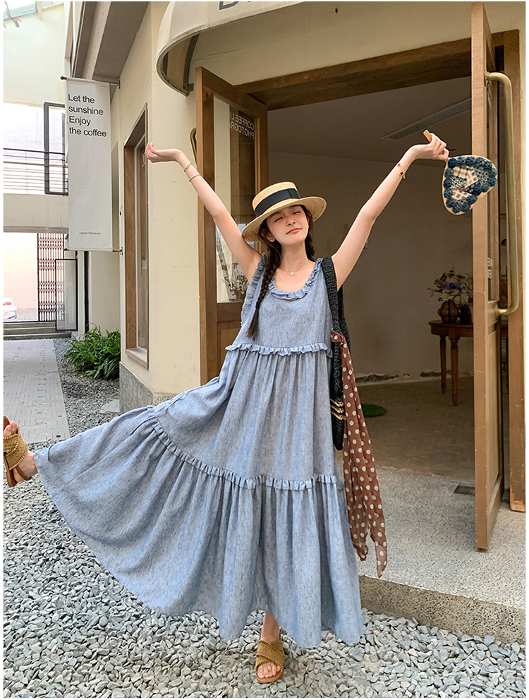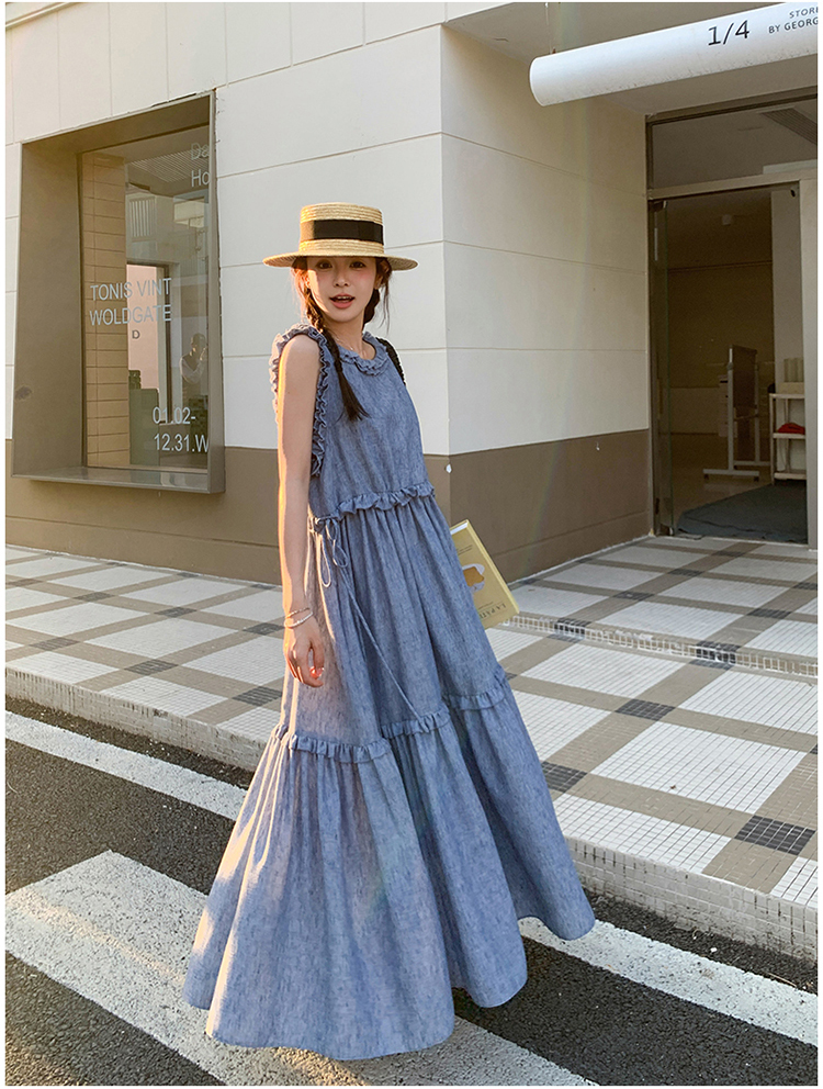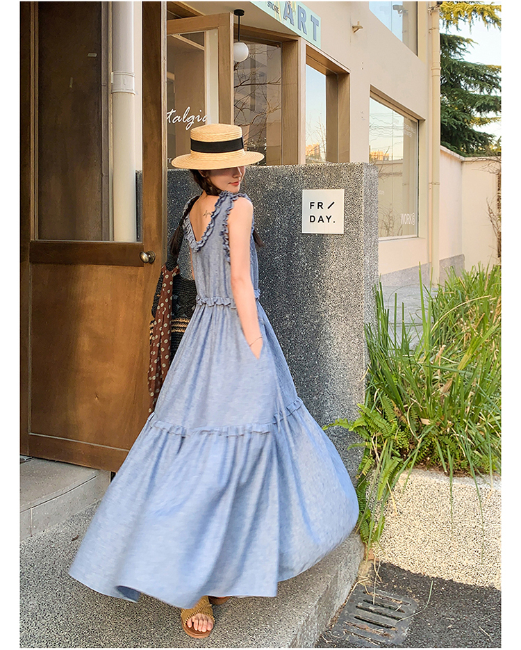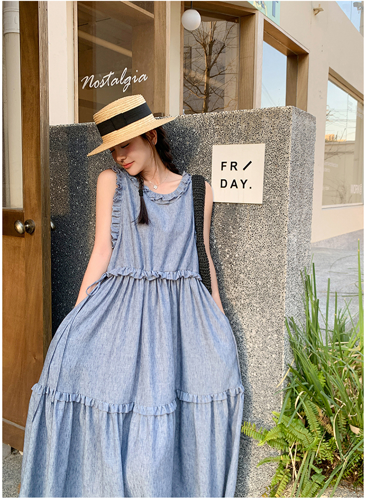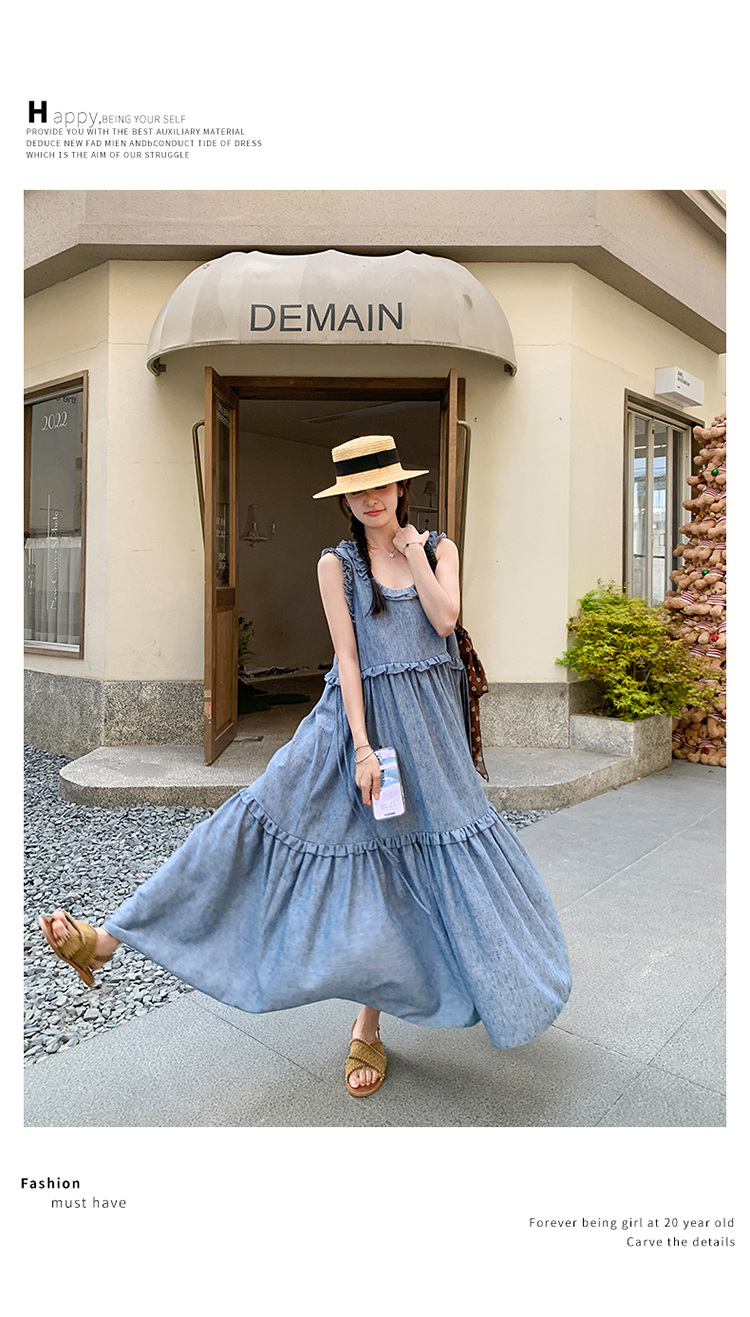 獨家訂製│韓系氣質感木耳邊造型收腰連衣裙(04A1134)