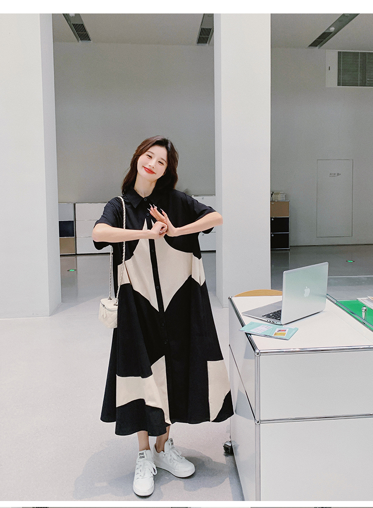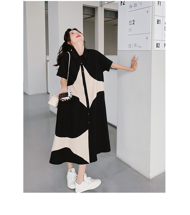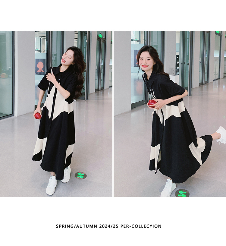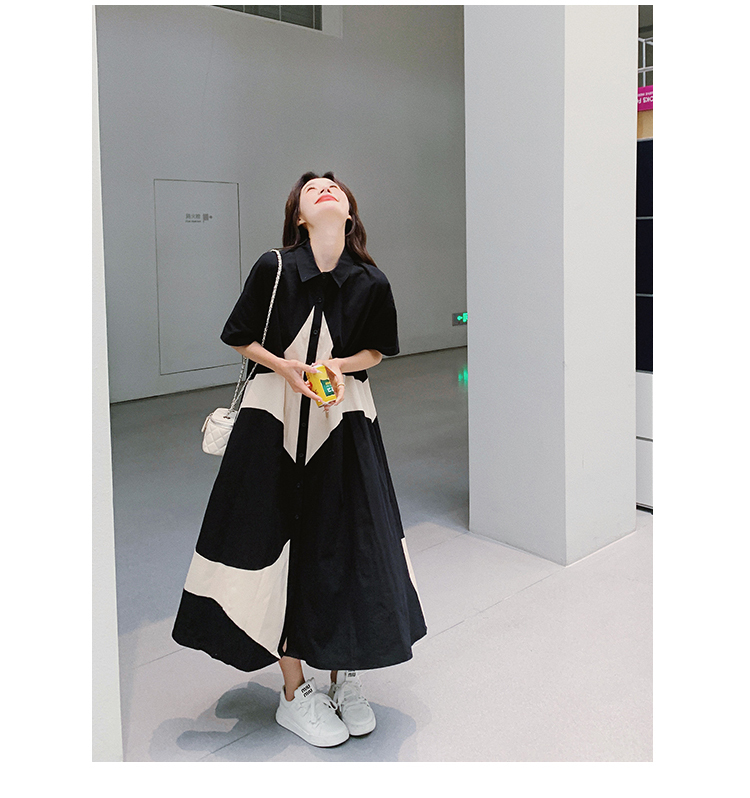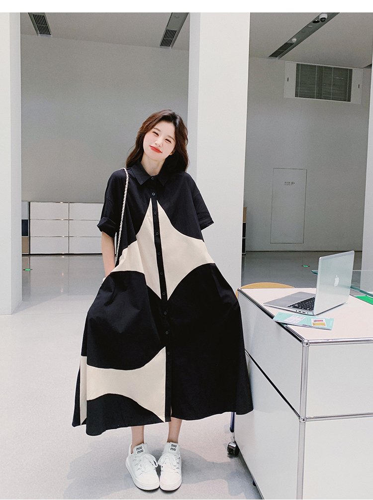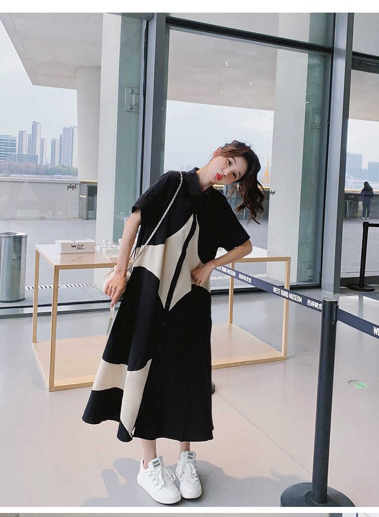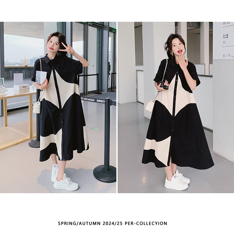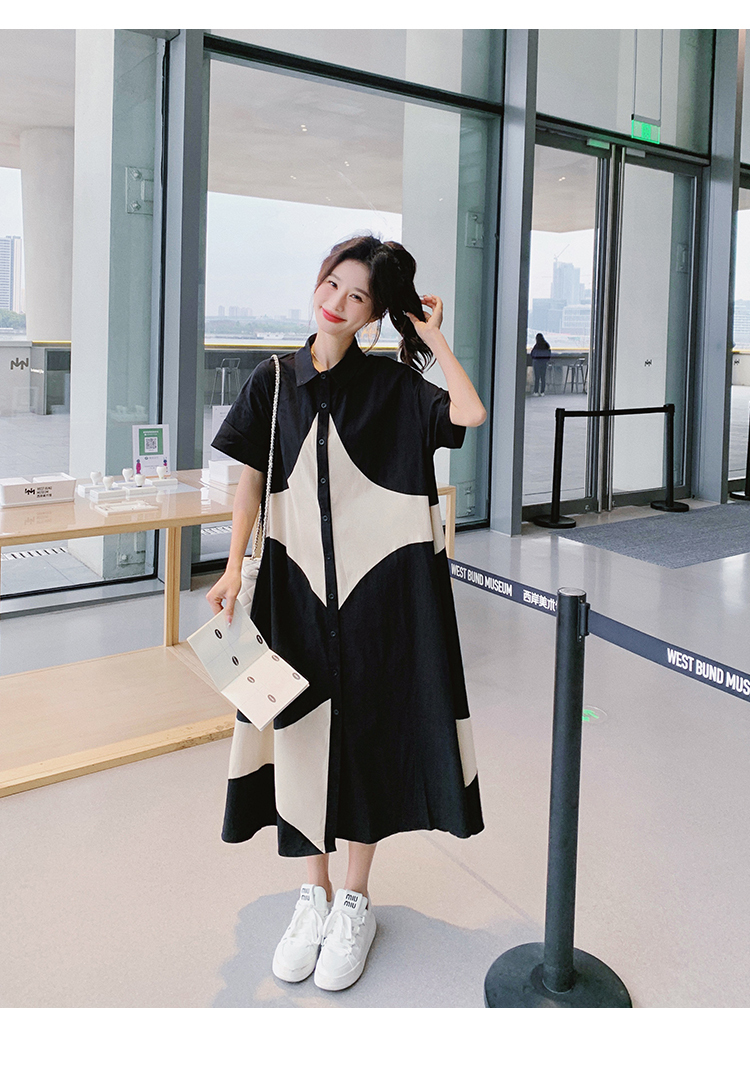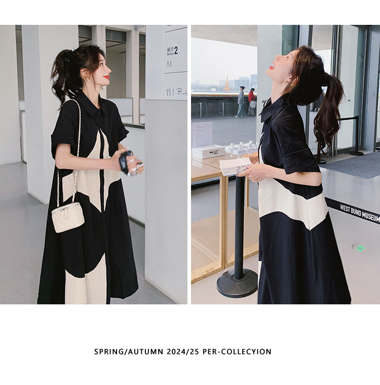 獨家訂製│韓系小清新撞色襯衫式連衣裙(04A1159)