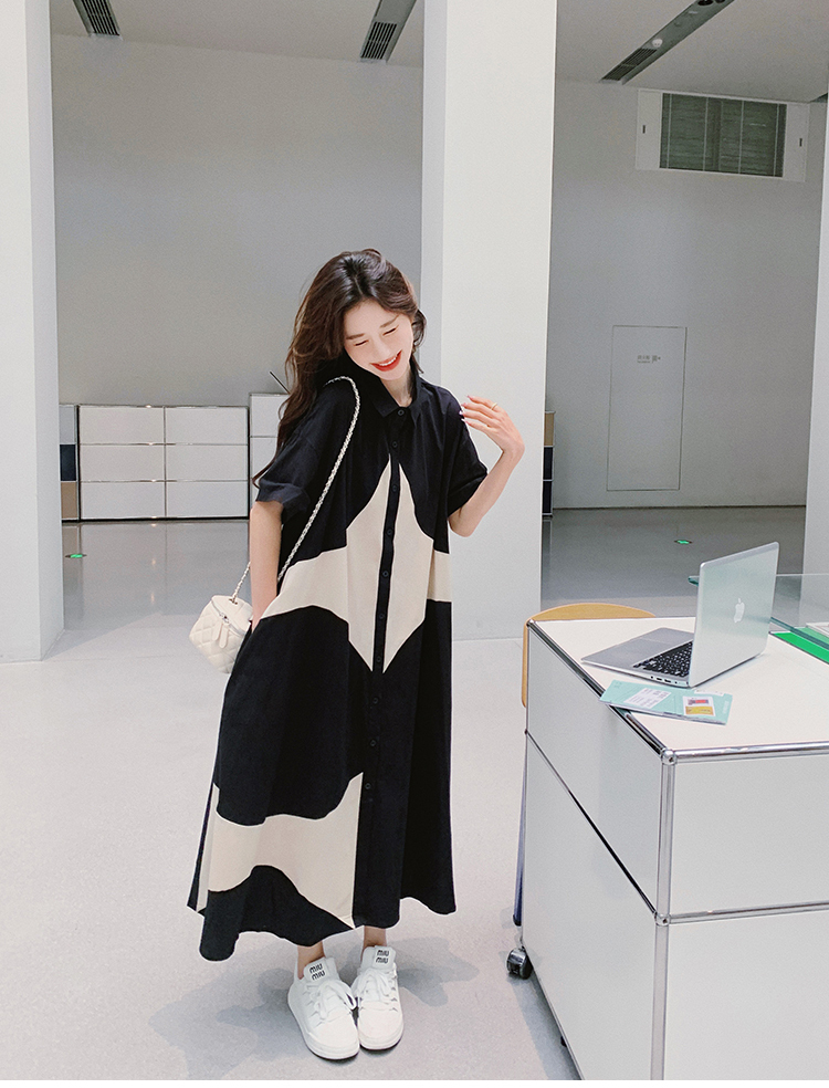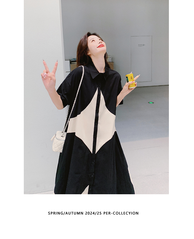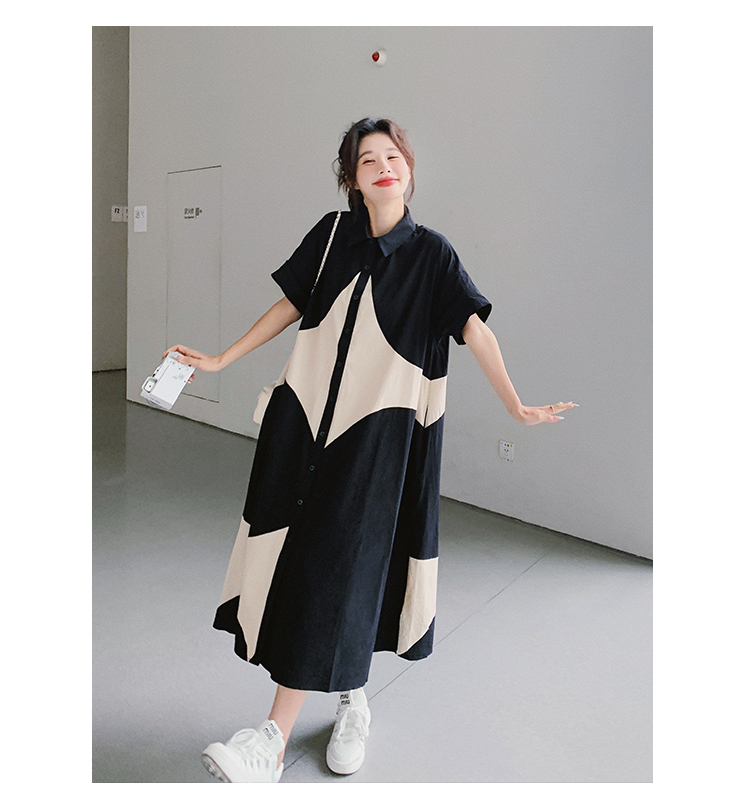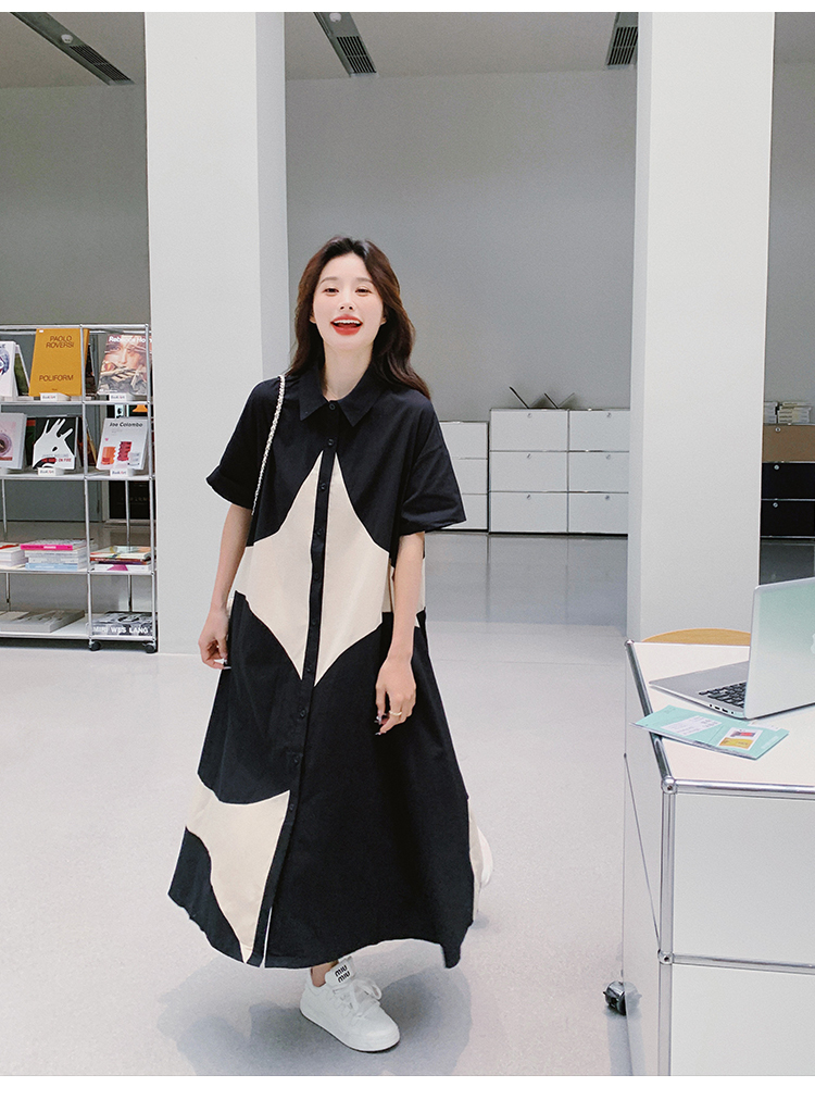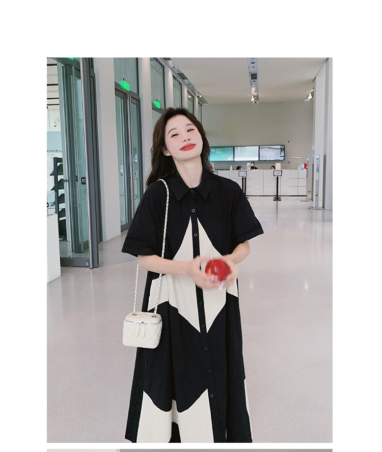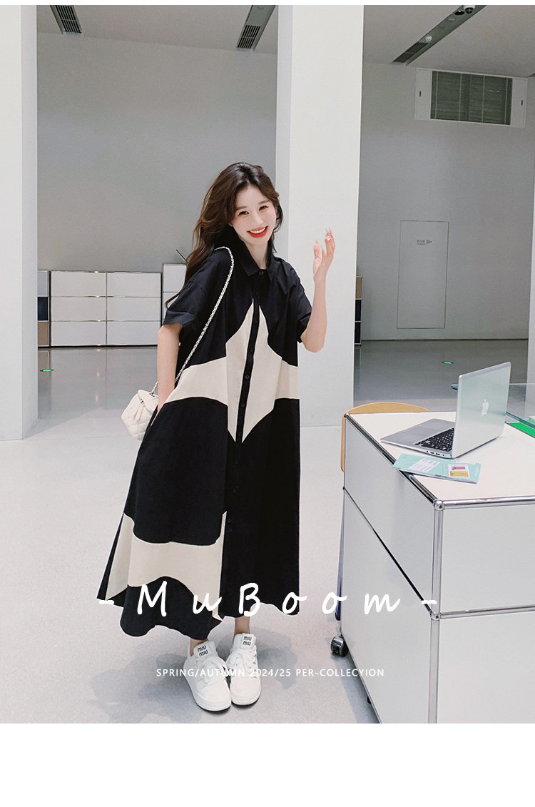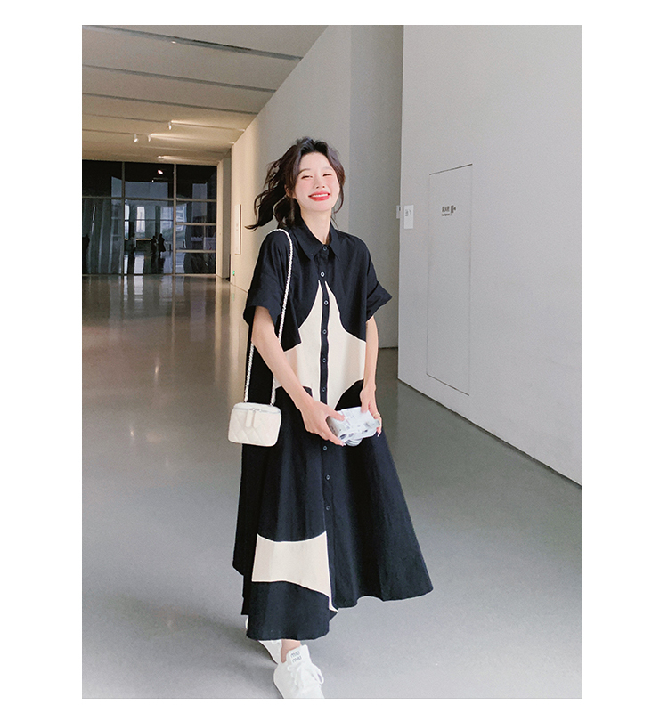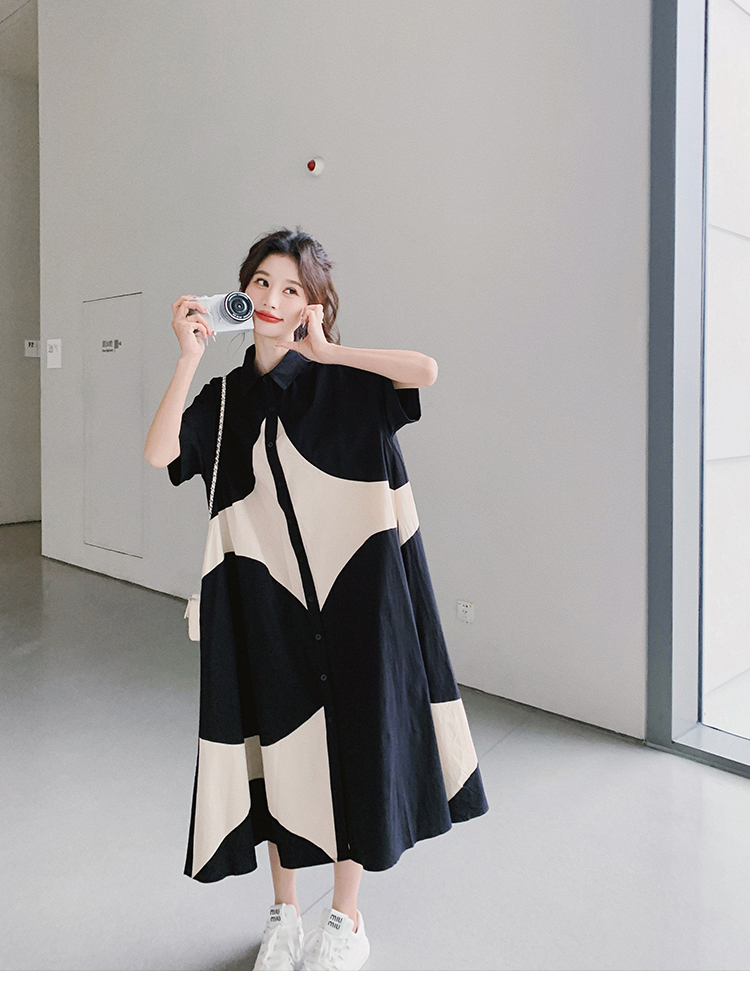 獨家訂製│韓系小清新撞色襯衫式連衣裙(04A1159)