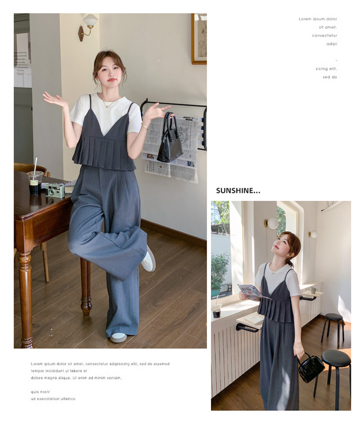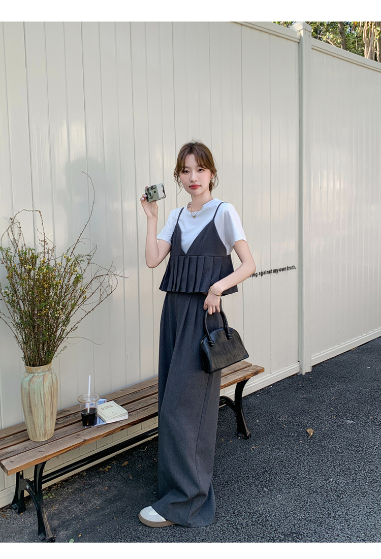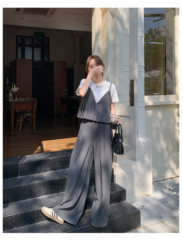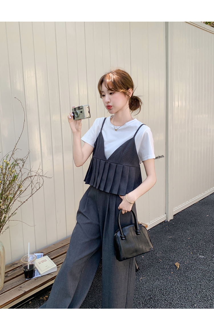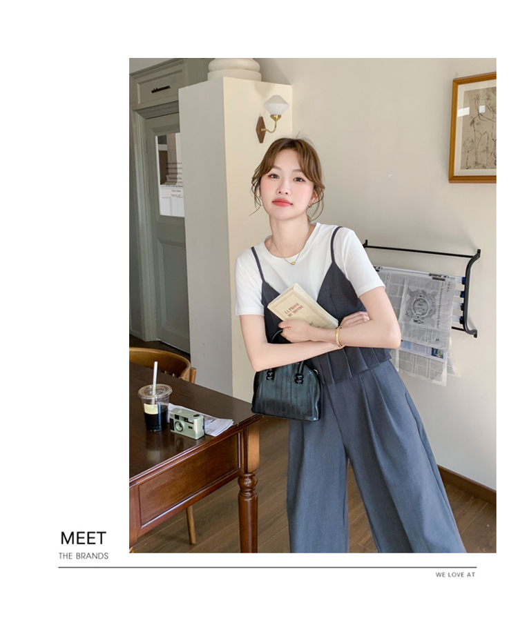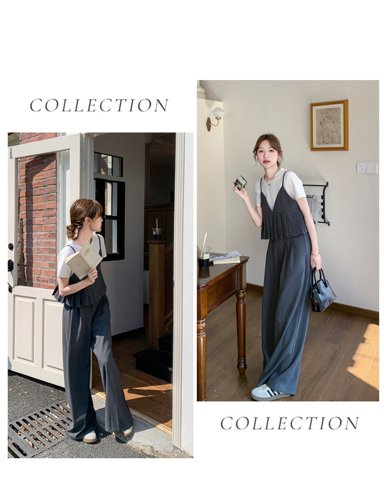 獨家訂製│3件式 韓系休閒感上衣+百褶吊帶+闊腿褲(04A1180)