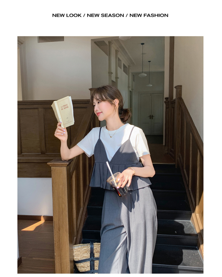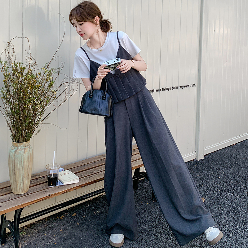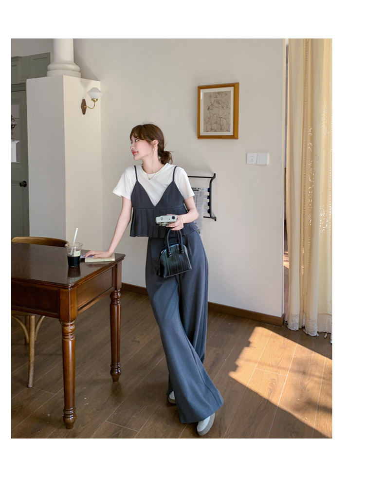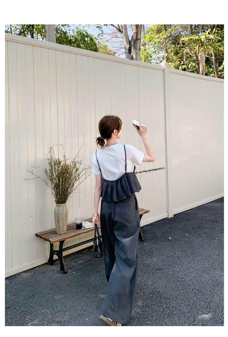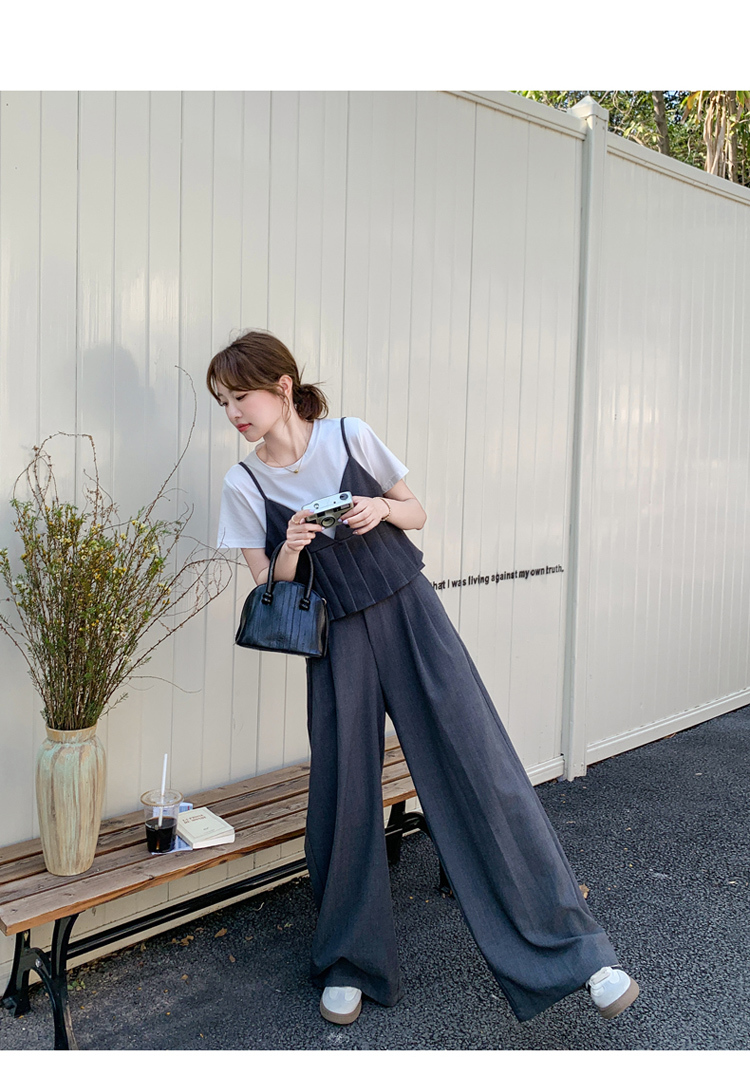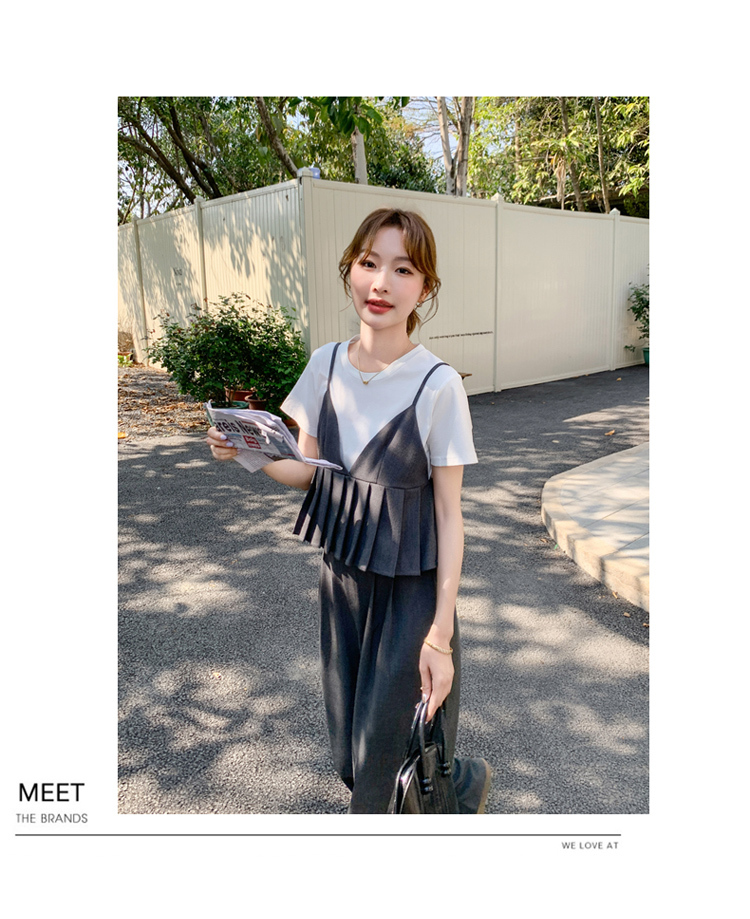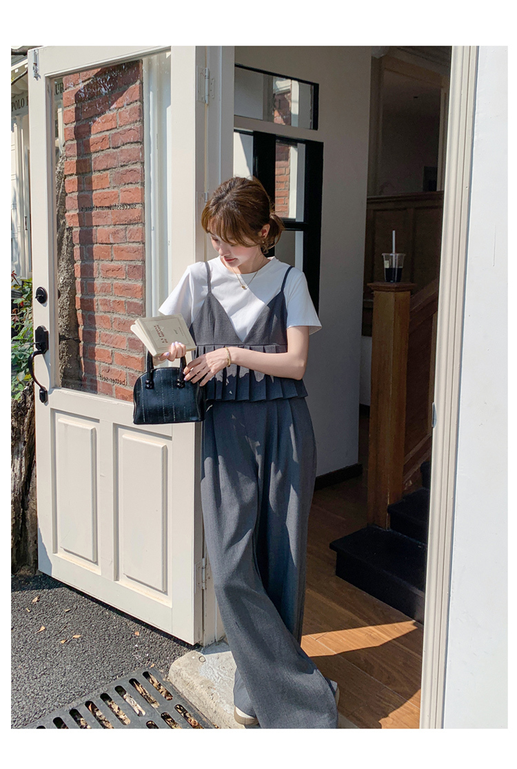 獨家訂製│3件式 韓系休閒感上衣+百褶吊帶+闊腿褲(04A1180)