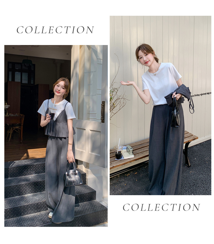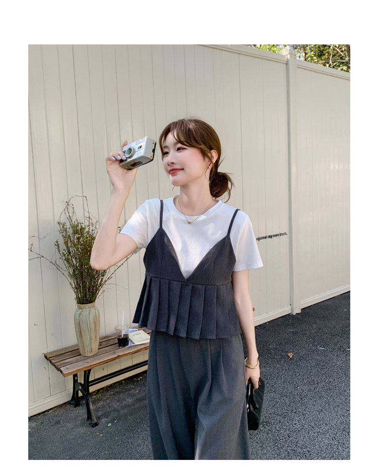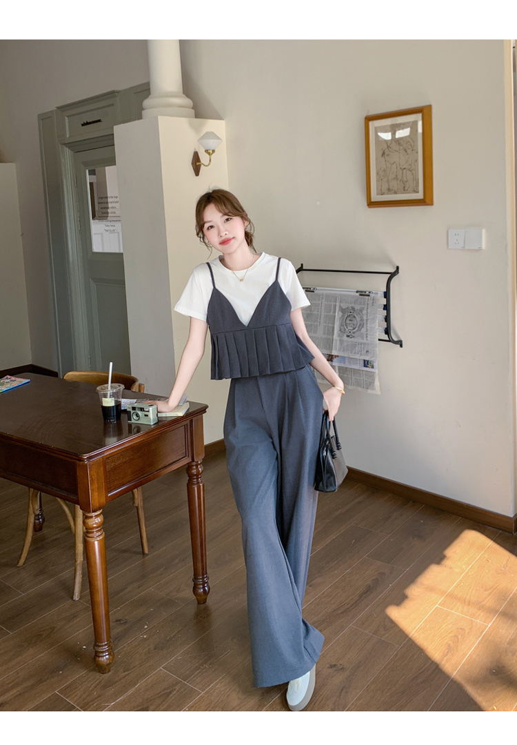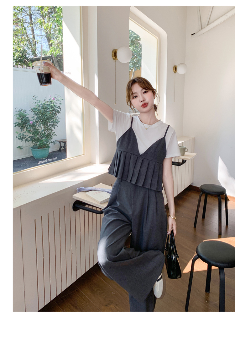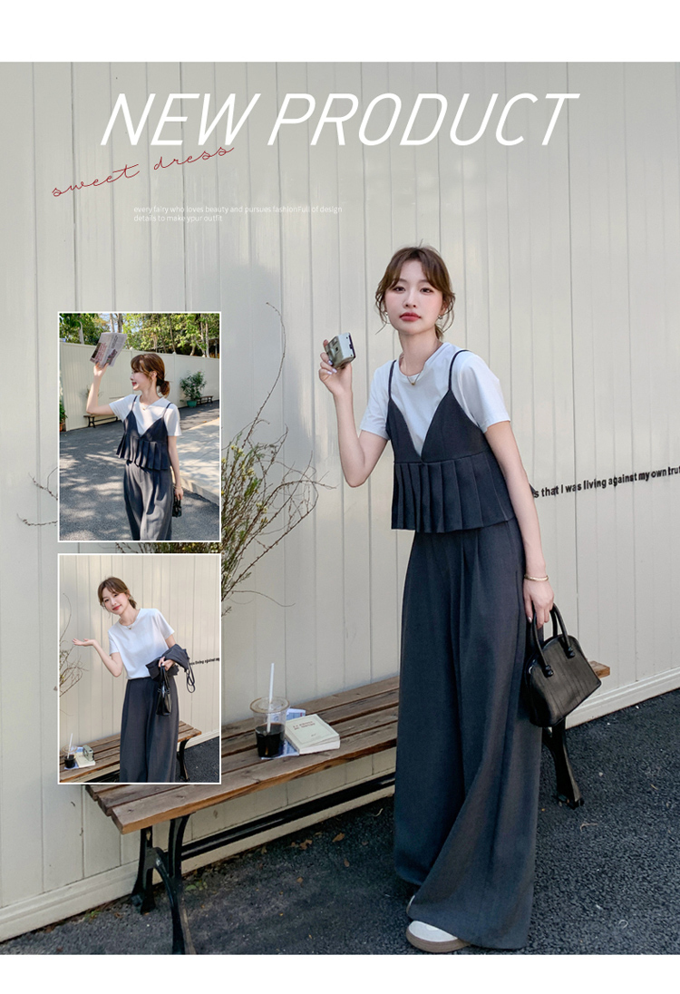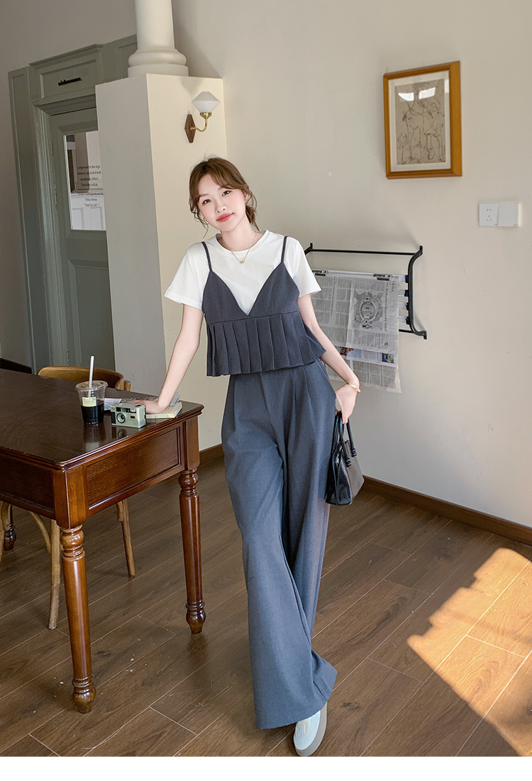 獨家訂製│3件式 韓系休閒感上衣+百褶吊帶+闊腿褲(04A1180)