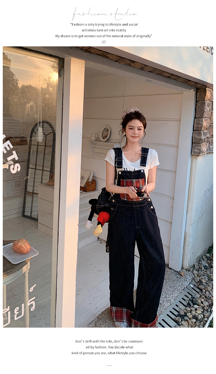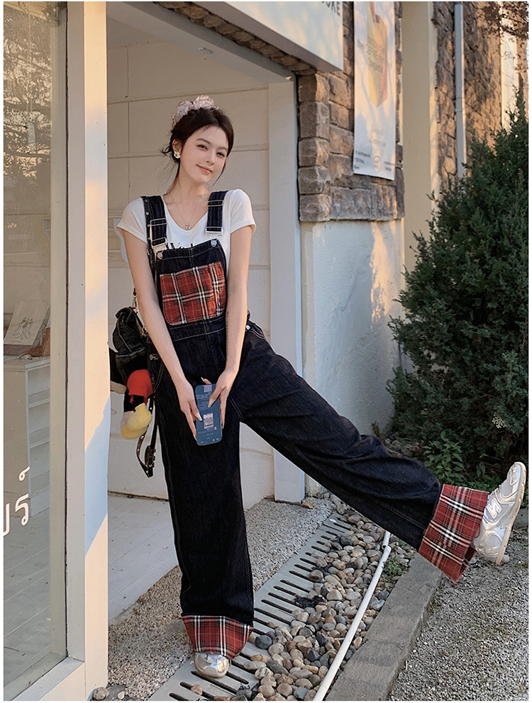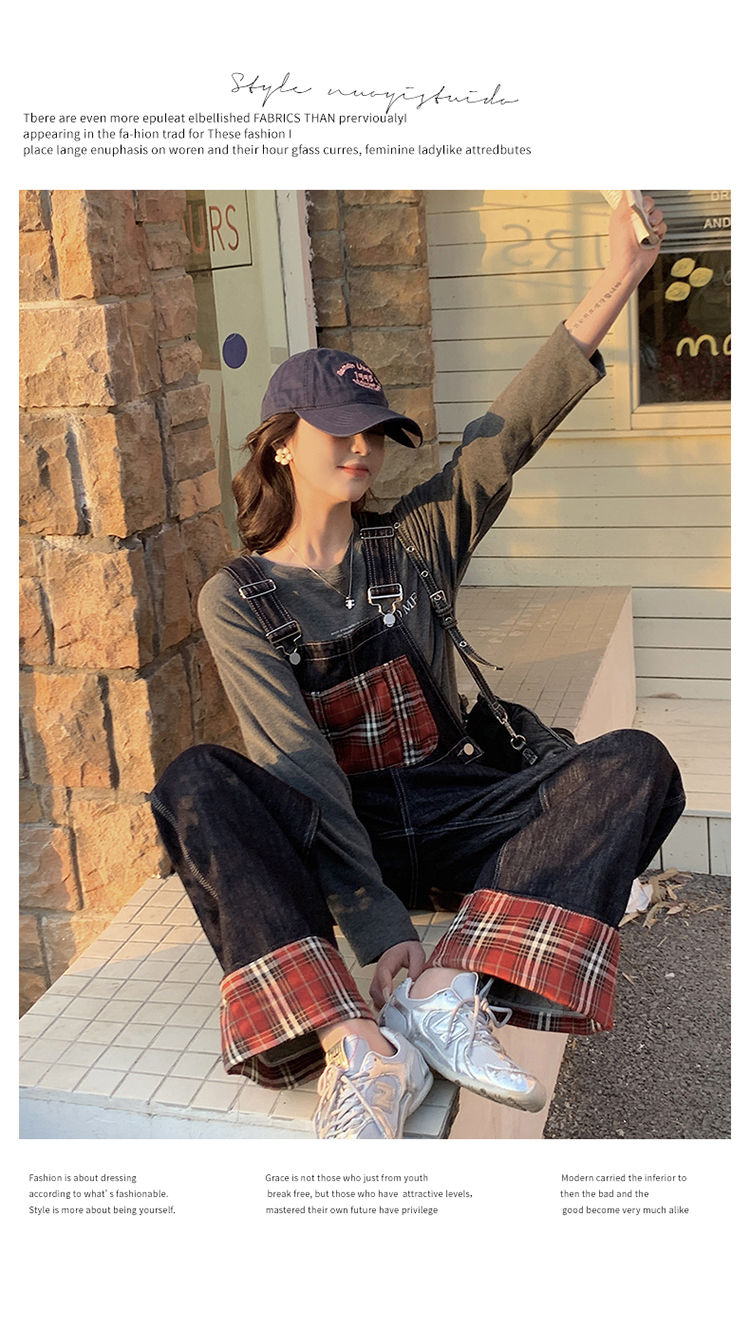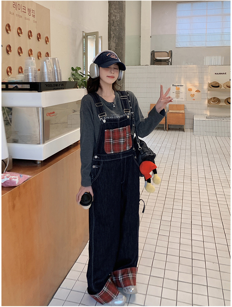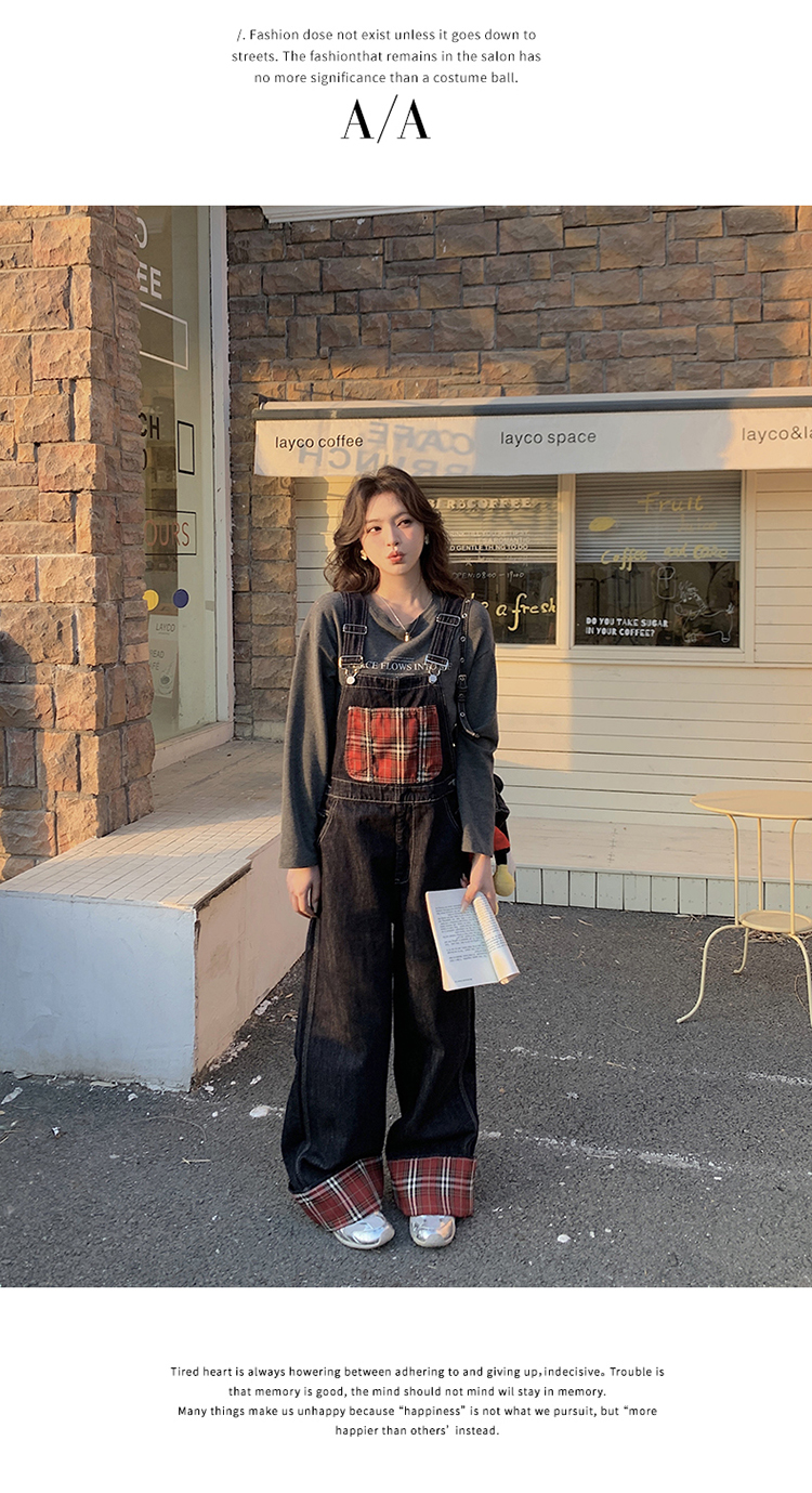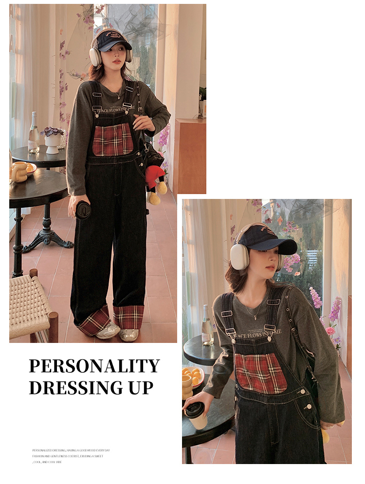 獨家訂製│韓系甜酷風格紋造型闊腿吊帶褲(04A1182)