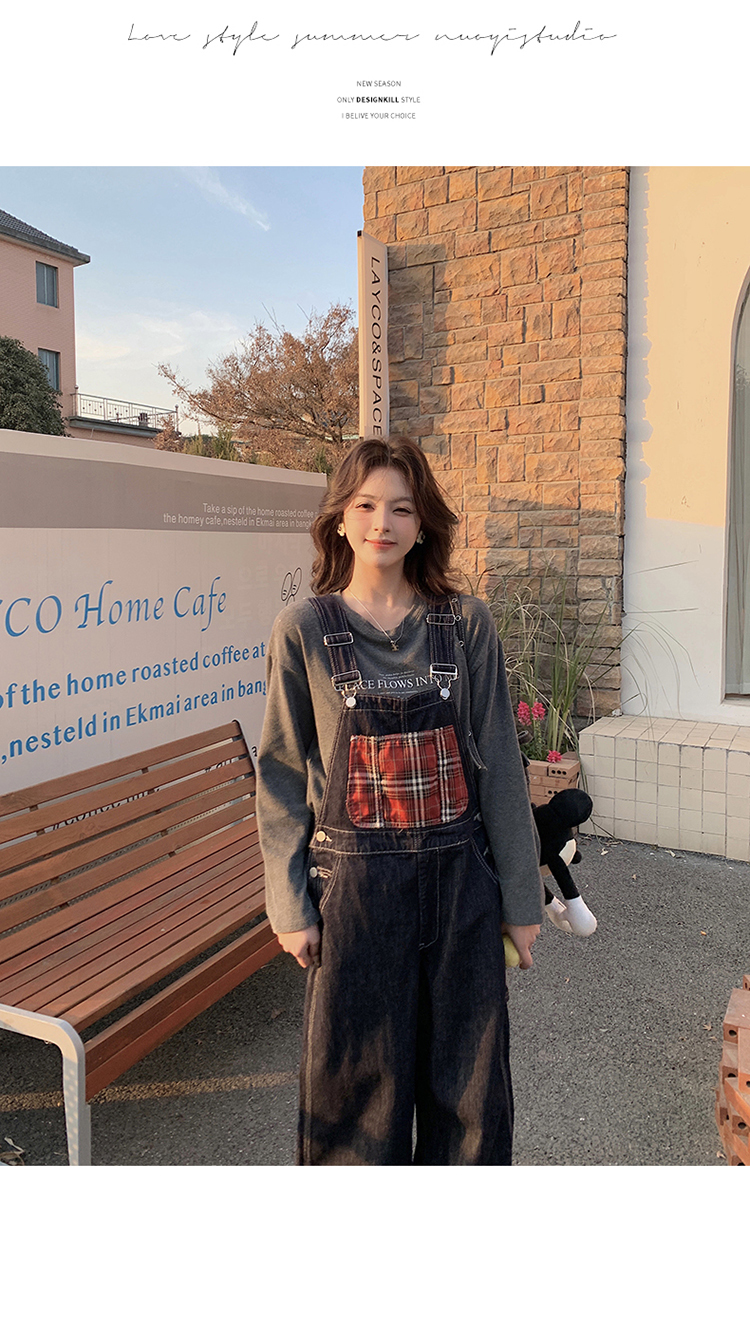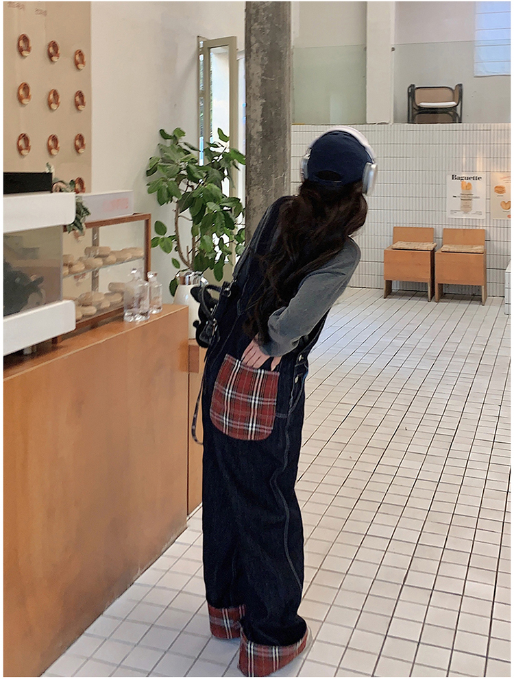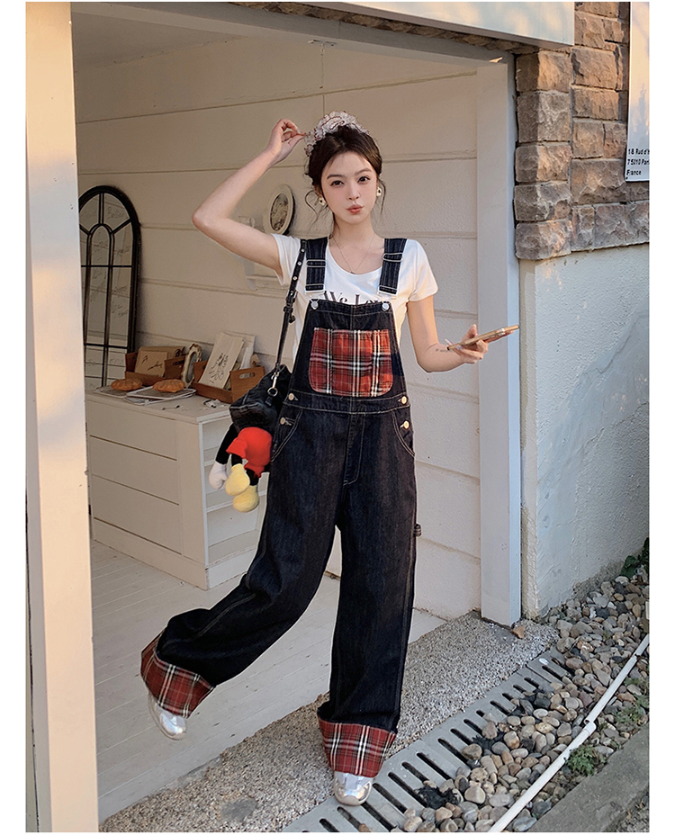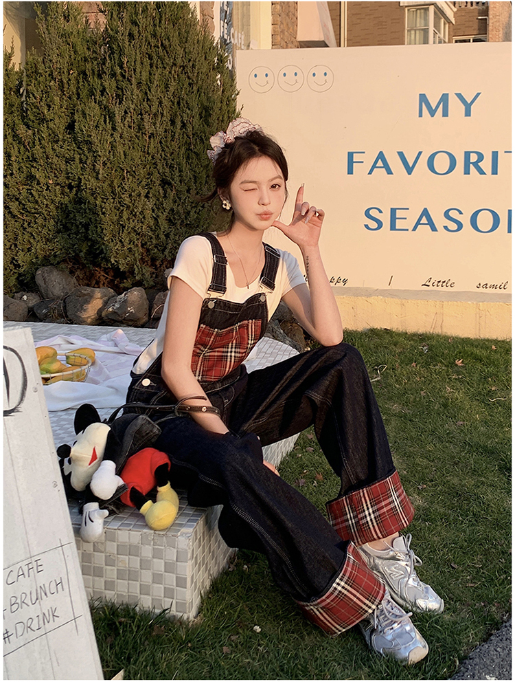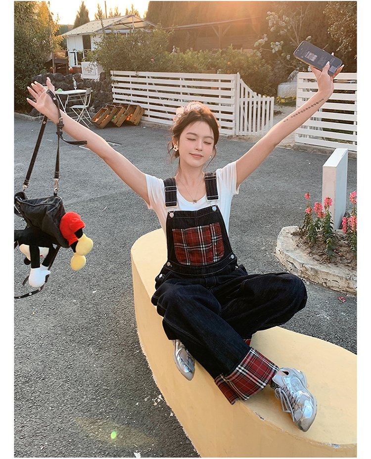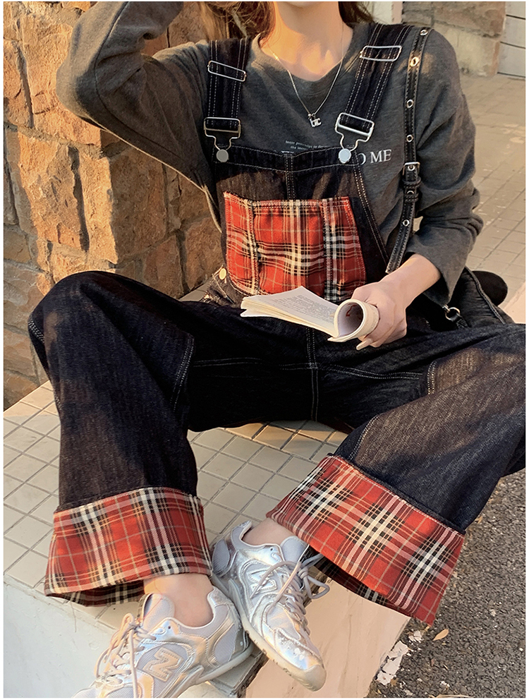 獨家訂製│韓系甜酷風格紋造型闊腿吊帶褲(04A1182)