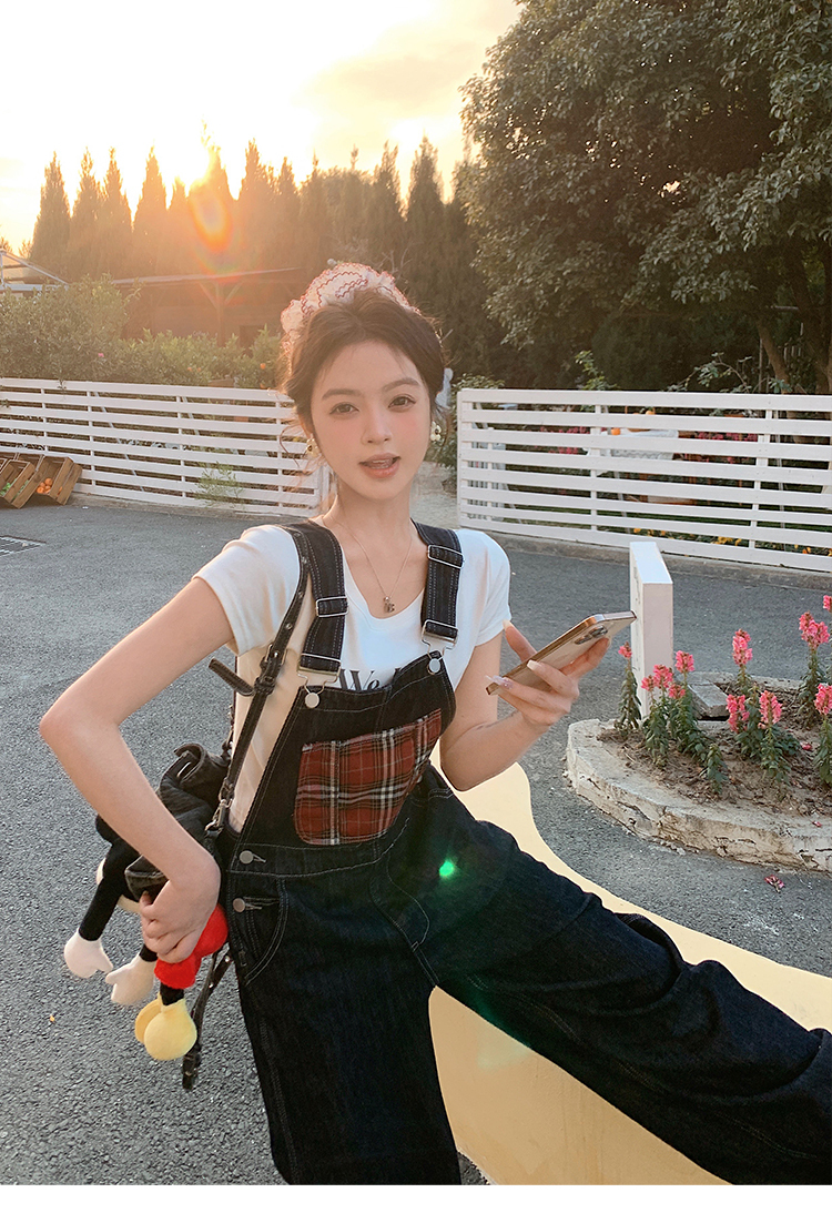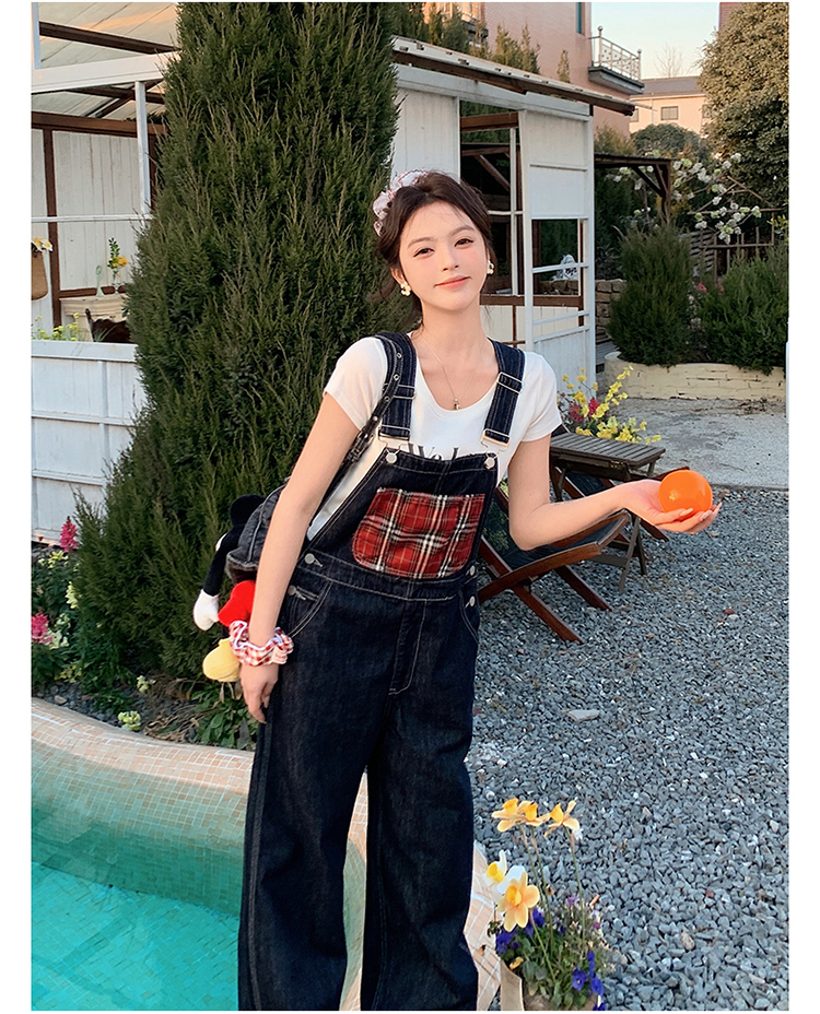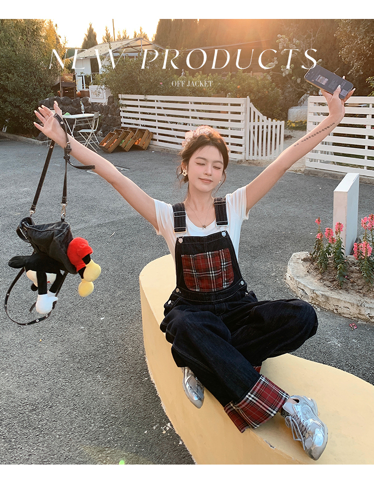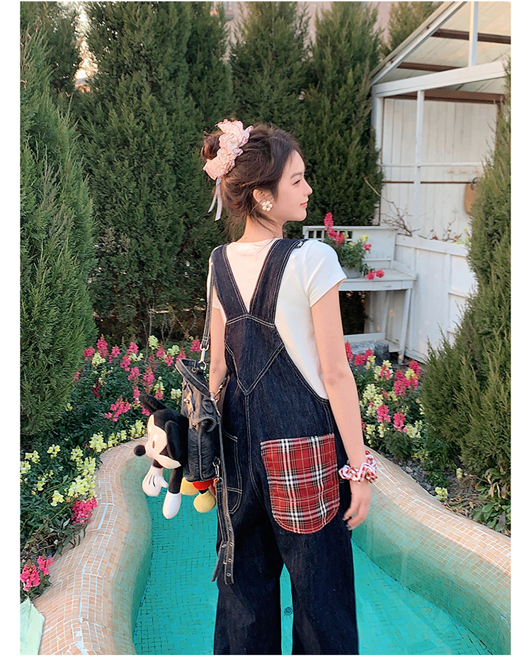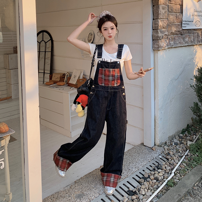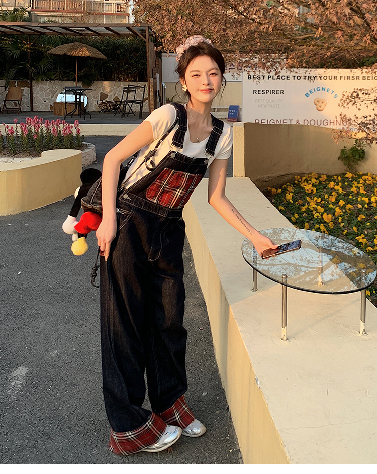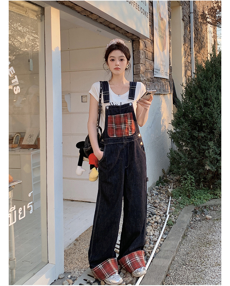 獨家訂製│韓系甜酷風格紋造型闊腿吊帶褲(04A1182)